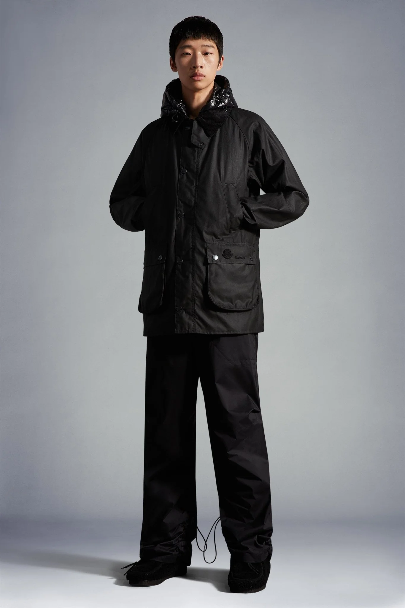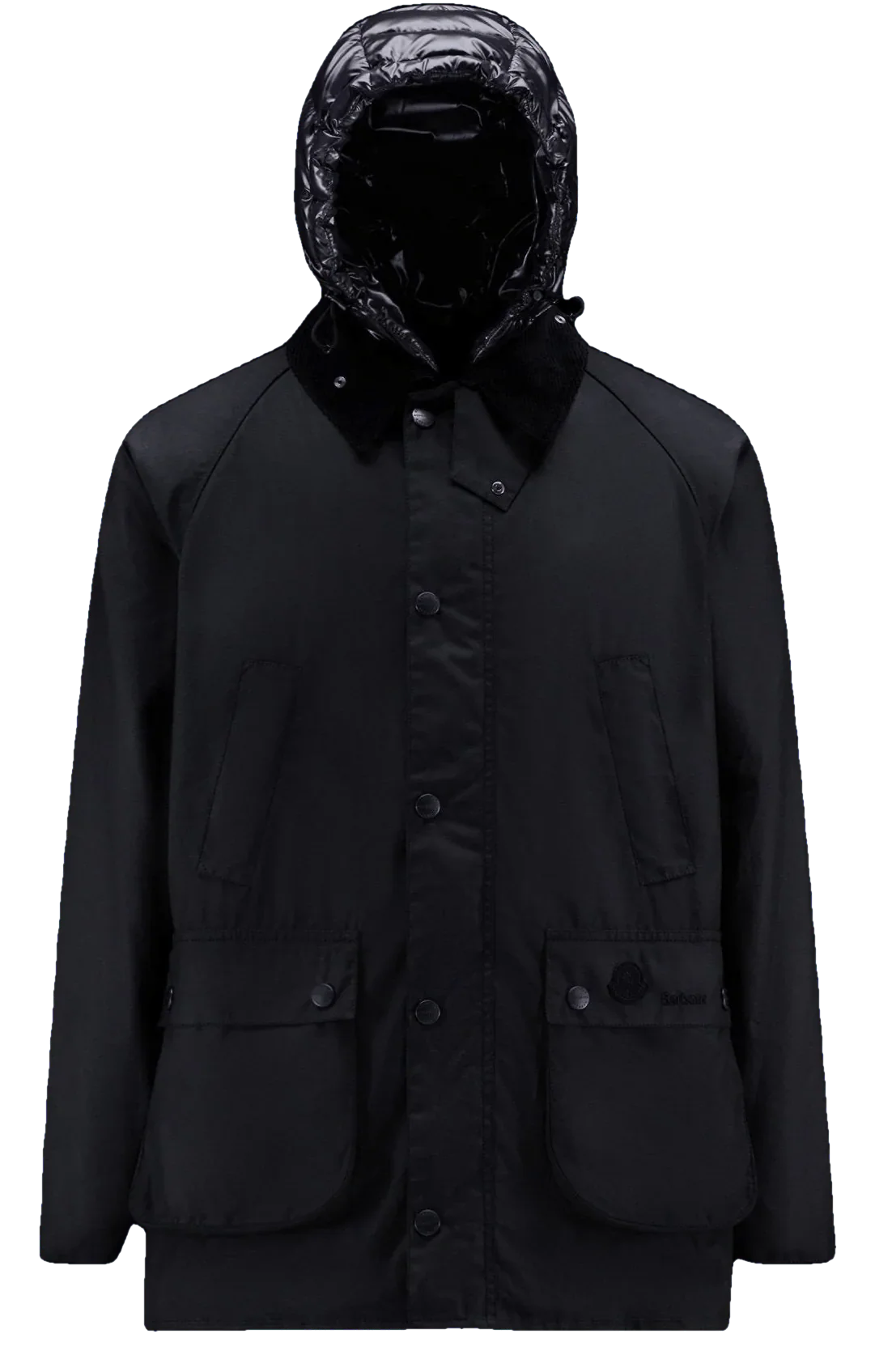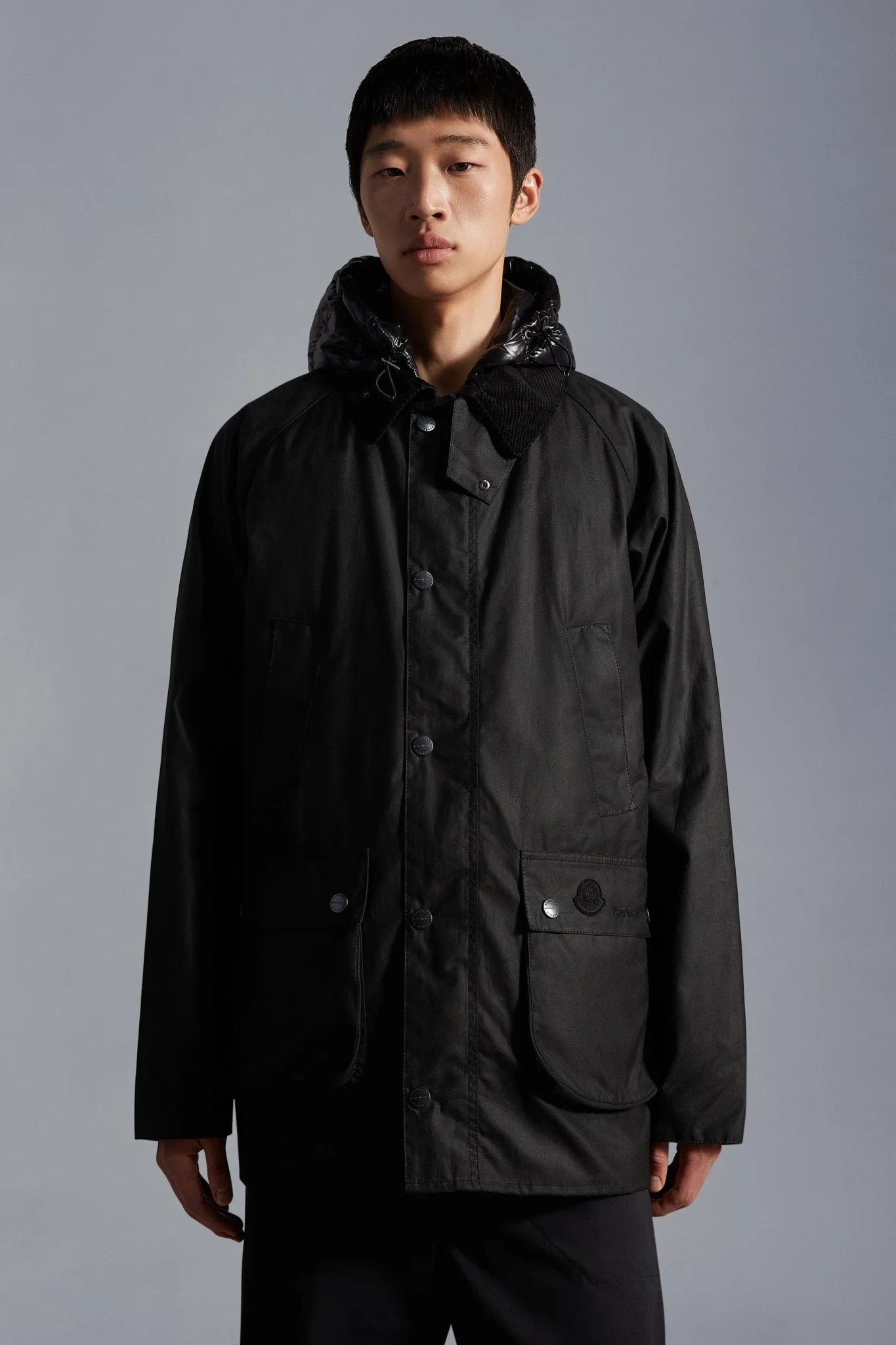 - Poches à rabat, fermeture par bouton-pression et lettrage ‘Barbour-Moncler 1952’
