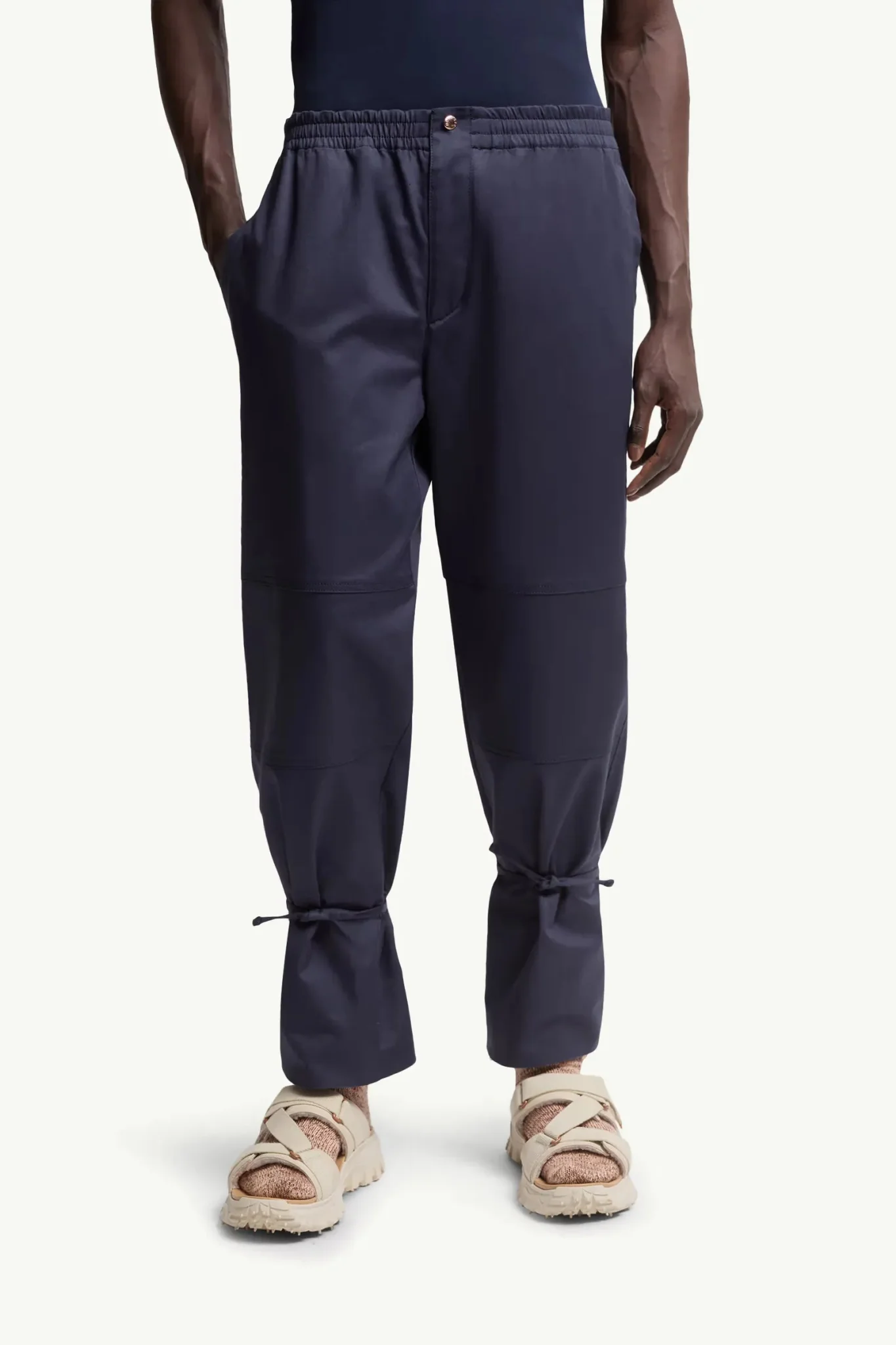 Indispensable du vestiaire masculin, ce pantalon de la collection Moncler x Gilga Farm by Donald Glover est confectionné en gabardine de coton stretch pour un confort optimal. Évoquant les matériaux employés dans les vêtements de travail, ce modèle associe robustesse et élégance. Il dispose d’un cordon ajustable aux chevilles, offrant la possibilité de porter une coupe droite ou resserrée selon les préférences.