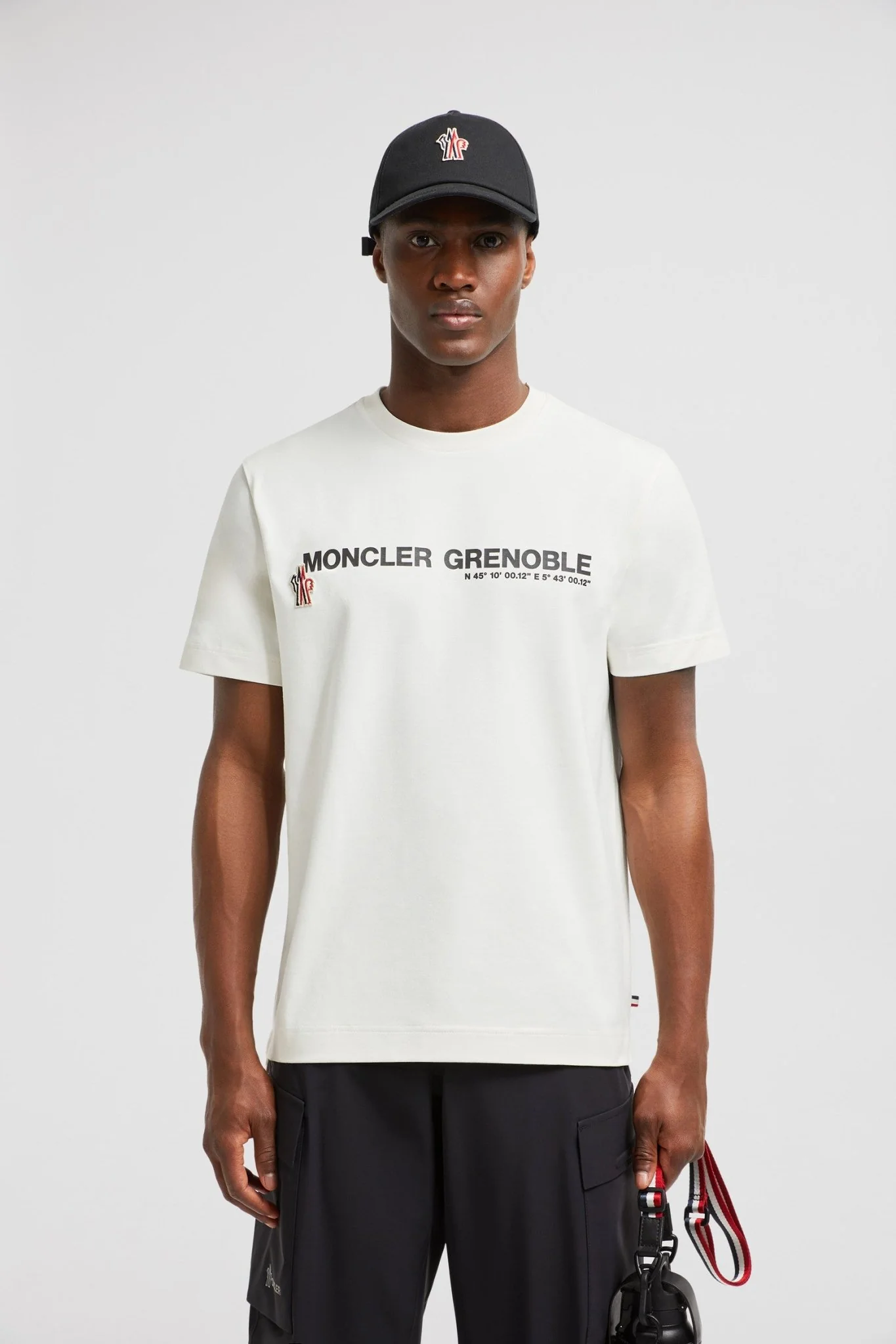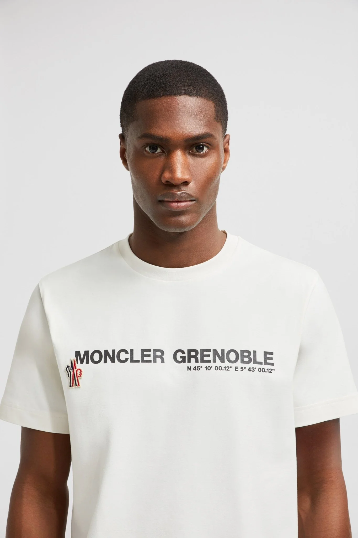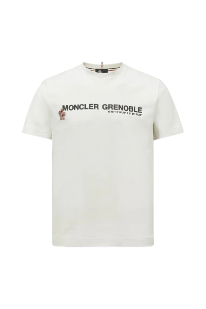 MONCLER GRENOBLE – T-shirt en coton à logo blanc creme