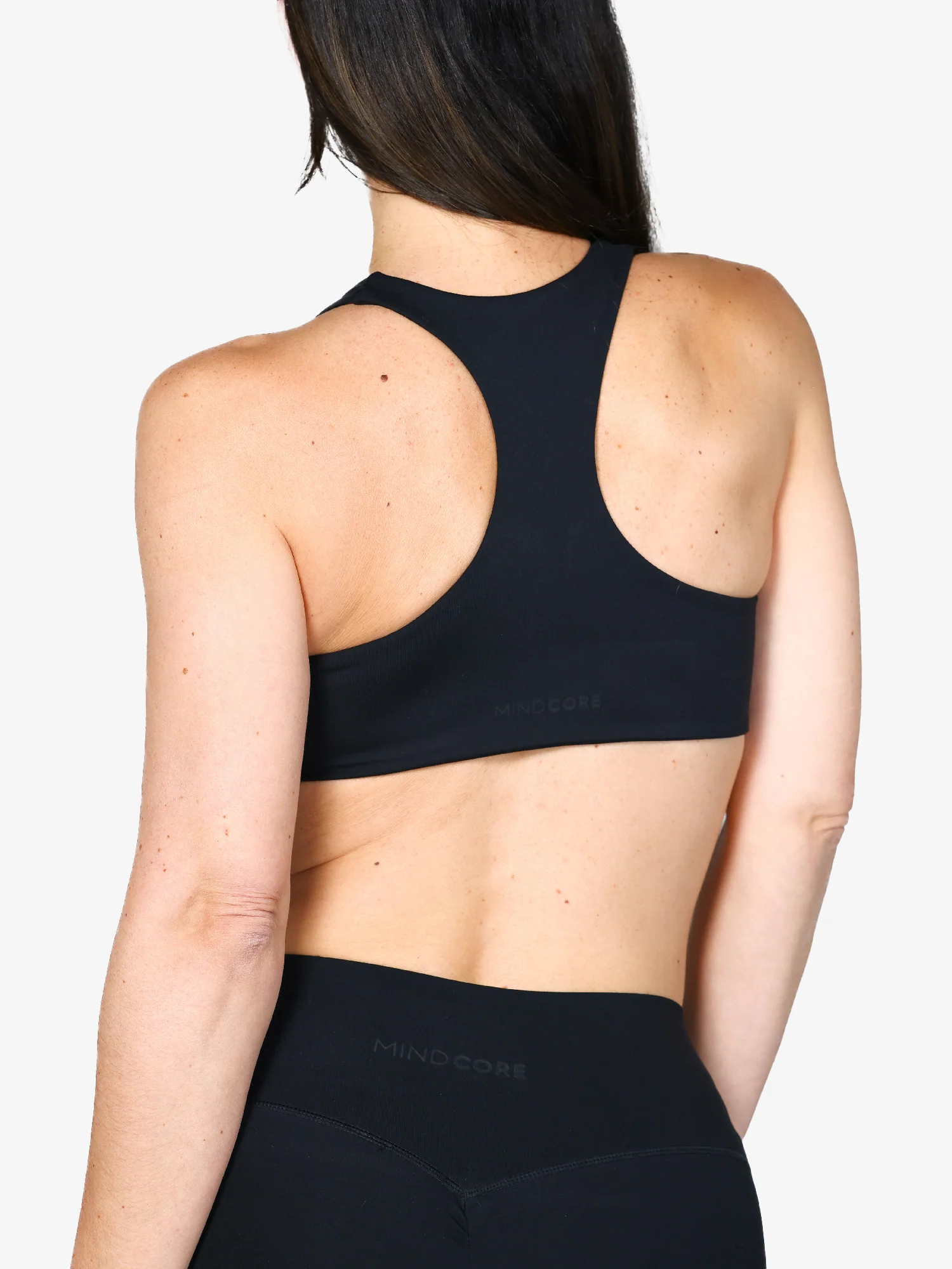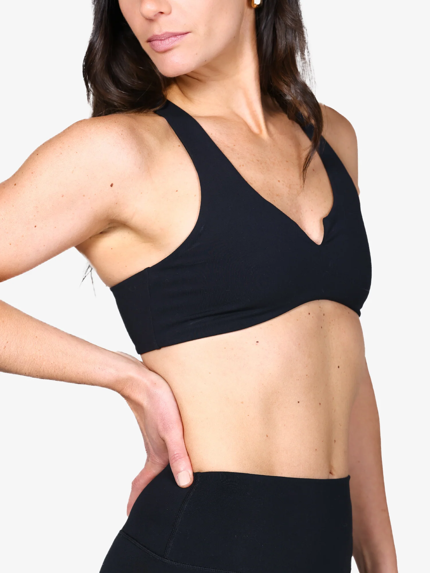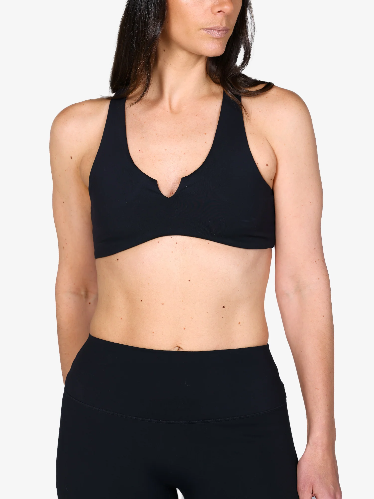 Décolleté subtil en forme de « V », créant une allure raffinée et féminine. Ses bretelles larges et la découpe arrière en « T inversé » assurent un maintien parfait tout en sublimant la silhouette.