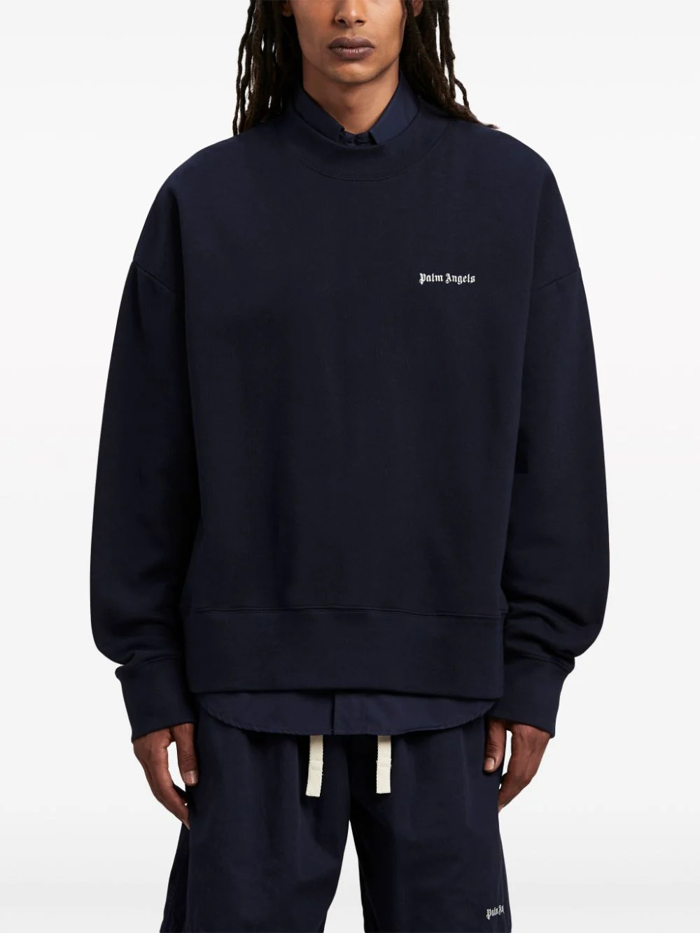 Sweat en coton à logo imprimé Fabrication : Italie bleu marine/blanc cassé coton logo imprimé sur la poitrine col rond épaules tombantes manches longues coton 100%, polyester 100% ID de la marque : pmba080s24fle004 4603 navy blue off white