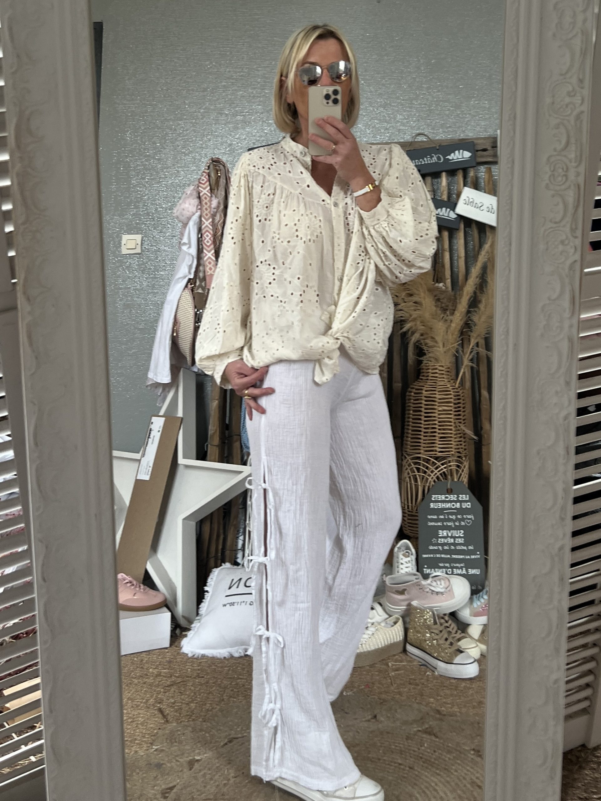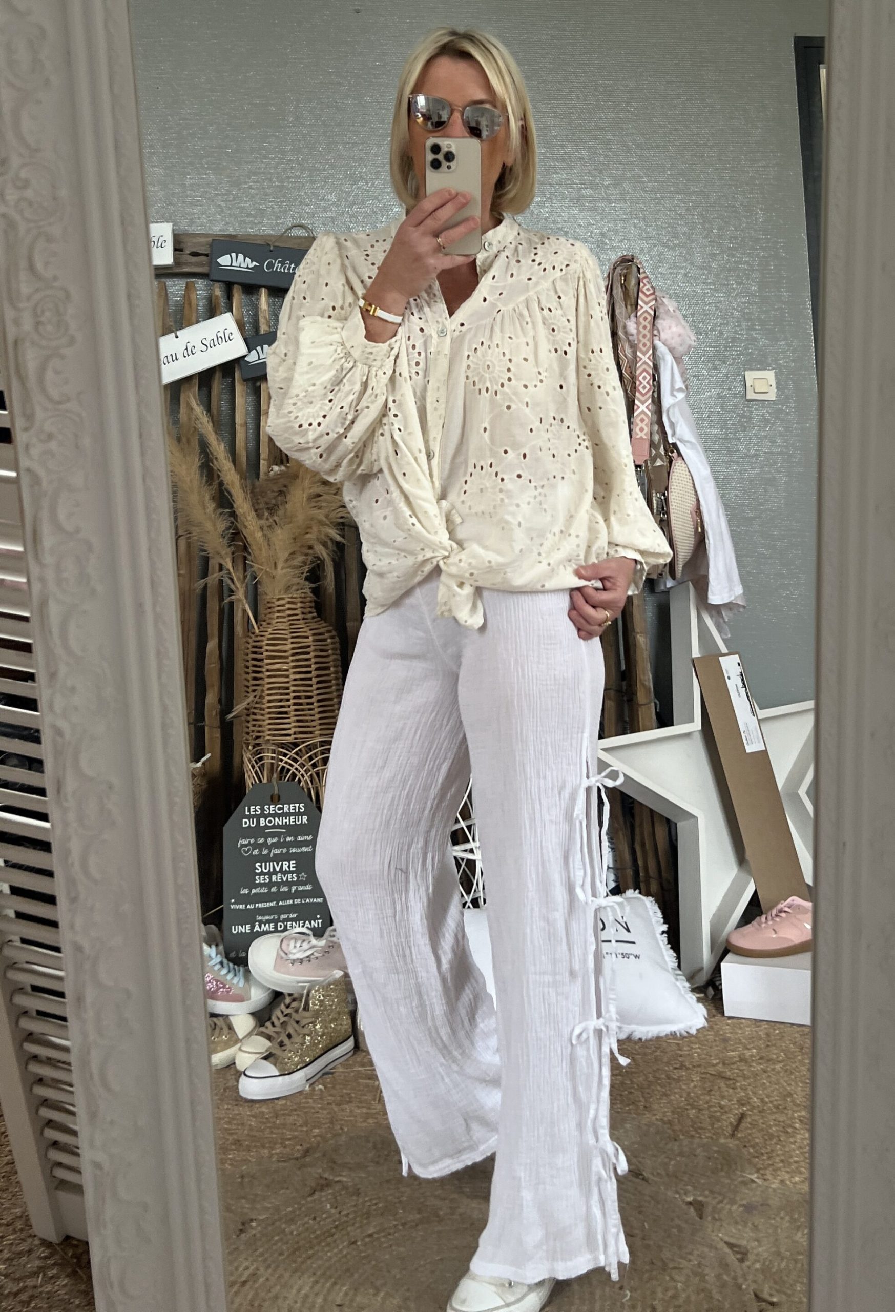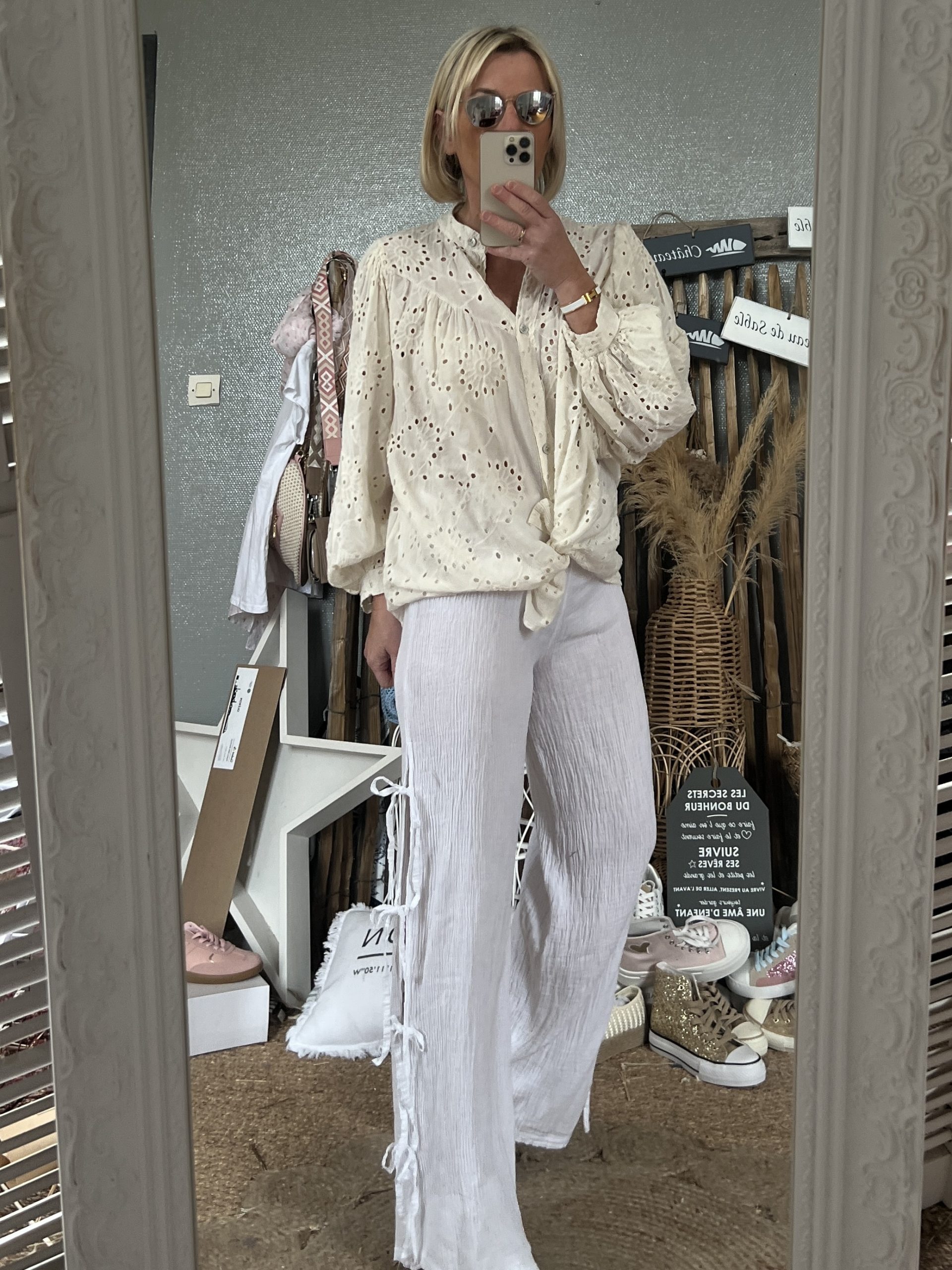 Pantalon noeuds gaze blanc