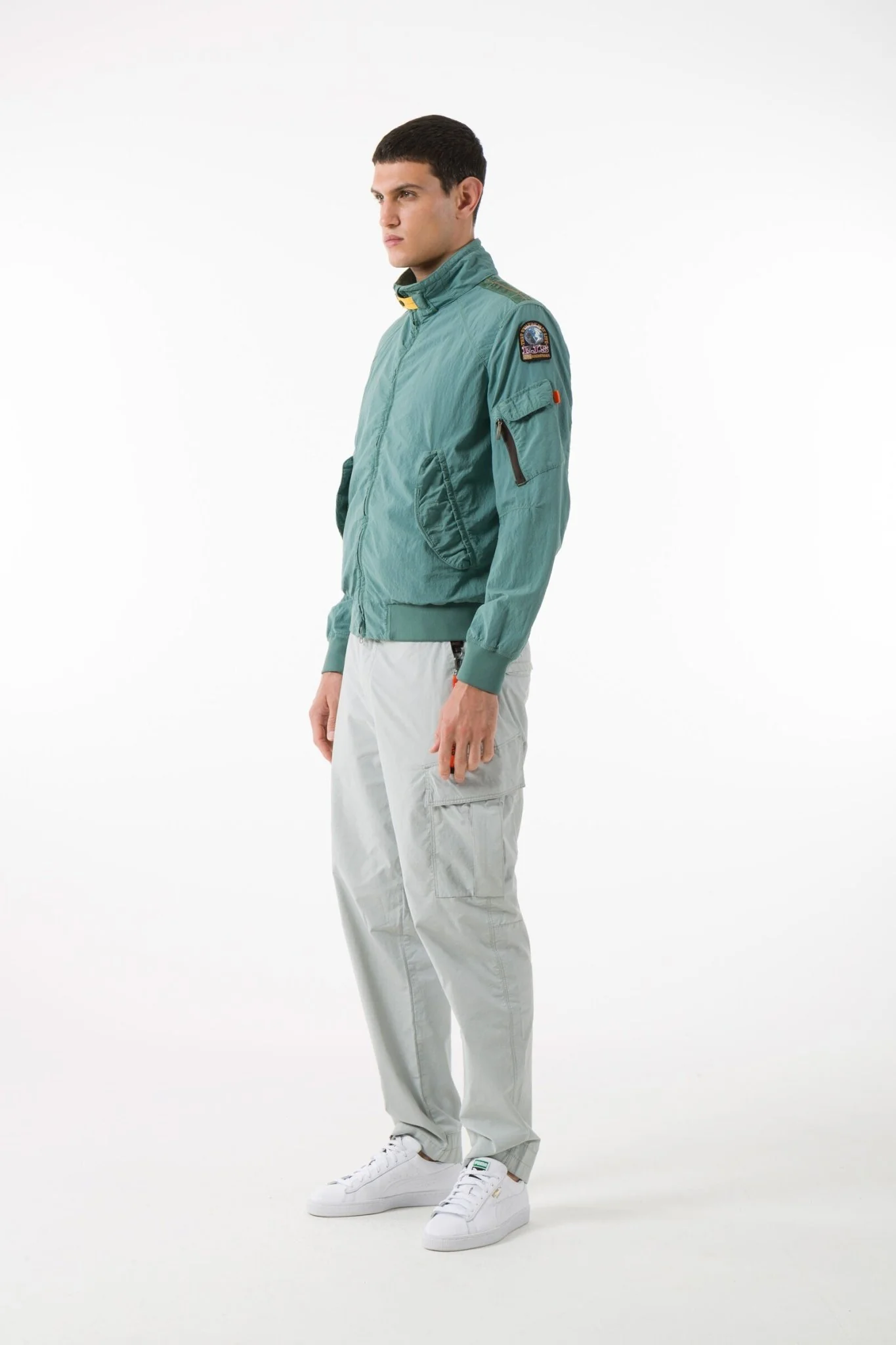 Veste légère en popeline de taslan, 100 % nylon. La veste ensuite teinte en pièce, a été soumise à un traitement déperlant. Fermeture à glissière bidirectionnelle, deux poches à glissière, une poche à rabat pressionné avec glissière, une poche intérieure en mesh et une poche cargo spacieuse contenant une poche en mesh. Bord-côte sur les poignets, l’ourlet inférieur et le col intérieur. Ventilation sous les bras et détails emblématiques PJS tels que la bande élastique jaune et l’écusson sur la manche gauche.