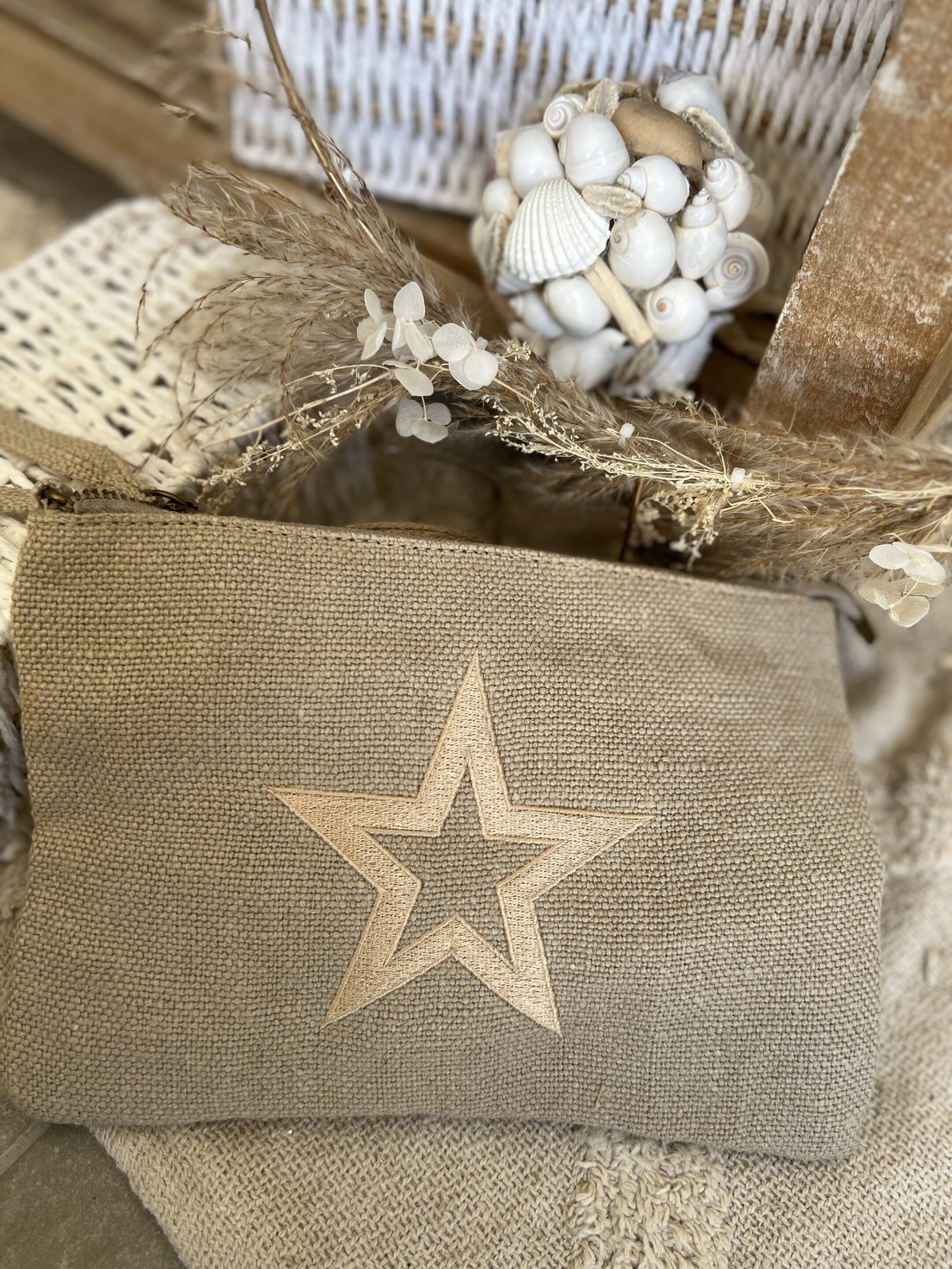 Pochette coton dragonne sans bandoulière mais vous pouvez en mettre une 19x14cms