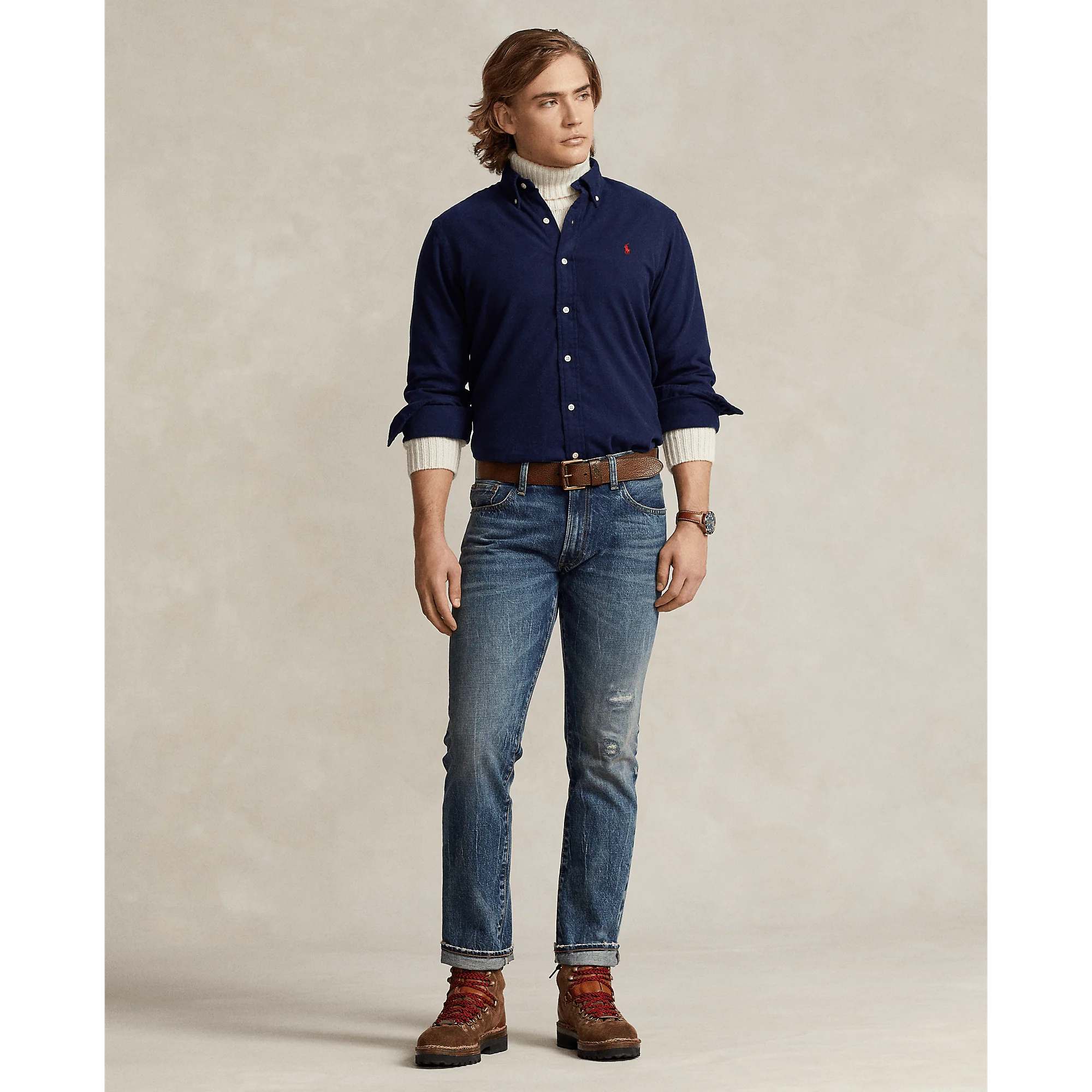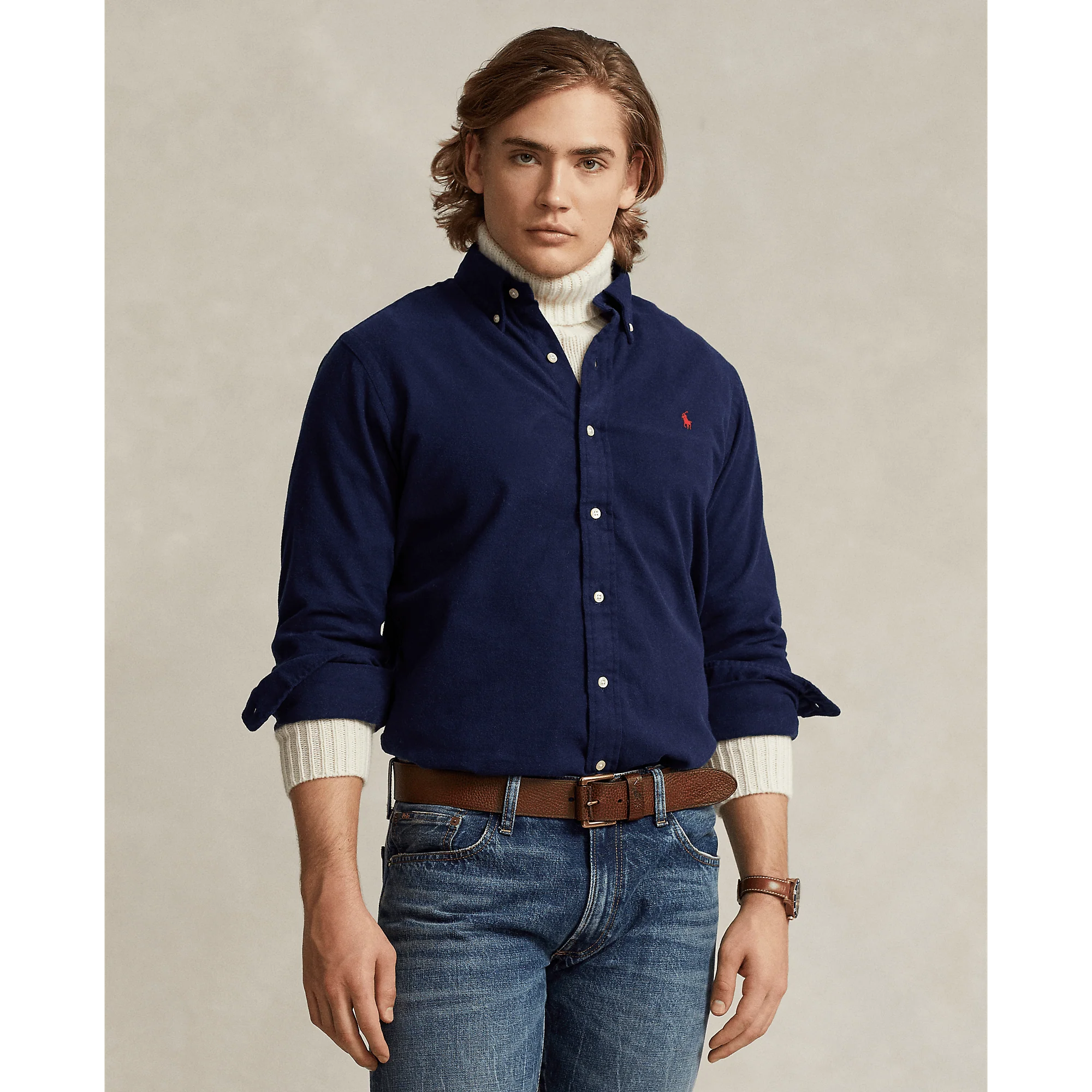 POLO RALPH LAUREN – Chemise en flanelle brossée ajustée Newport navy