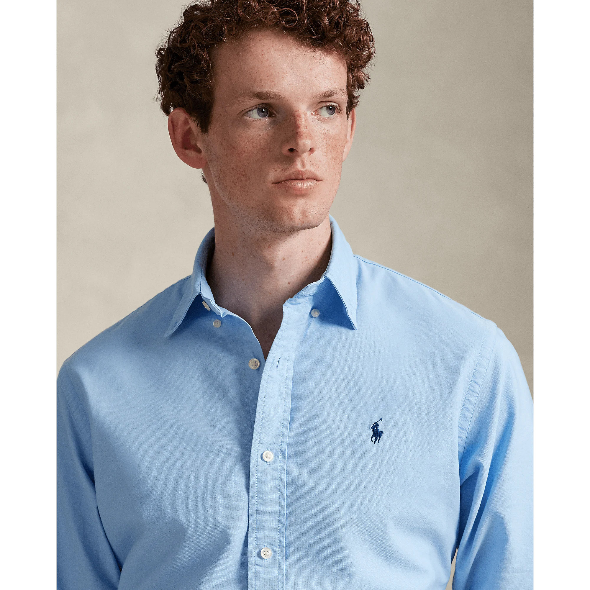 Cette chemise Oxford, à l’origine de la marque Ralph Lauren, est aujourd’hui devenue un modèle incontournable du look Polo. Aujourd’hui, M. Lauren continue de créer d’innombrables variantes de sa chemise emblématique, y compris cette version ajustée qui est teinte en pièce pour obtenir un authentique look usé.