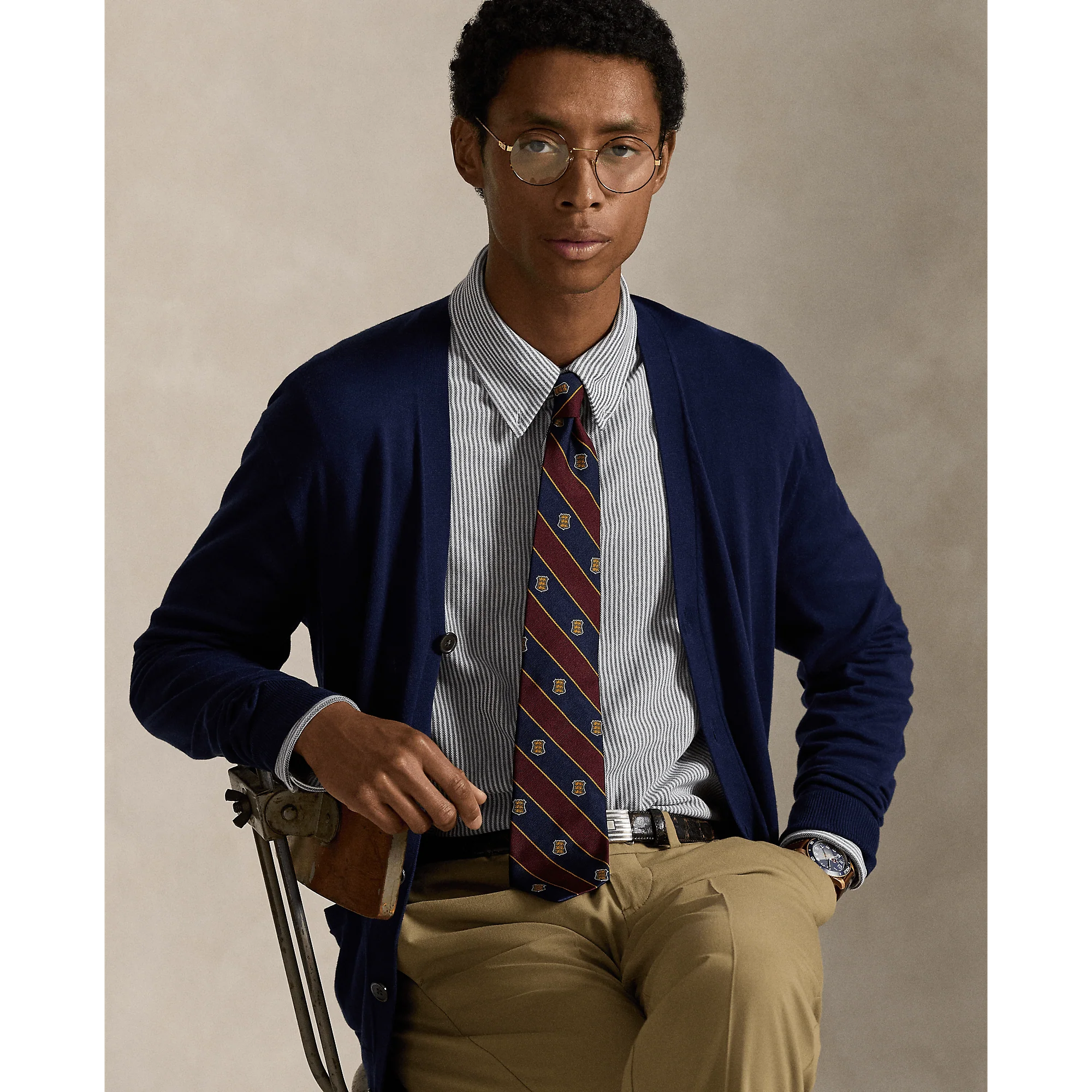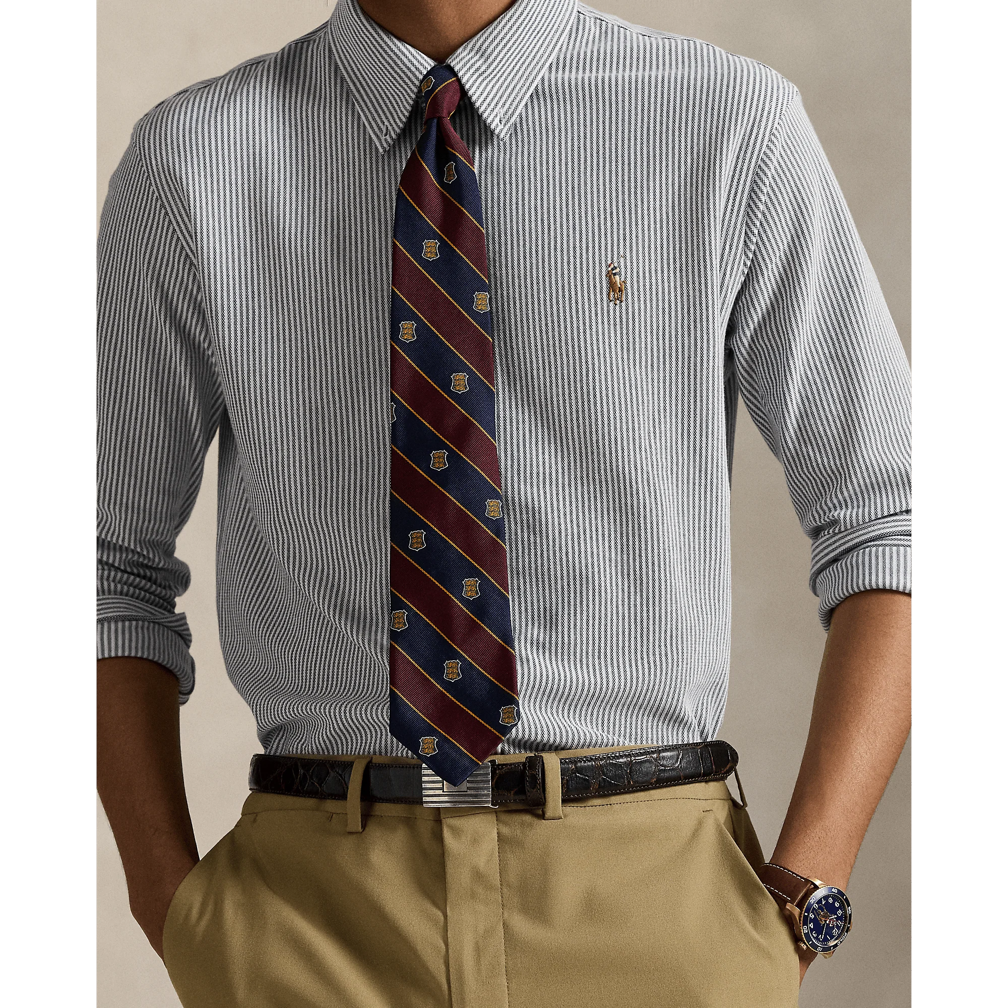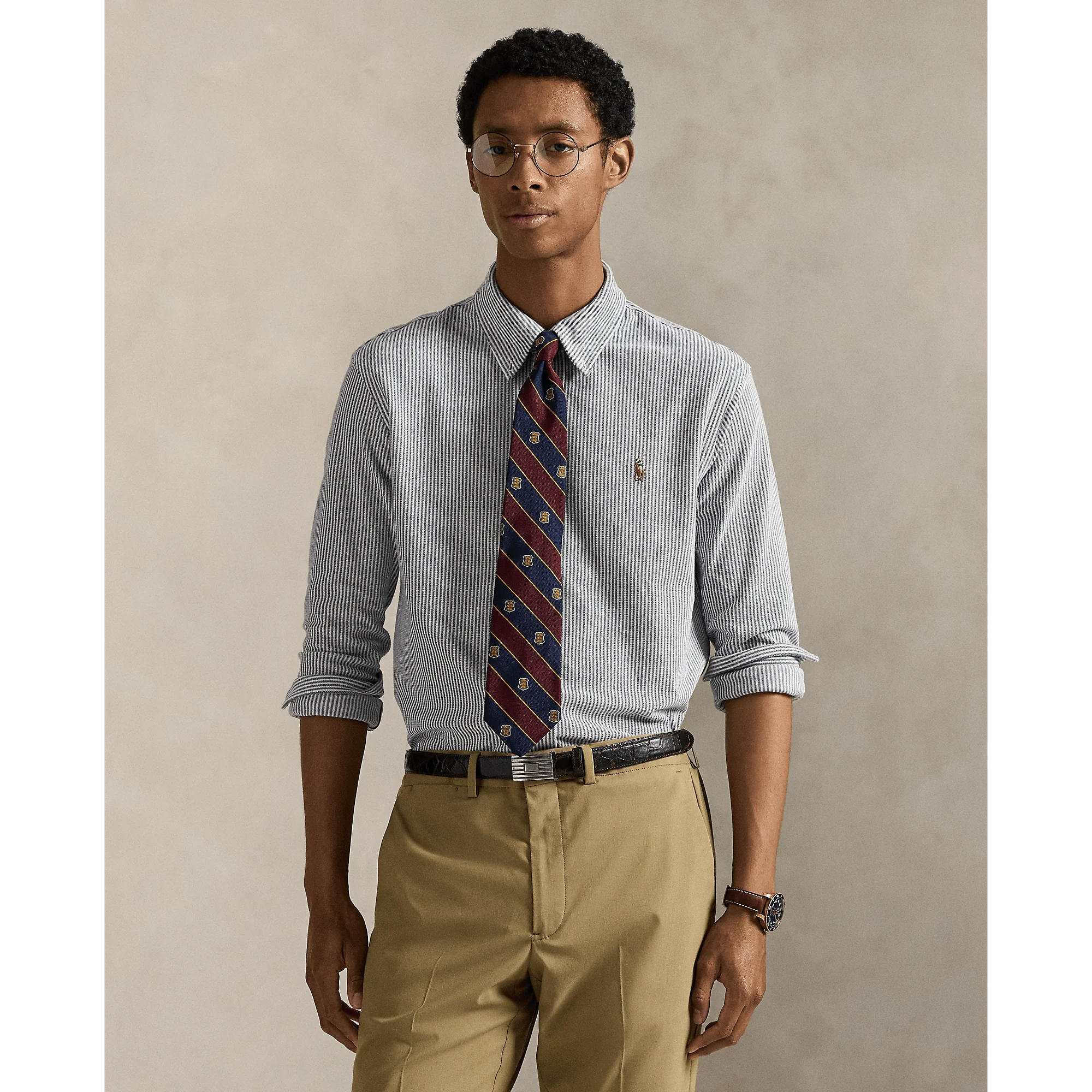 POLO RALPH LAUREN – Chemise Oxford en maille de coton rayé Marine Newport/Blanc