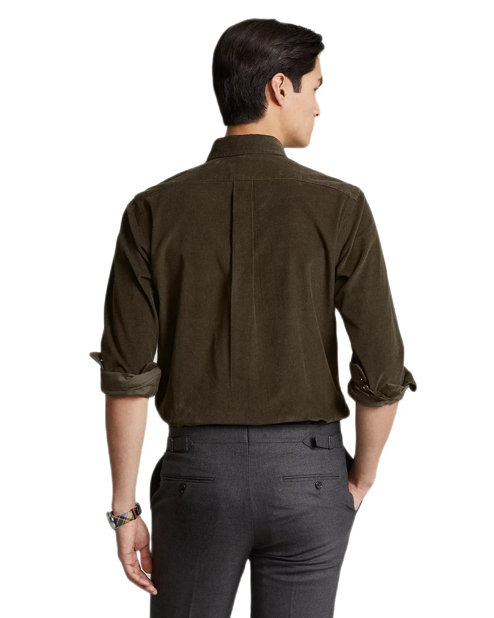 Le velours côtelé milleraie confère un raffinement rustique à notre chemise à col boutonné emblématique.