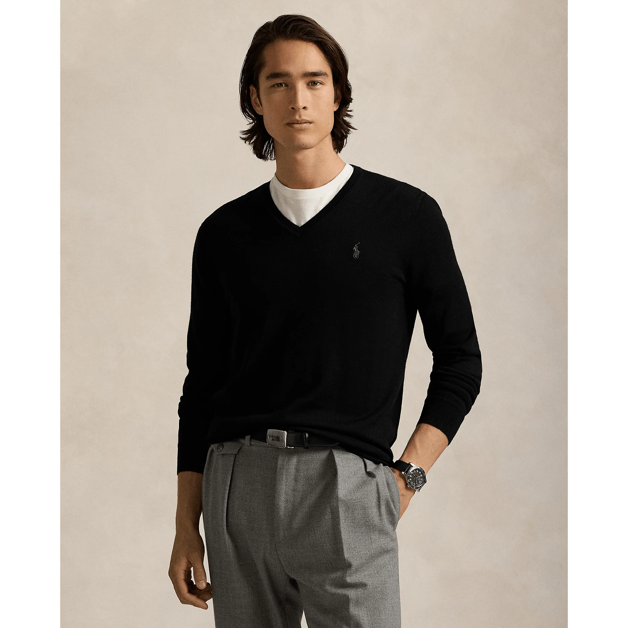 POLO RALPH LAUREN – Pull col en V en laine lavable Slim Fit polo black