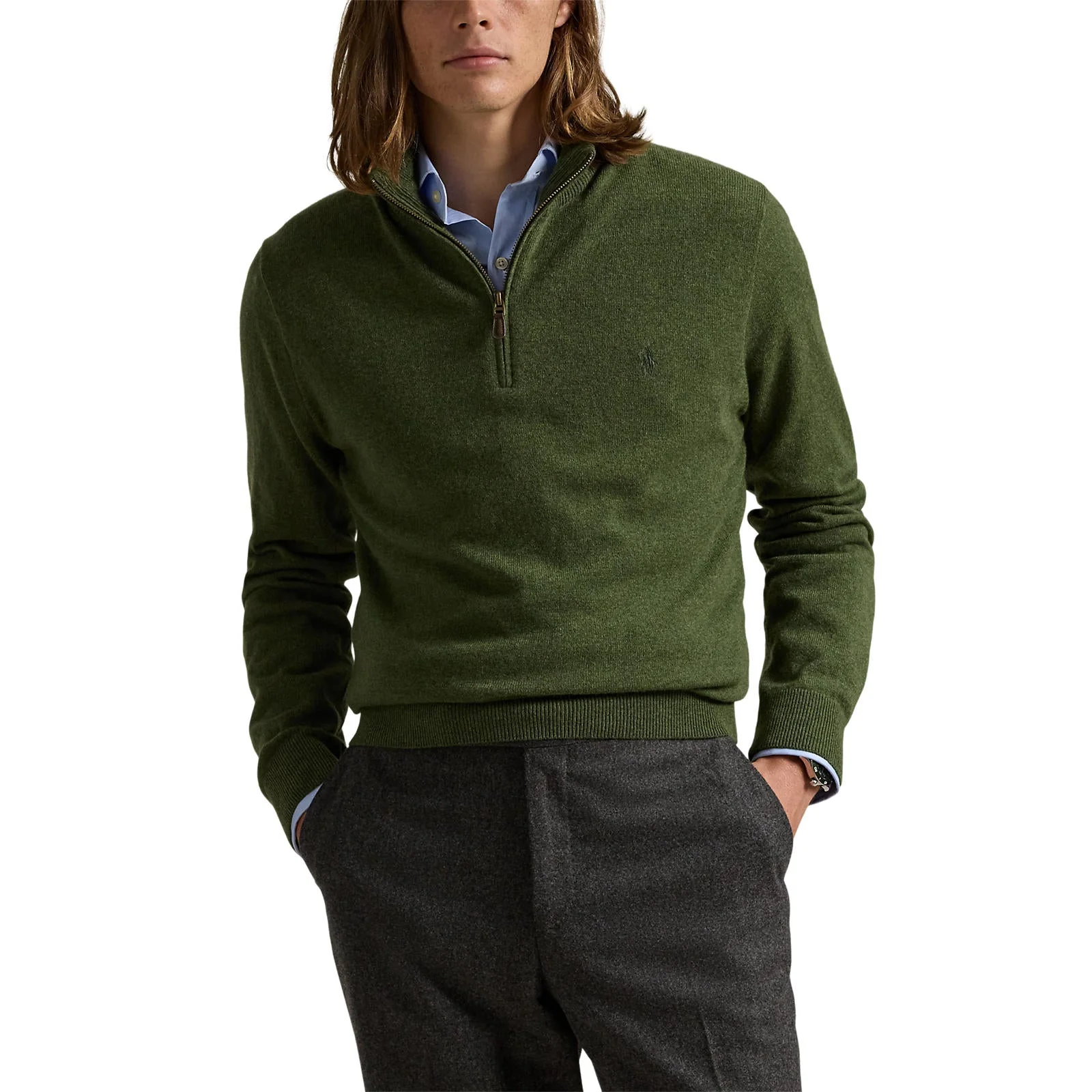 Polo Ralph Lauren – Pull demi-zippé laine Vert olive