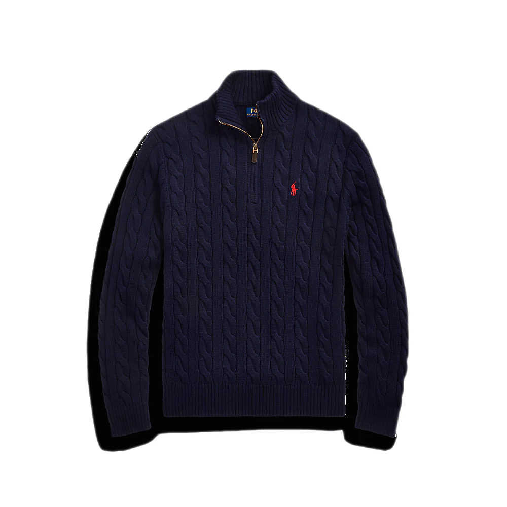 Polo Ralph Lauren – Pull demi-zippé torsadé marine