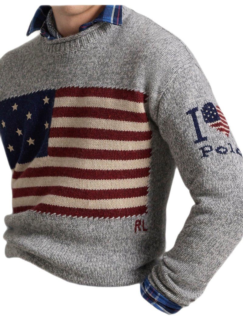 Polo Ralph Lauren – Pull Drapeau en laine gris