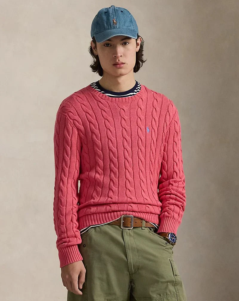 POLO RALPH LAUREN – Pull en coton torsadé Rouge pâle