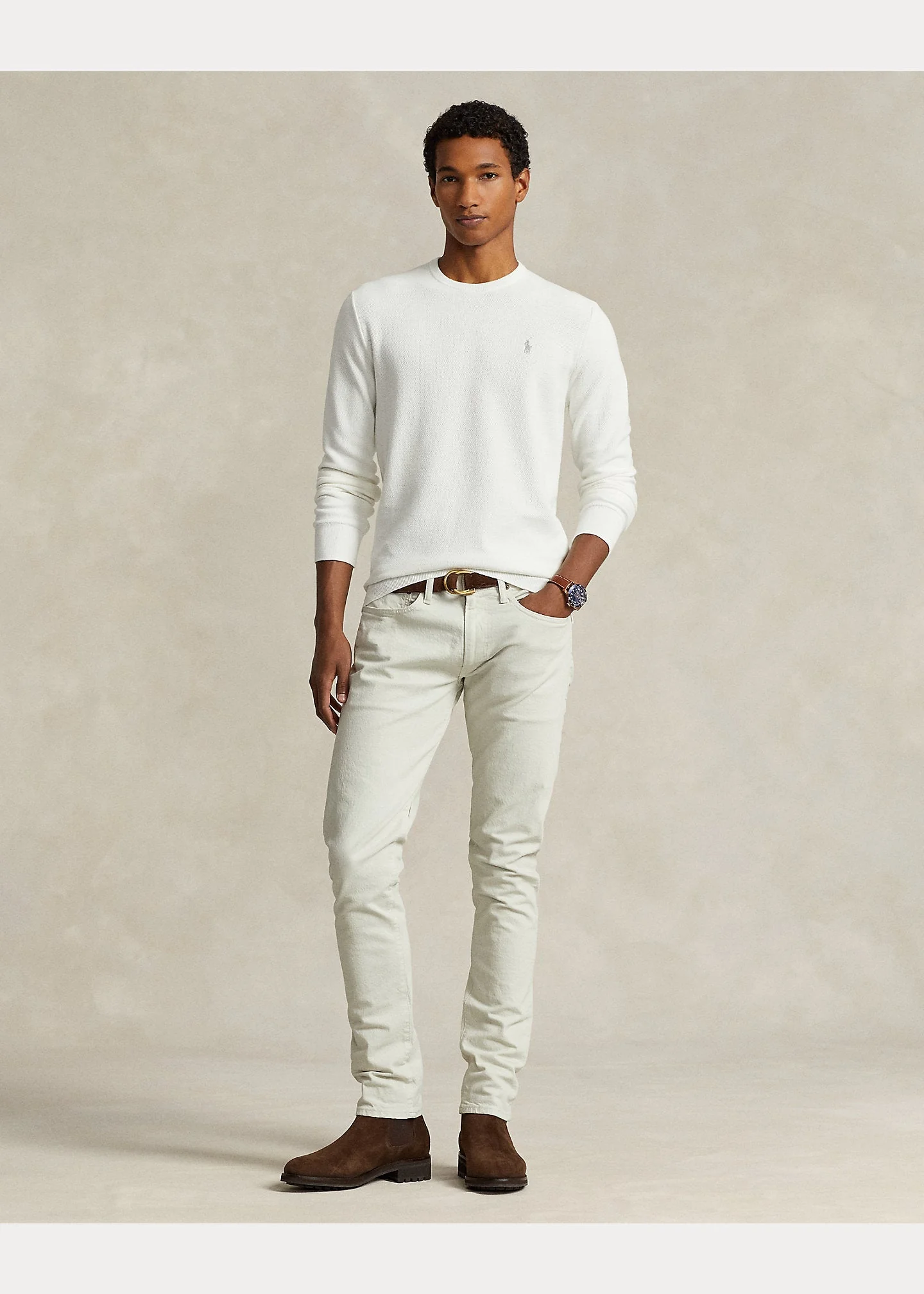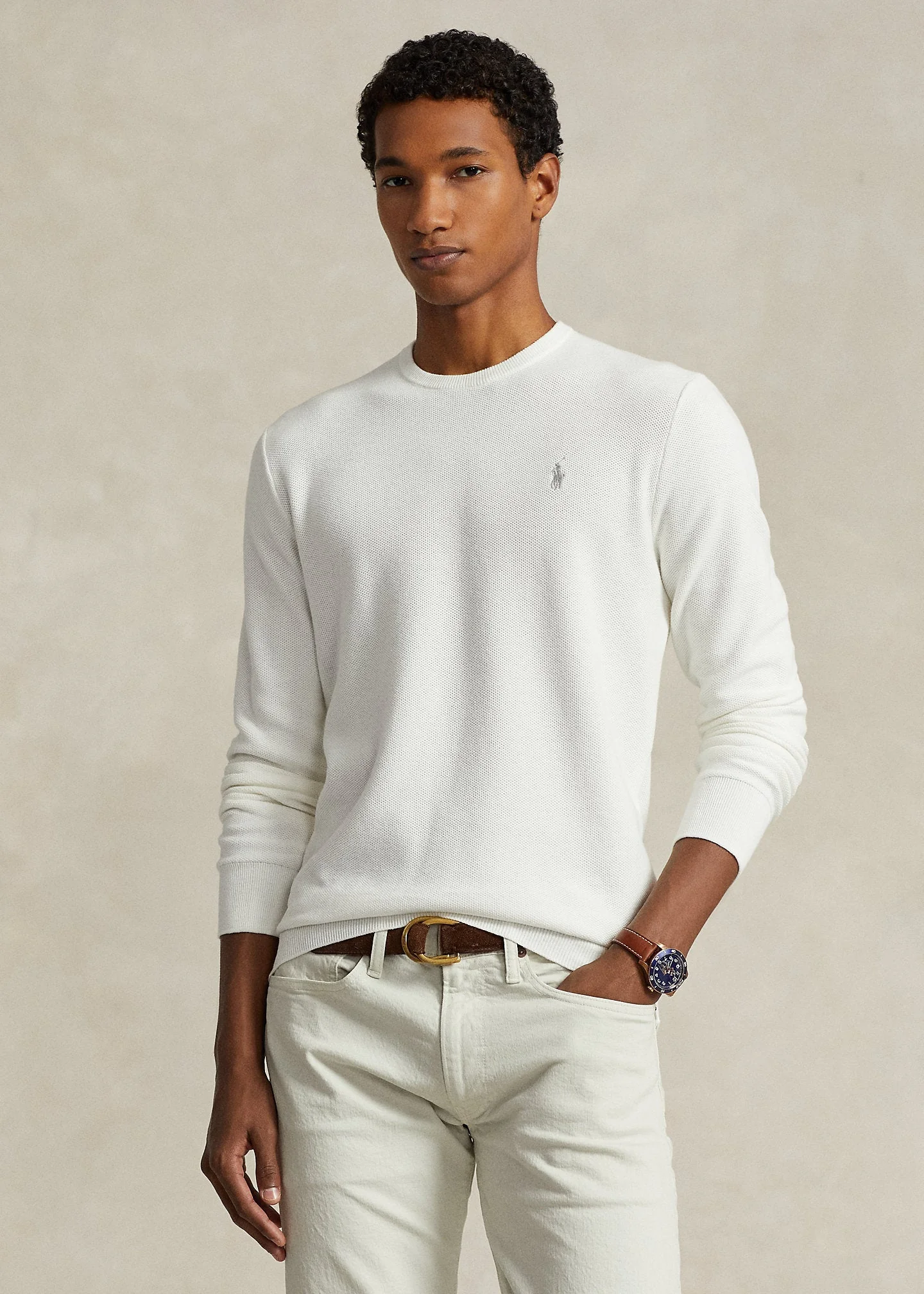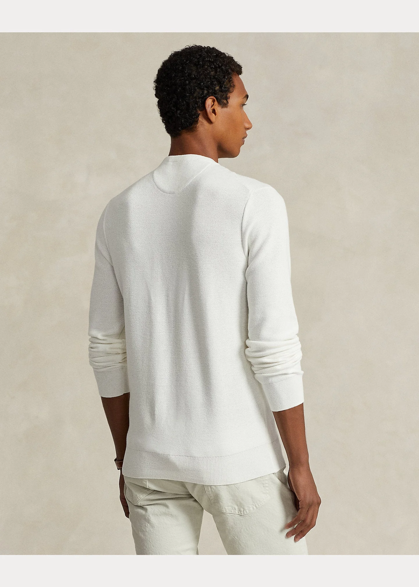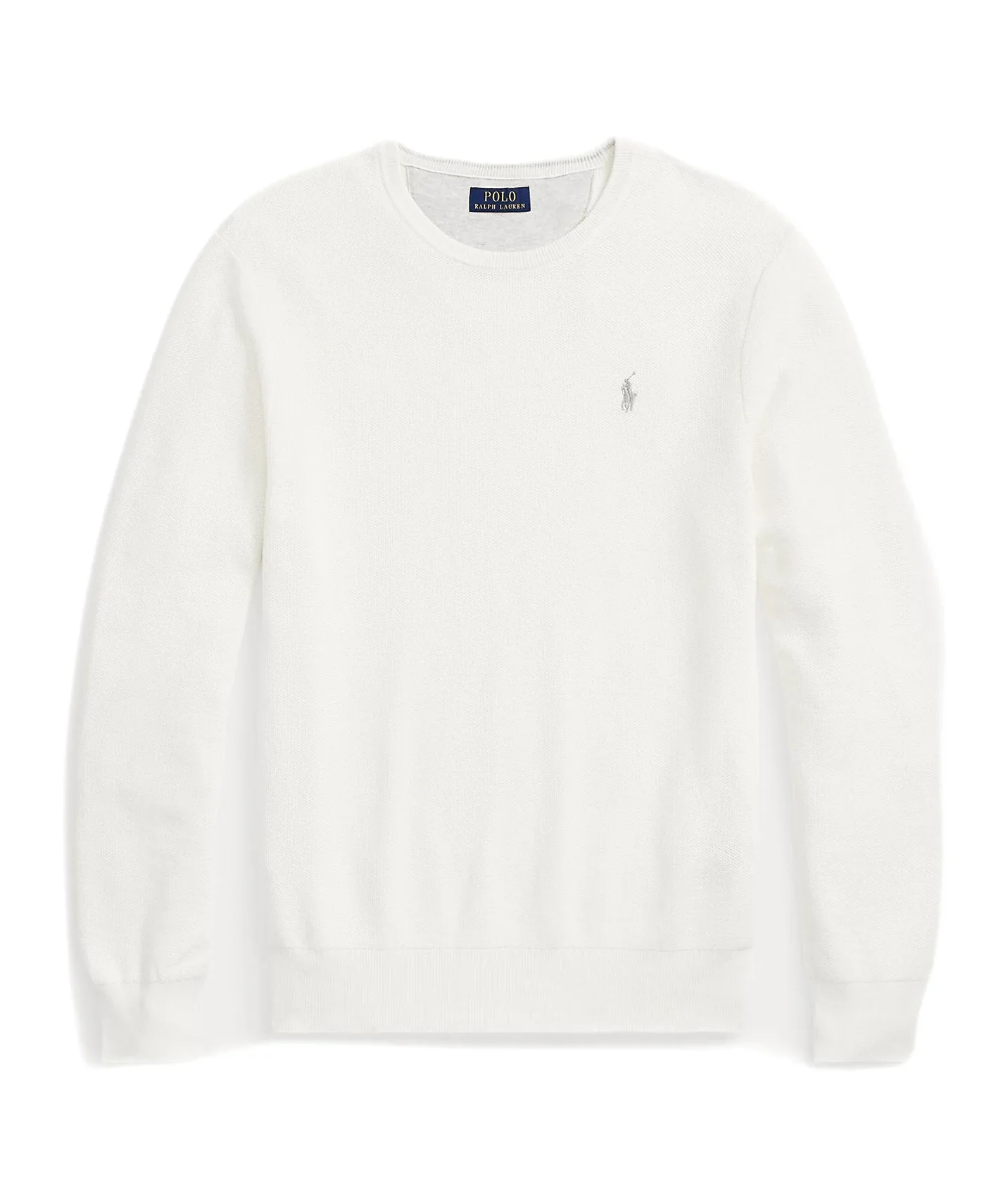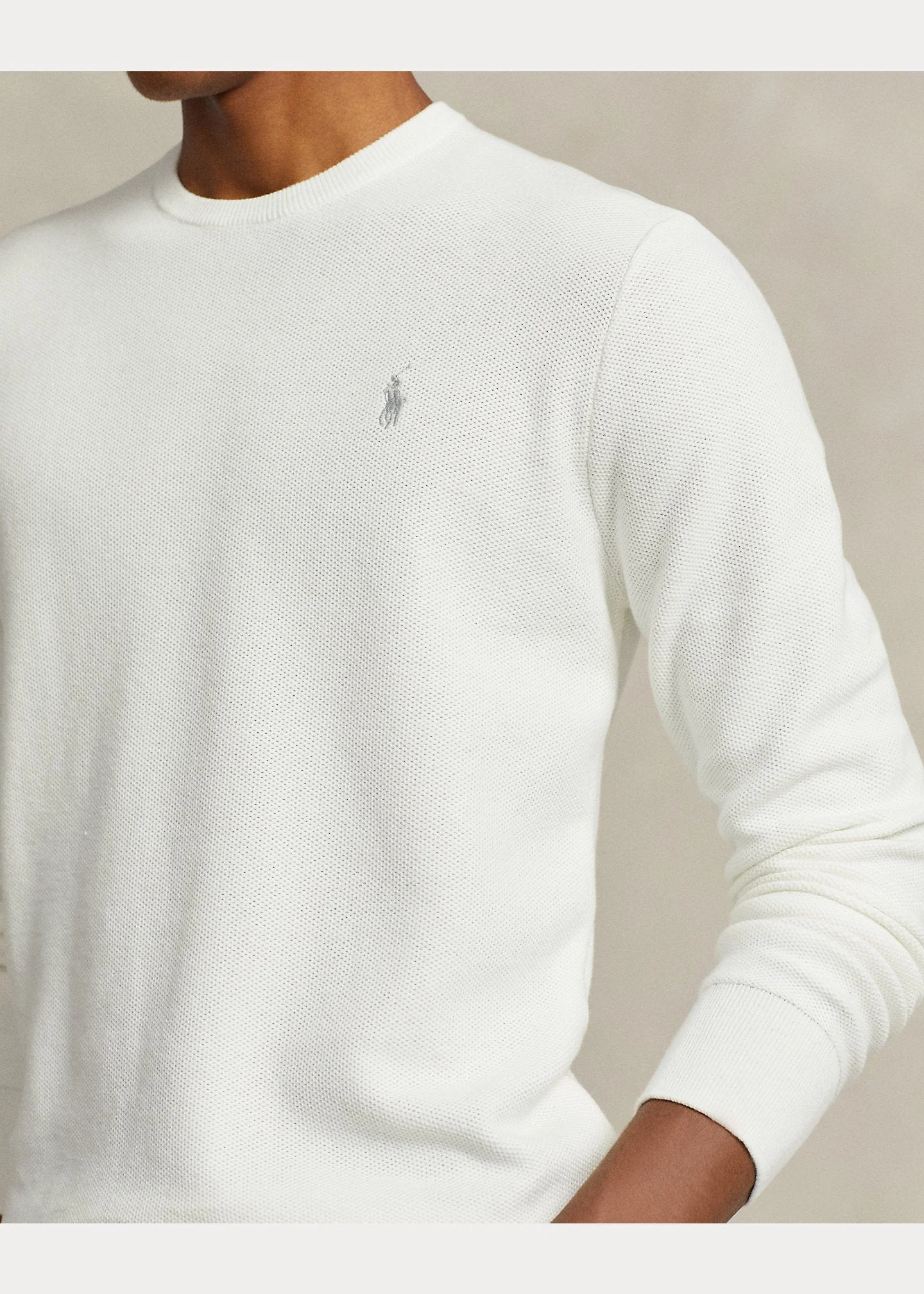 Polo Ralph Lauren – Pull white à col rond en coton texturé