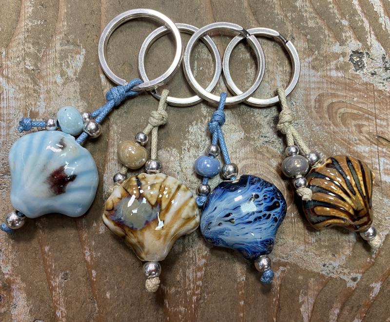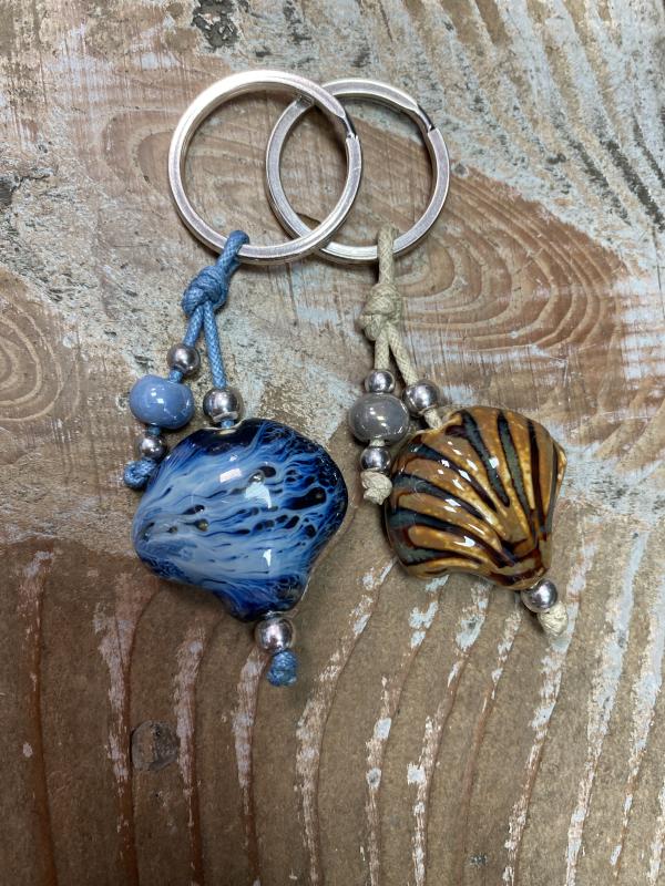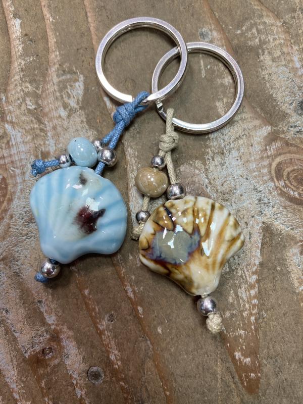 Porte clé perle céramique perles métal argenté sans nickel