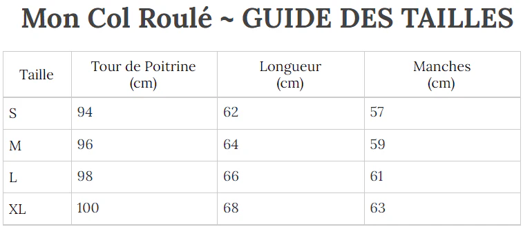 Sa composition 100% Laine, son élasticité et sa douceur ne manqueront pas de vous tenir compagnie tout l’hiver. MonColRoulé est LE spécialiste du Col Roulé, alors pourquoi ne pas nous faire confiance pour vous tenir chaud cet hiver ?