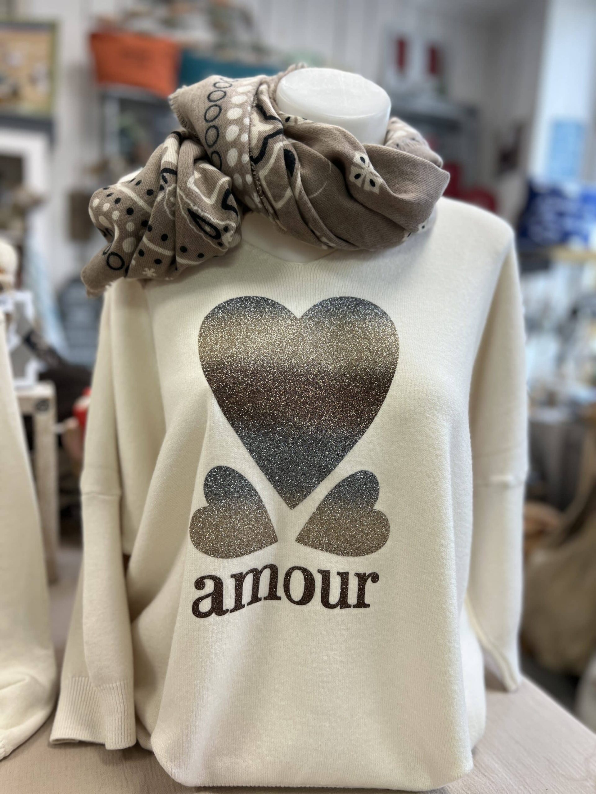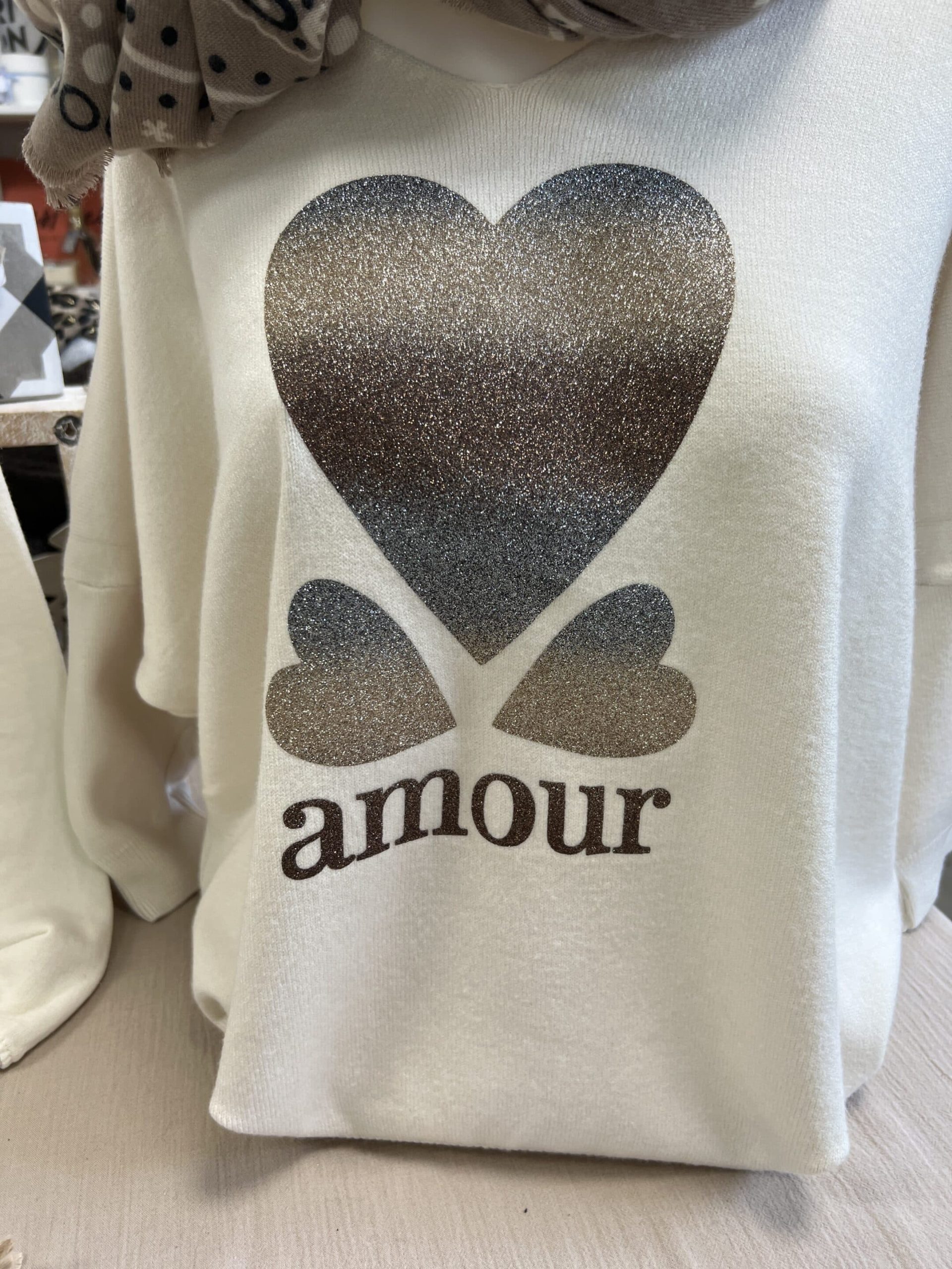 Pull Amour vert écru