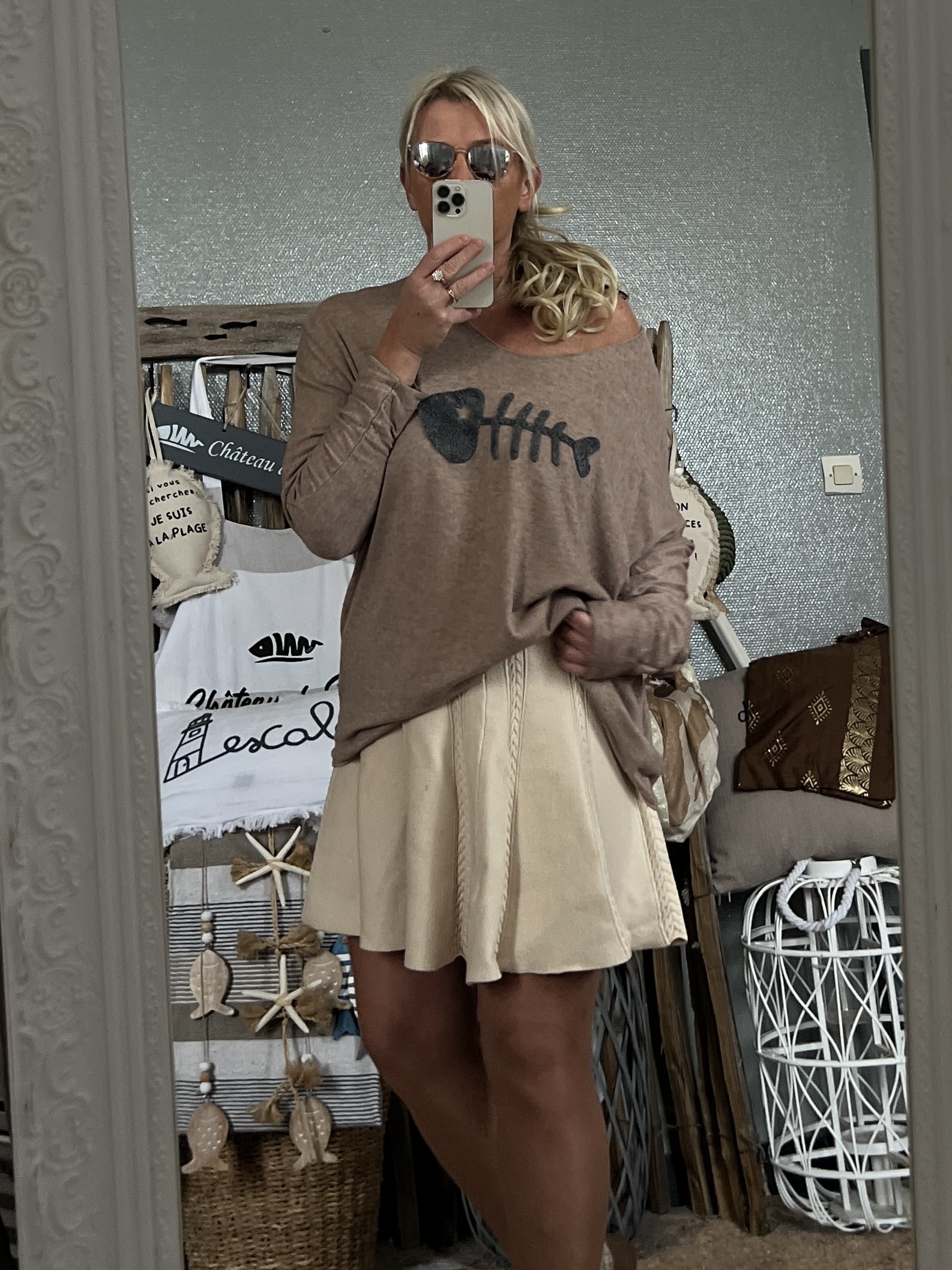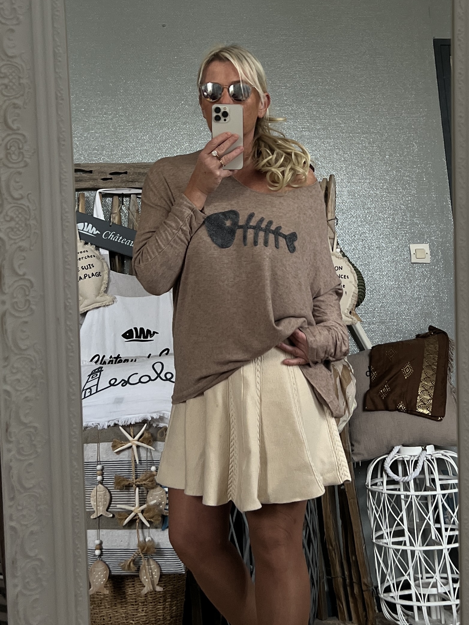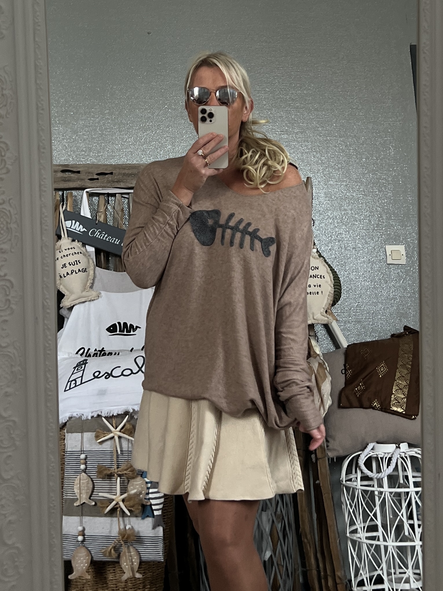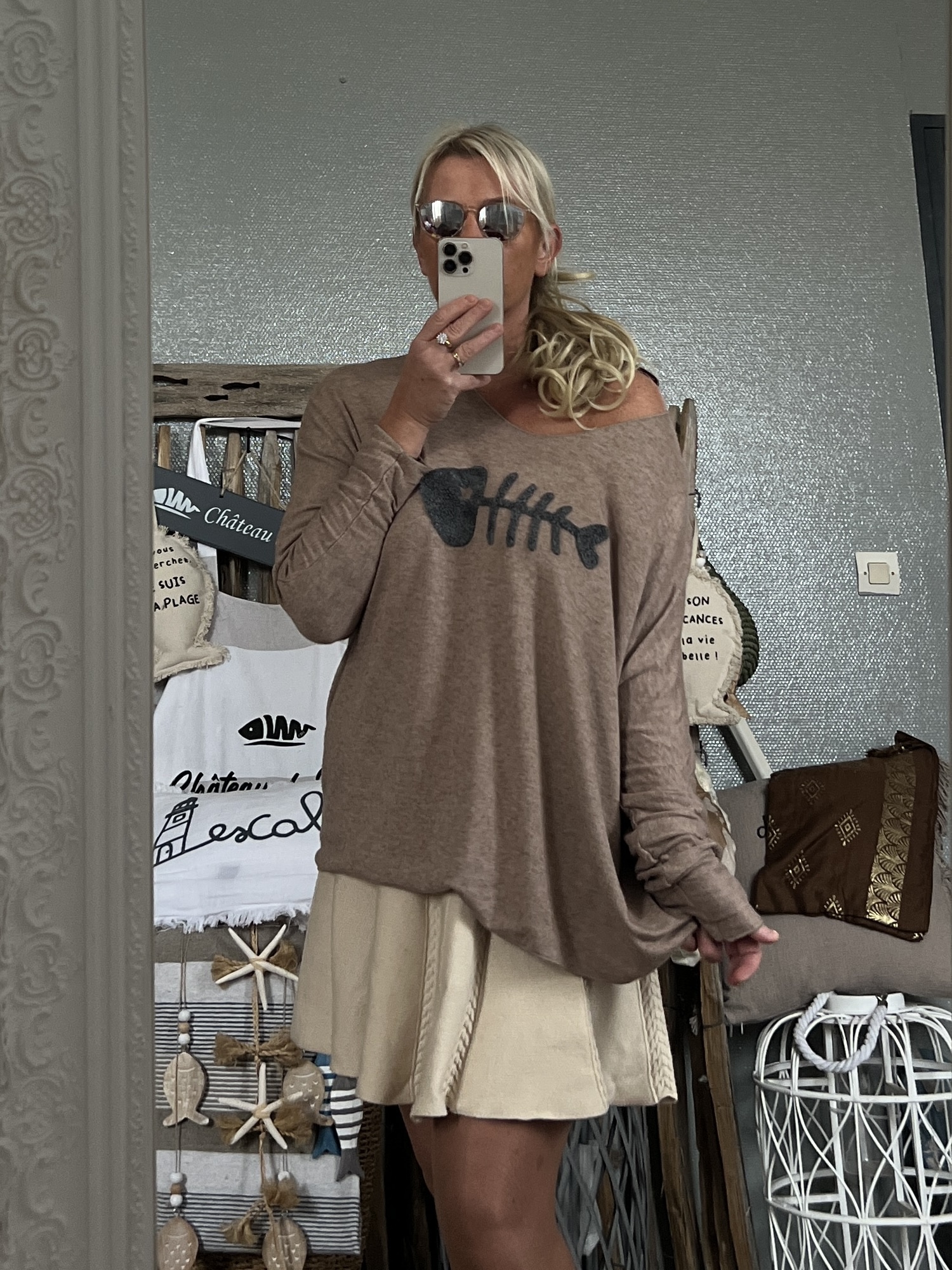 Pull Bohème fish taupe