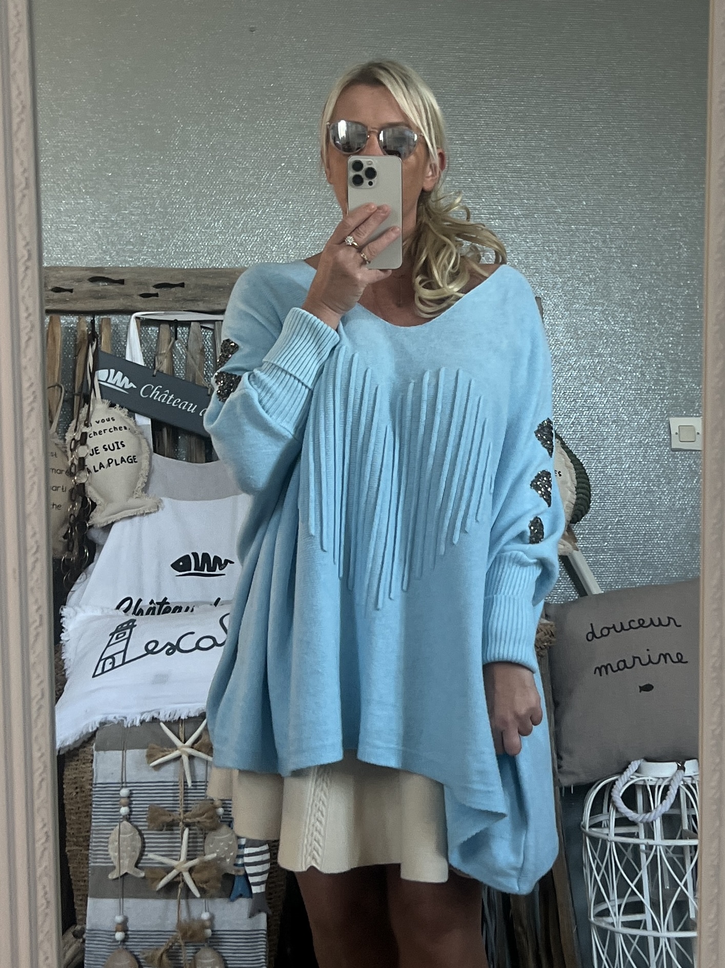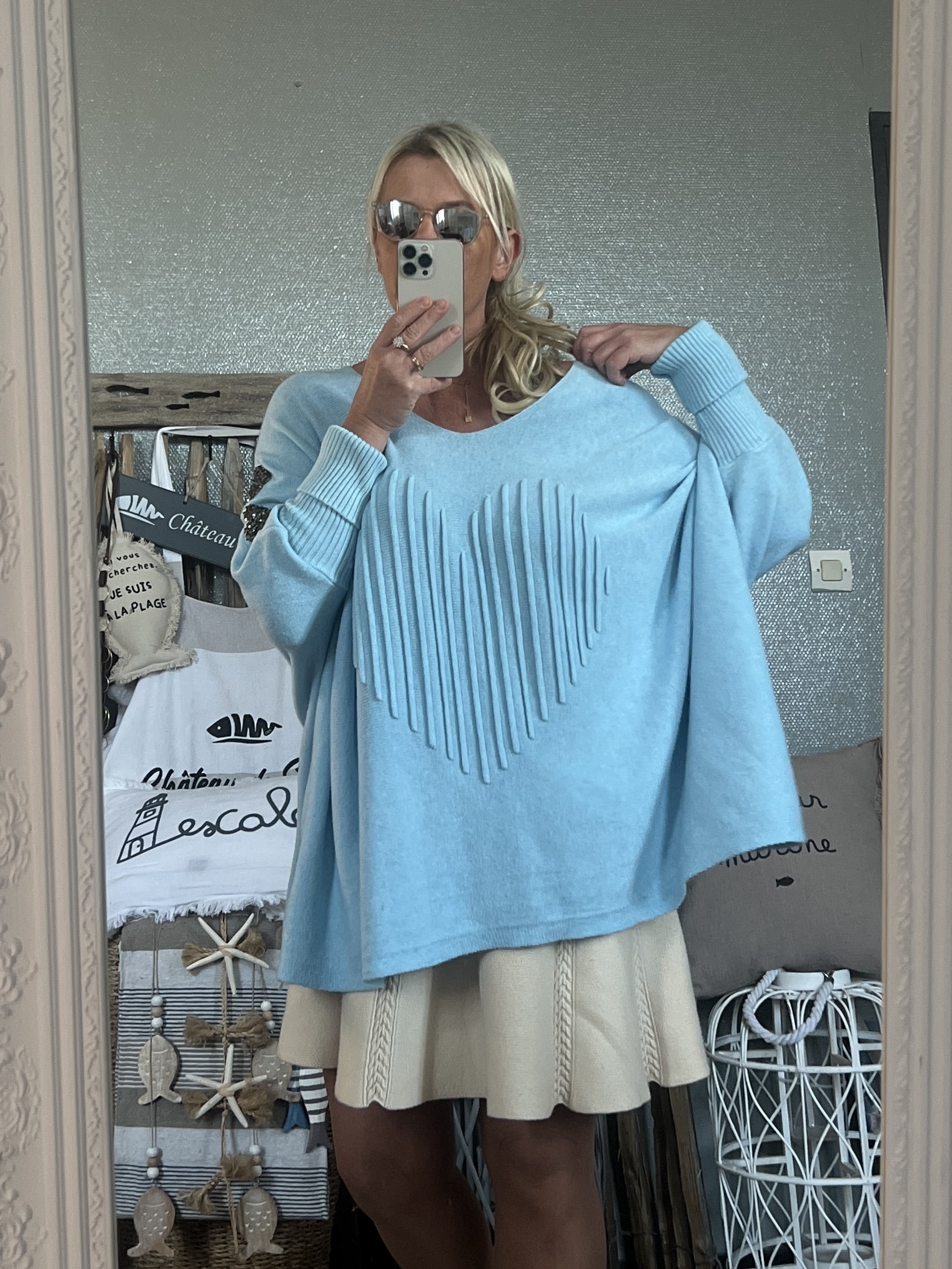 Pull cœurs strass T44/50 bleu