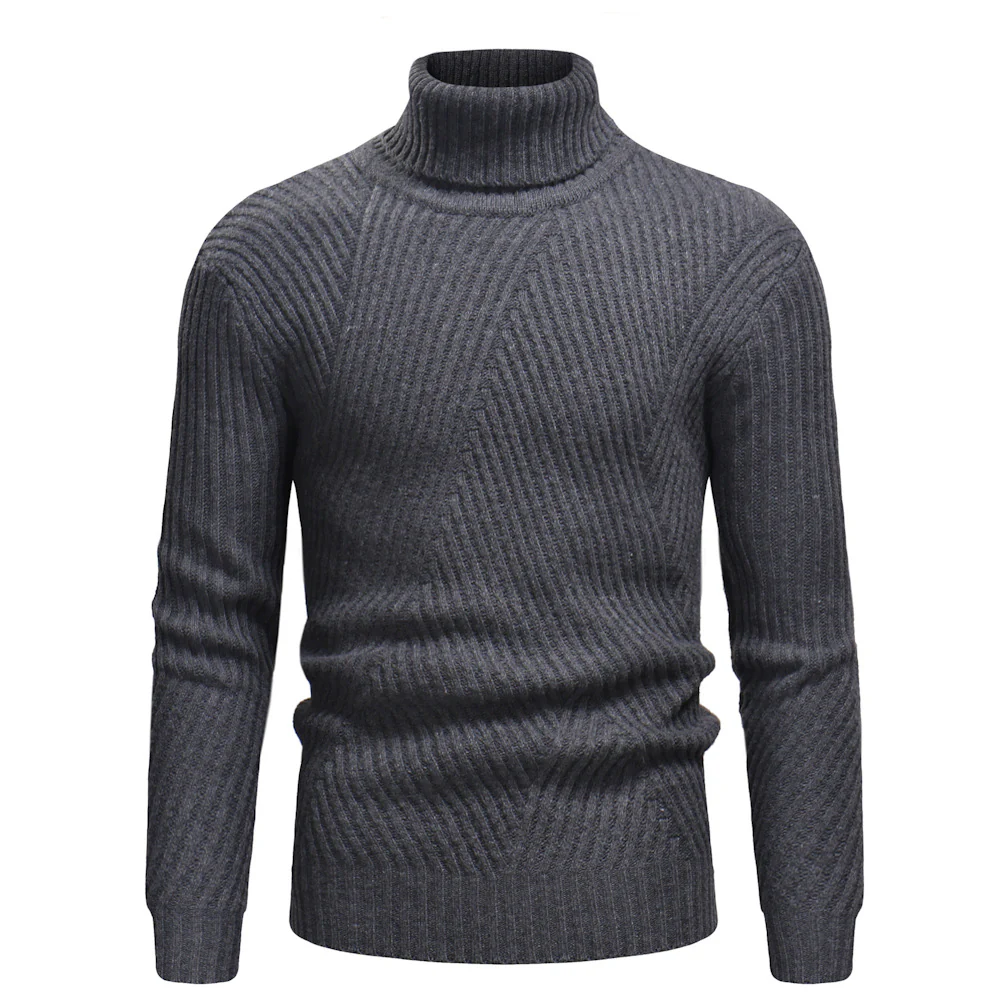 Pull Col Roulé Homme Laine Gris Foncé