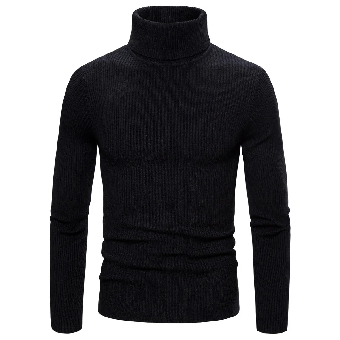 Pull Col Roulé Noir Homme