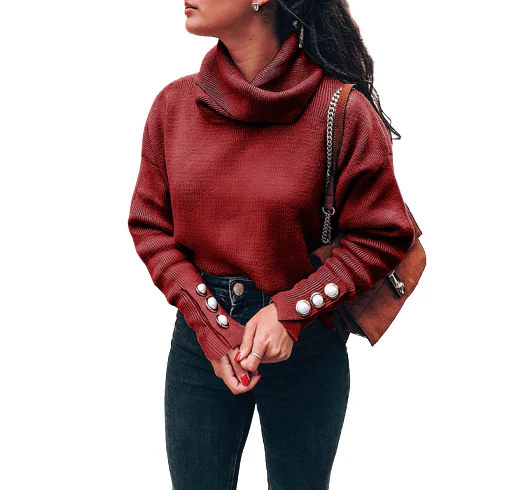 Les regards admirateurs vous dérangent ? Alors ne Découvrez surtout pas notre tout nouveau Pull Col Roulé Rouge Bordeaux Femme car vos amies risquent de vous envier !