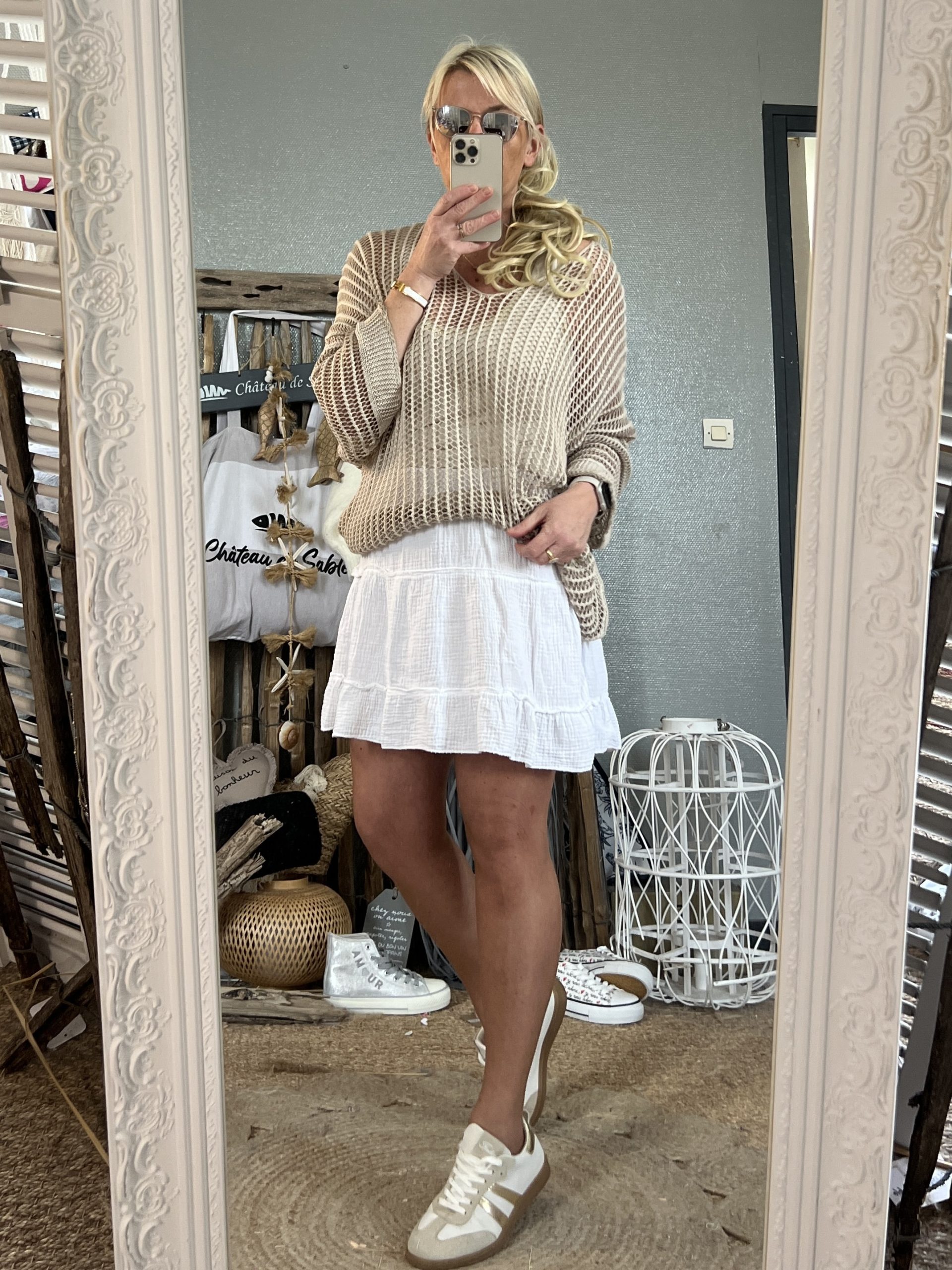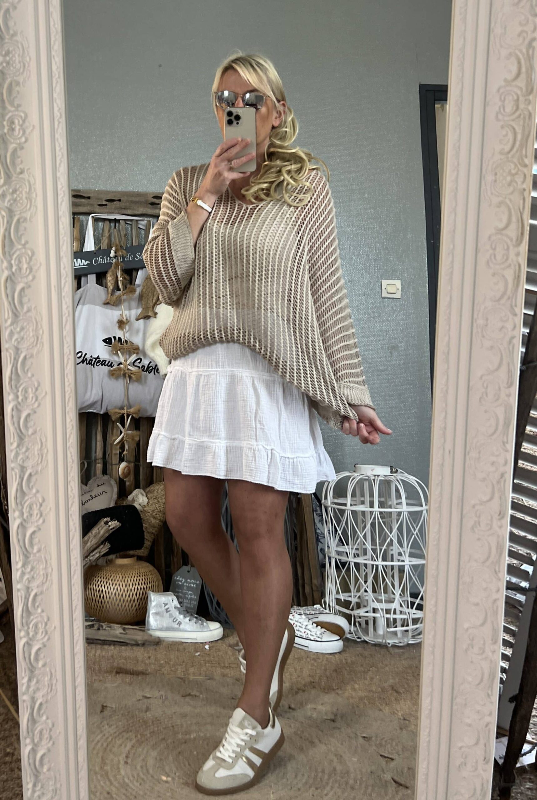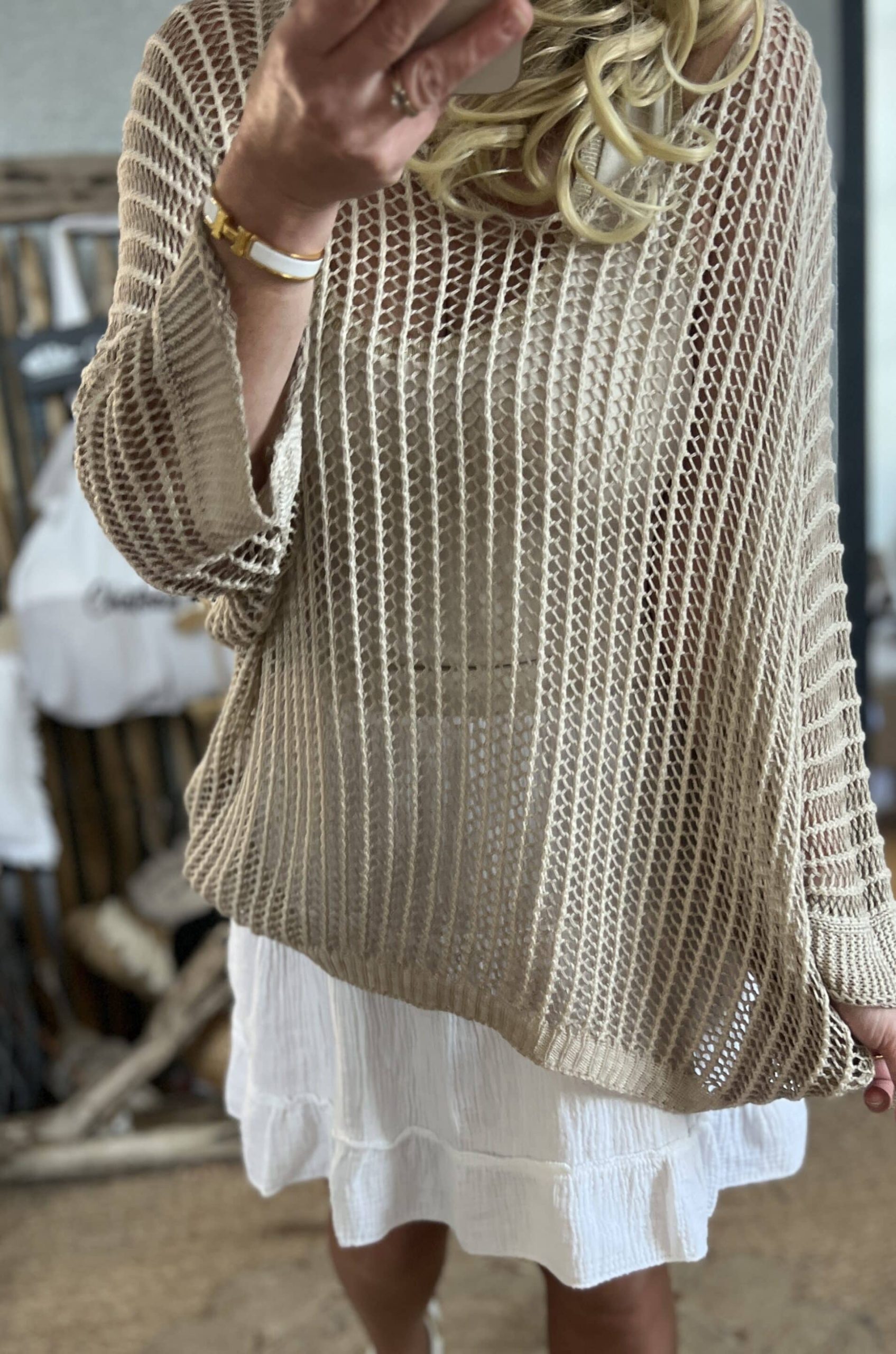 Pull maille oversize beige