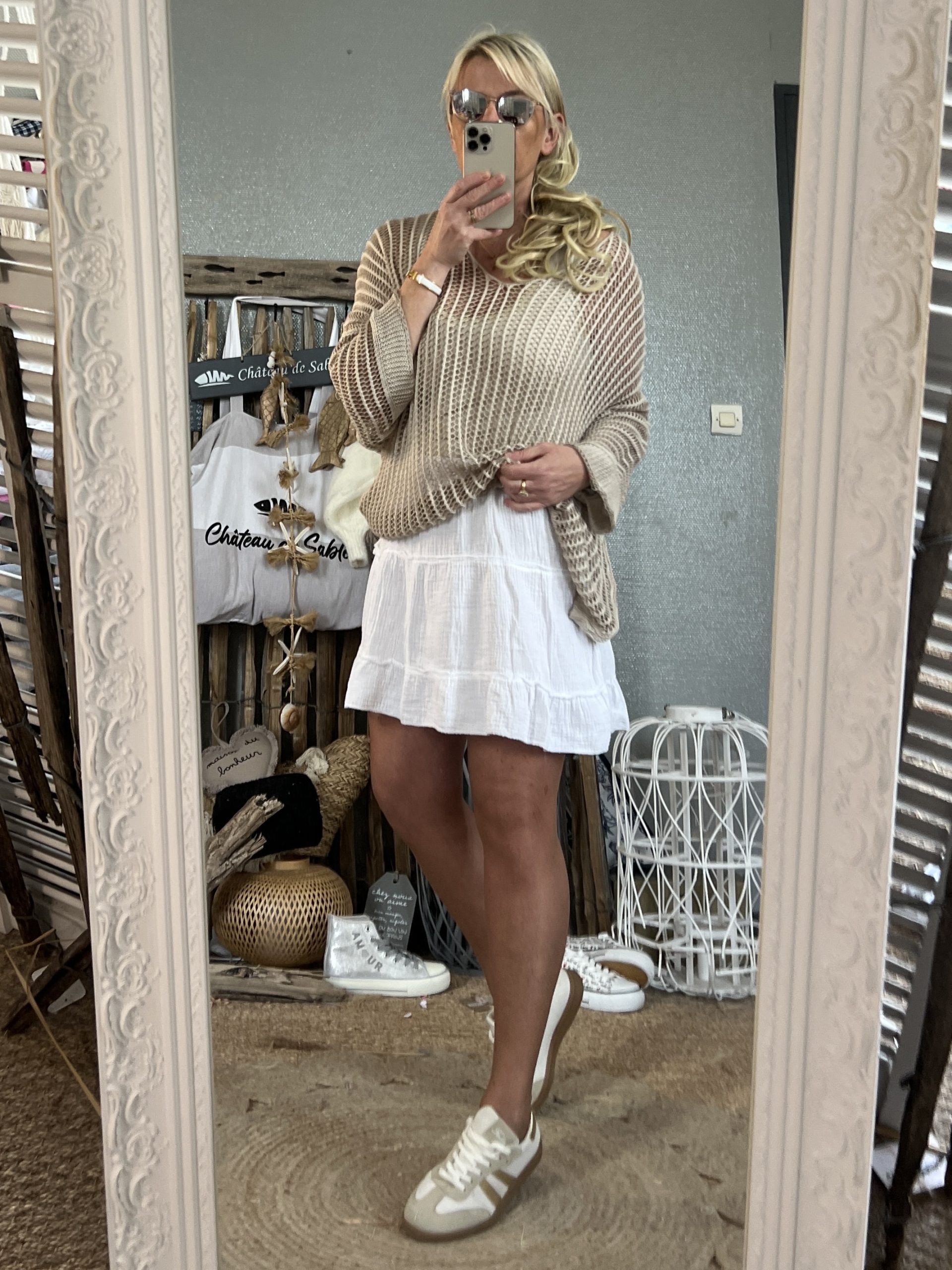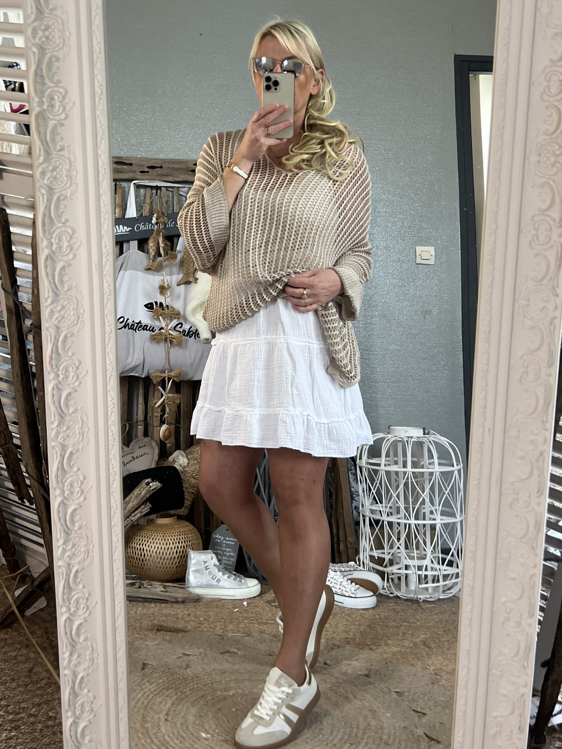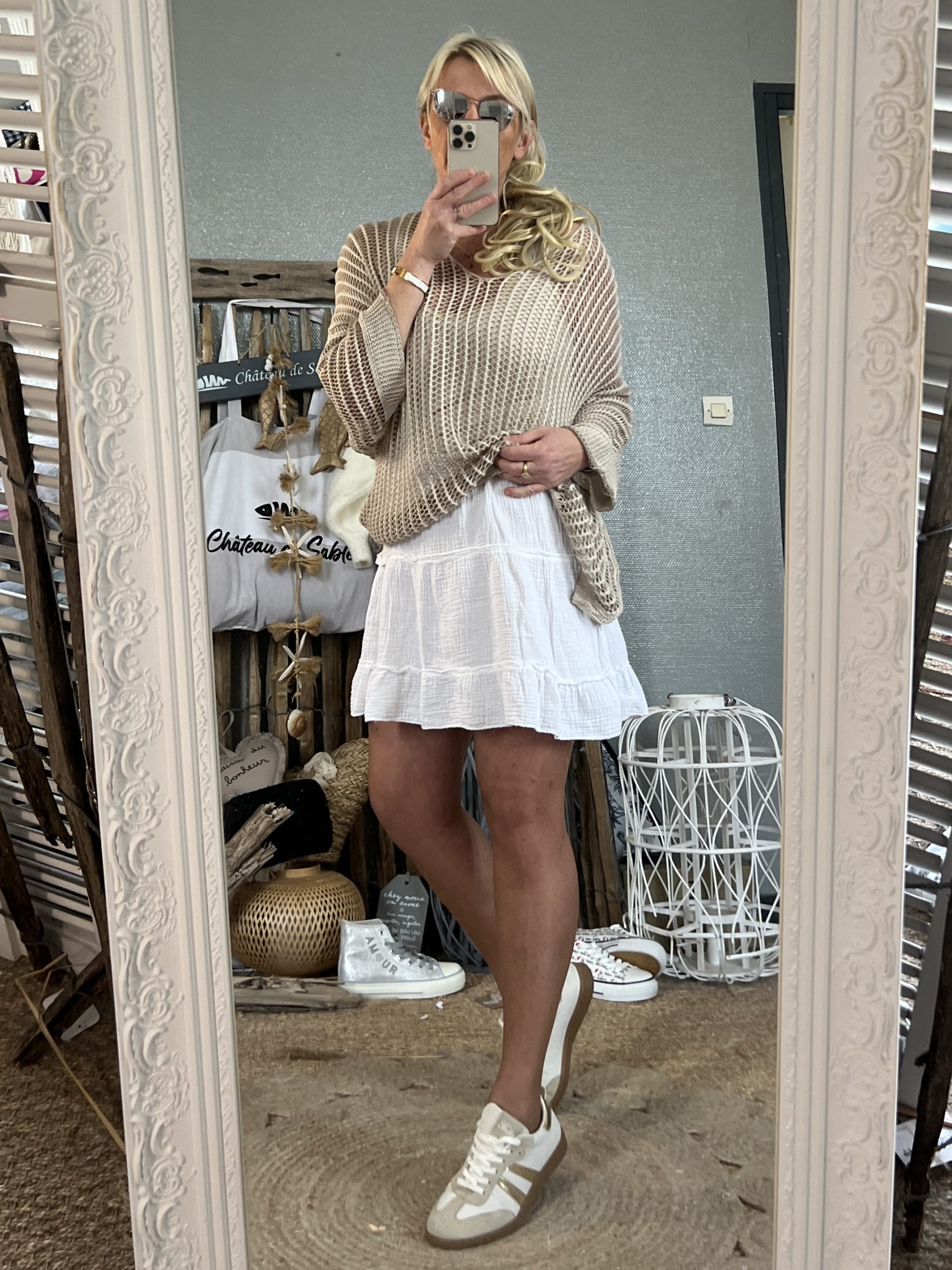 Pull maille oversize beige