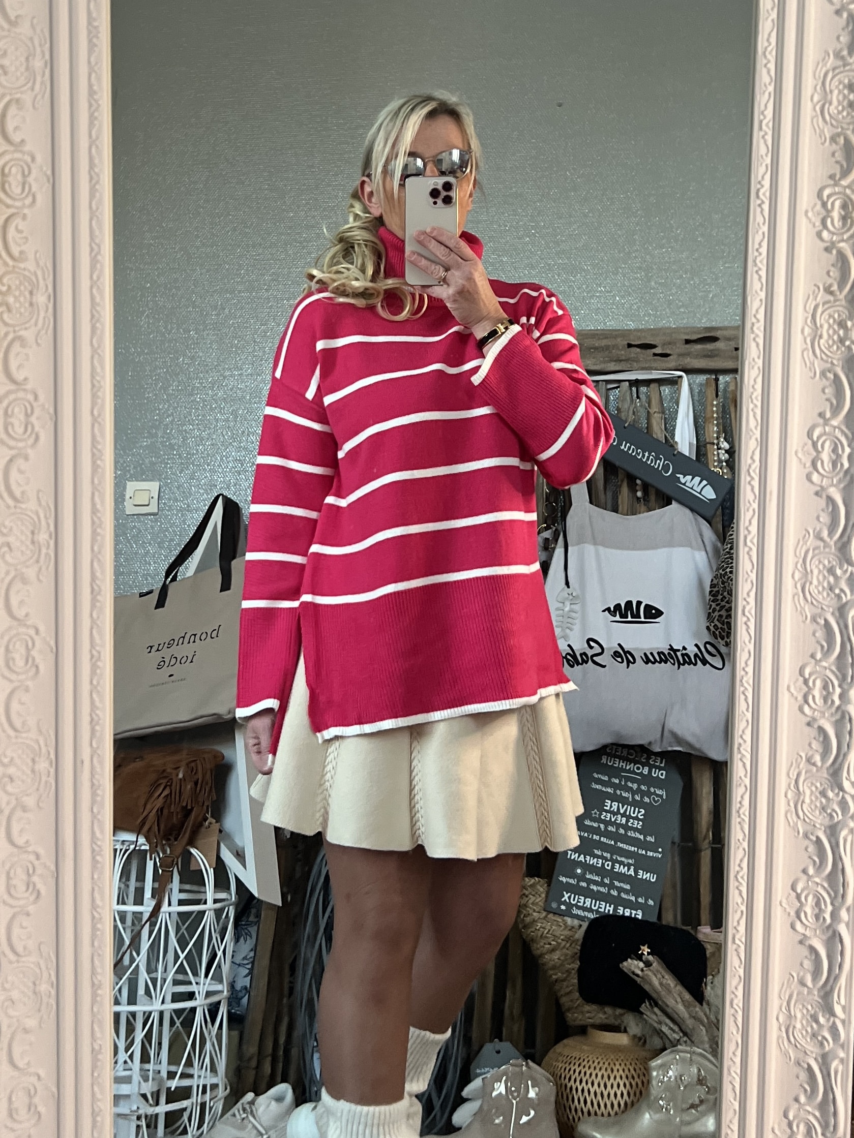 Pull coton polyamide col roulé taille unique 40/46 fendu sur le côté