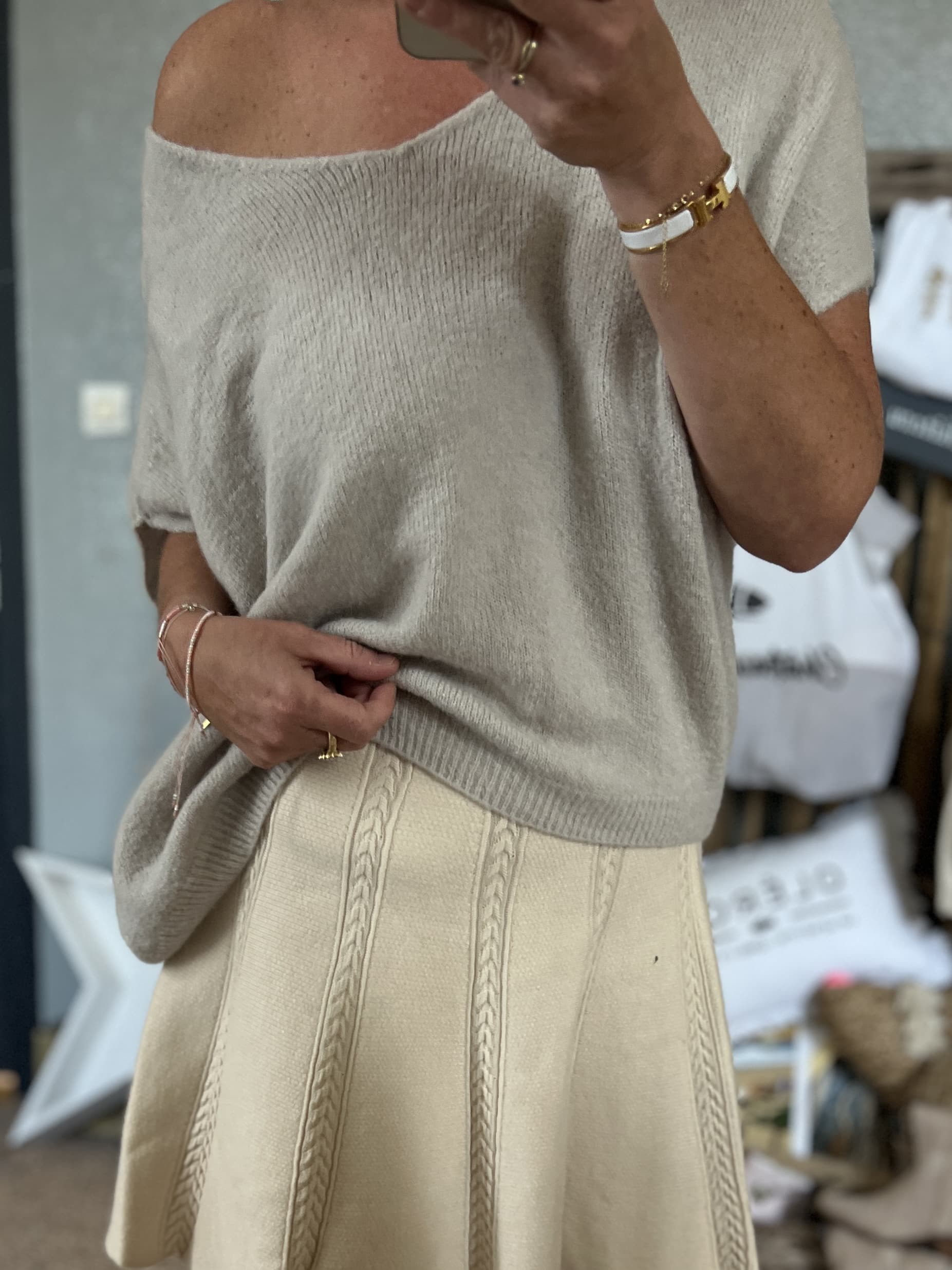 Pull oversize beige alpaga