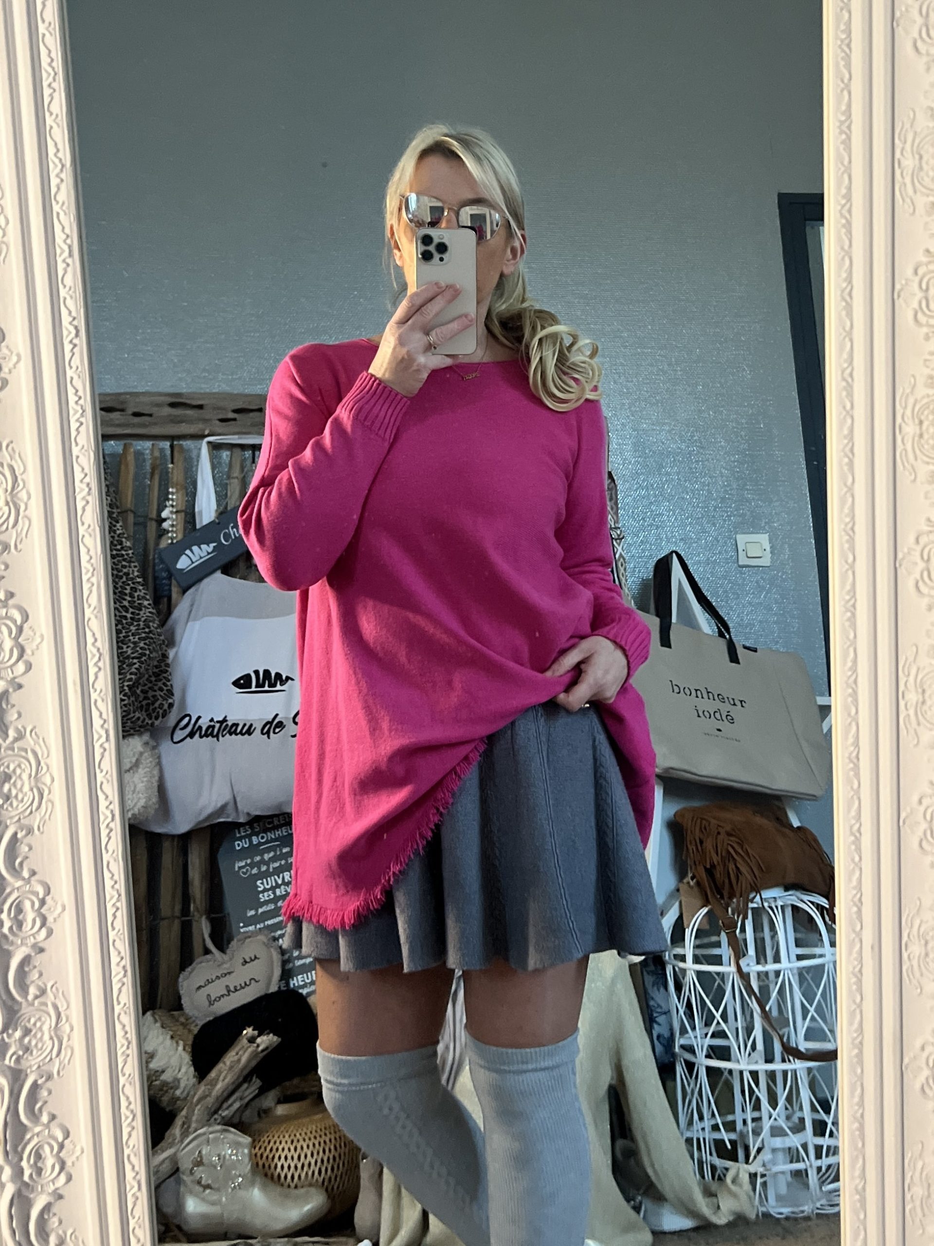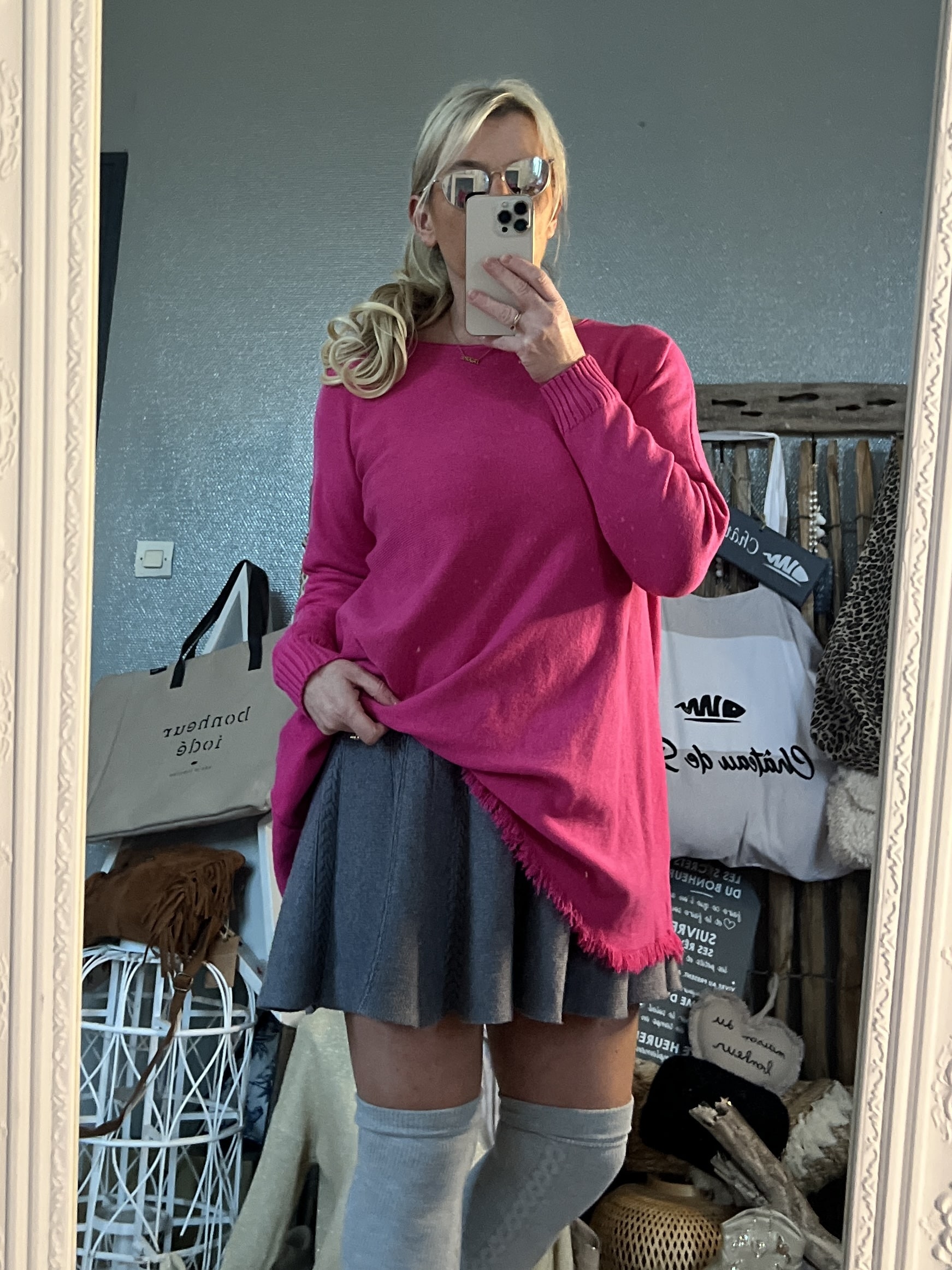 Pull oversize frangé fushia