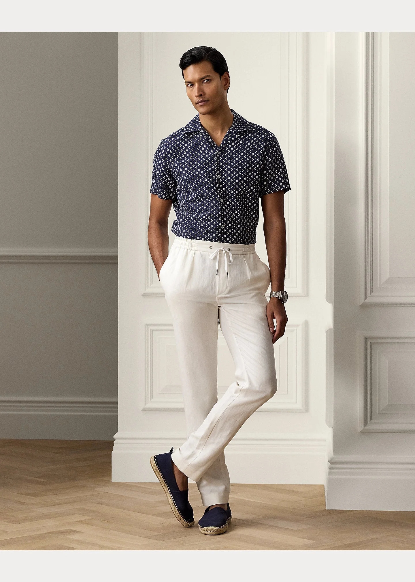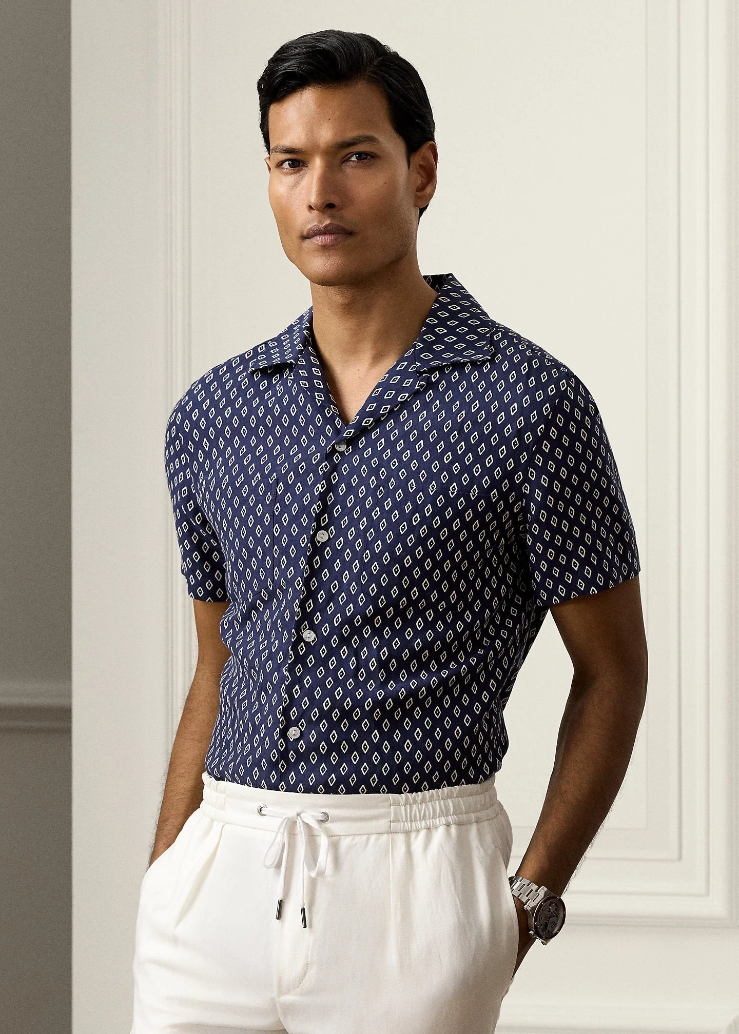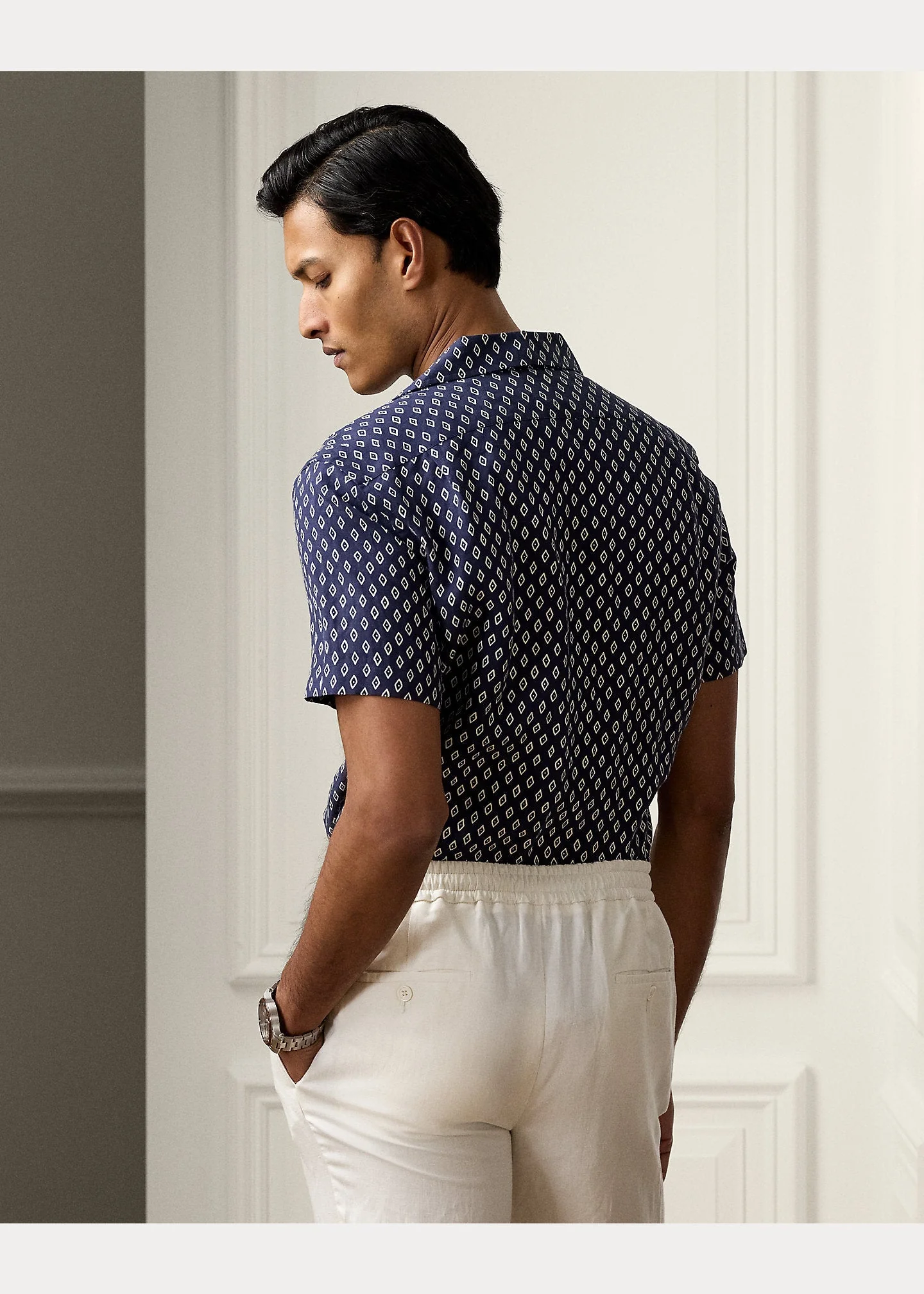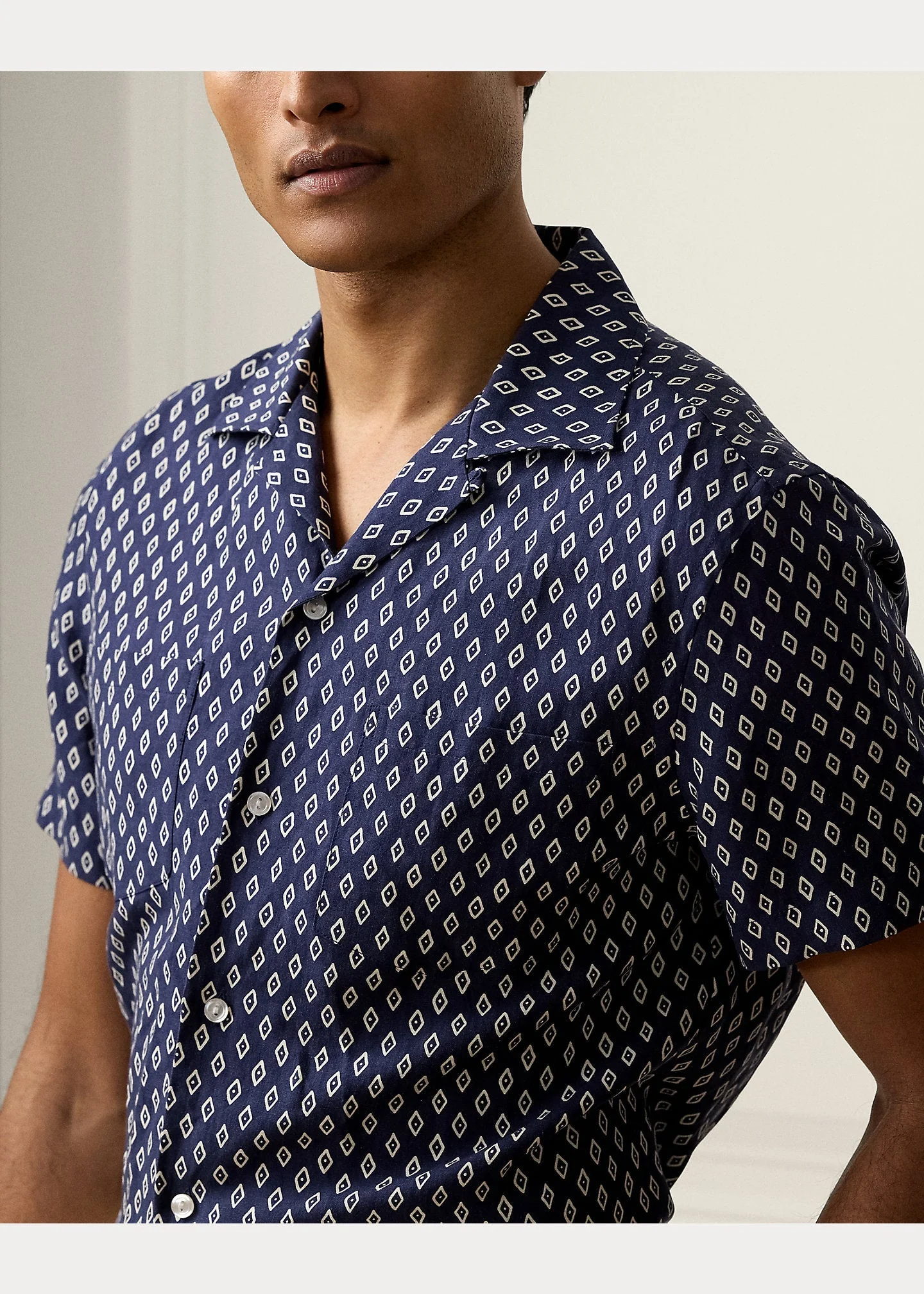 Imprimée d’un motif losanges exclusif, cette chemise est confectionnée en Italie dans un somptueux mélange de lin léger et de soie naturelle. Le tissu exquis rehausse la silhouette d’inspiration vintage grâce à son drapé et à sa texture exceptionnels.