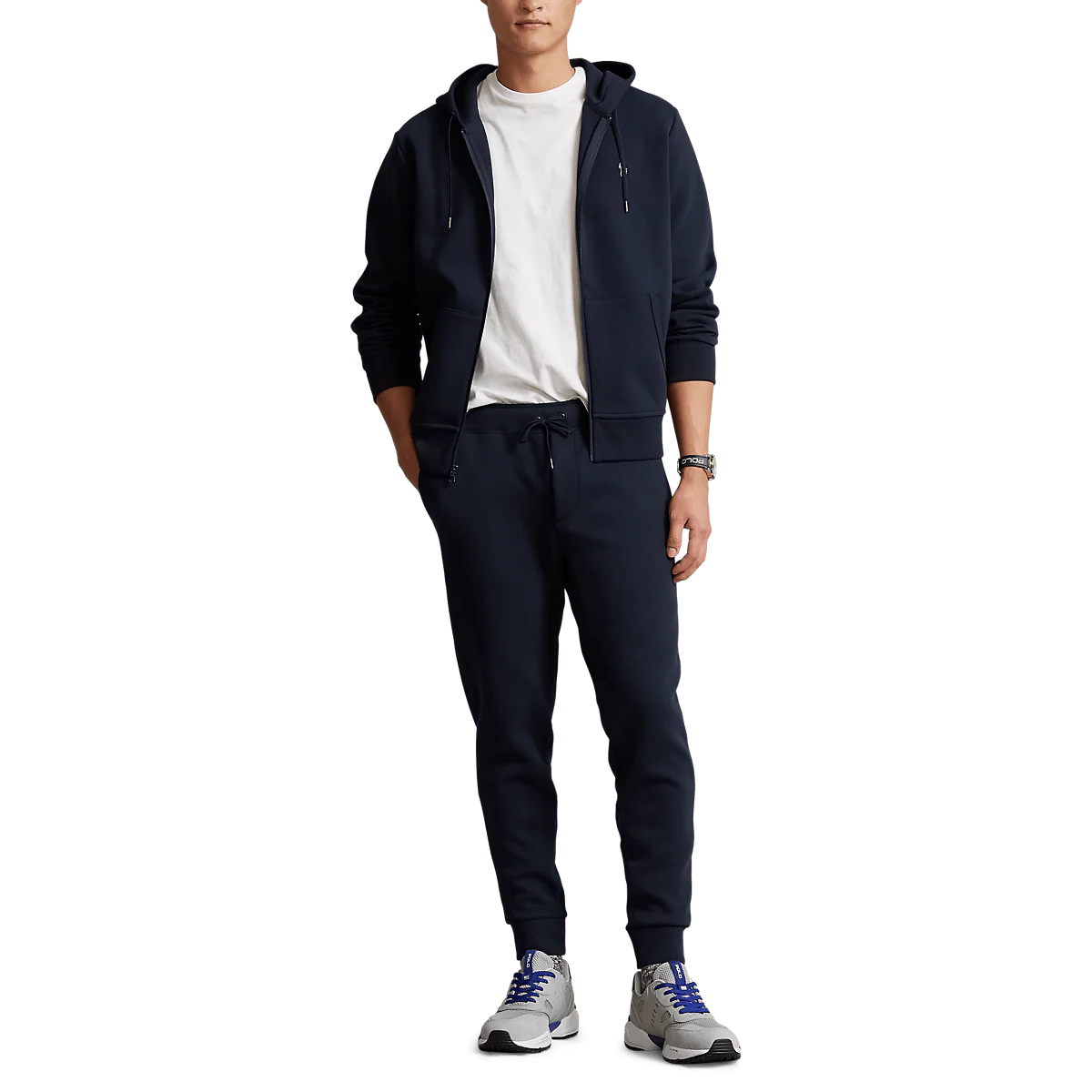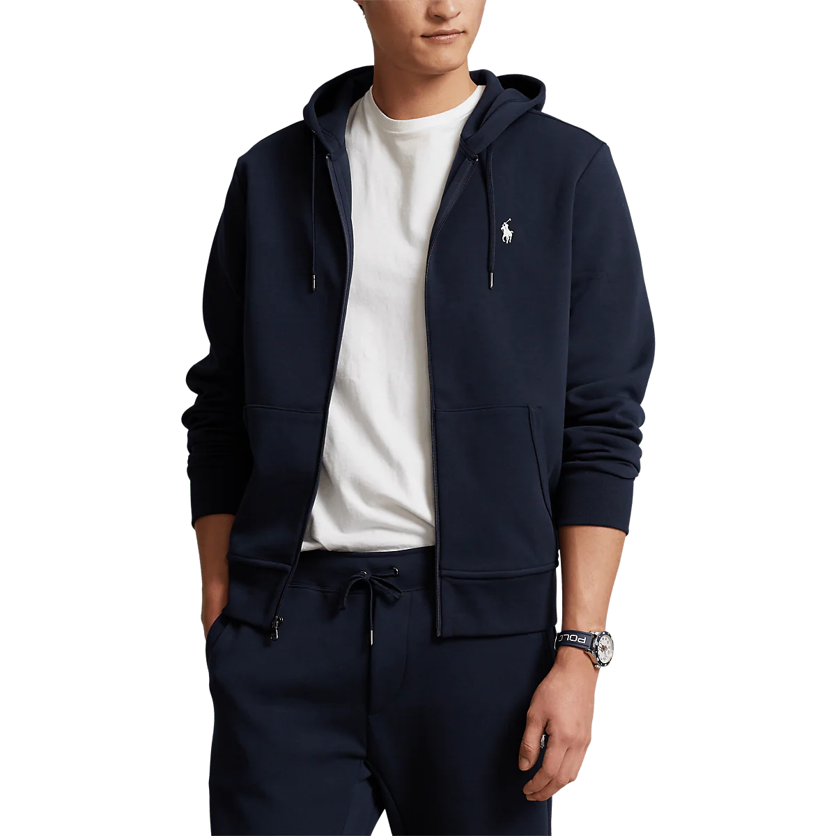 RALPH LAUREN – Sweat à capuche en maille double Bleu marine