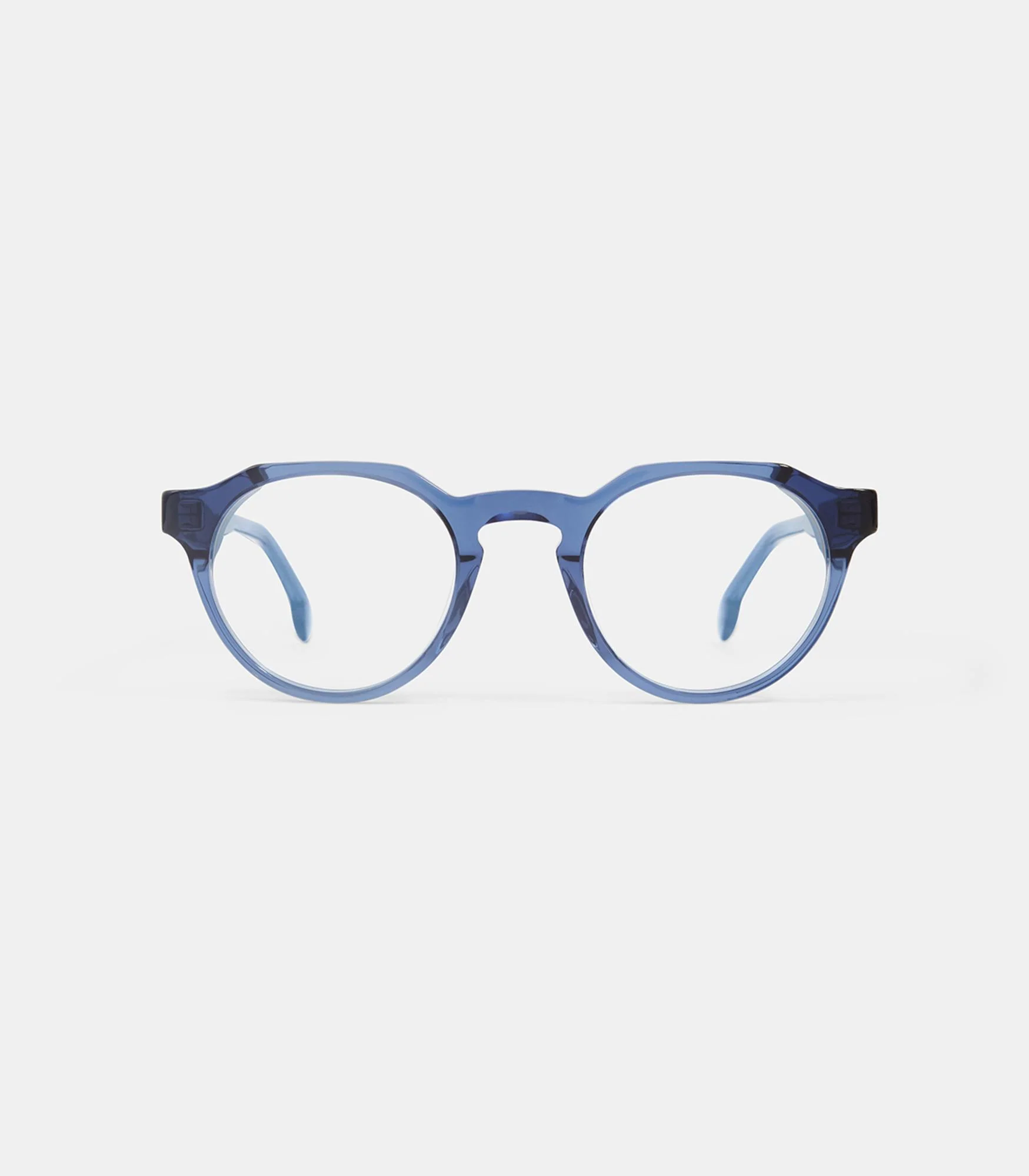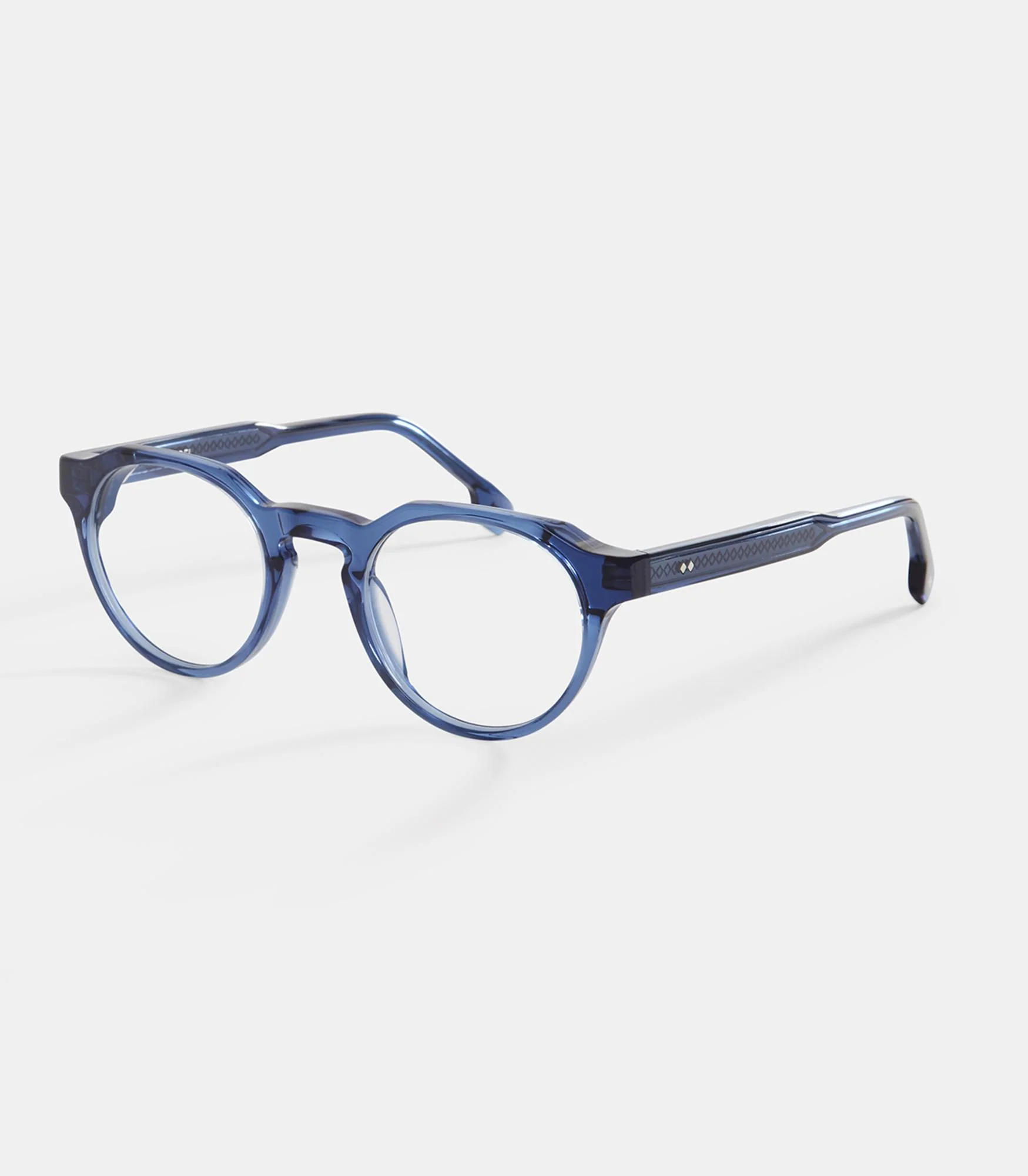 Monture iconique en acétate Mazuchelli, nez clé, branches fines avec rivets apparents. Dimensions : 47 – 22 – 145