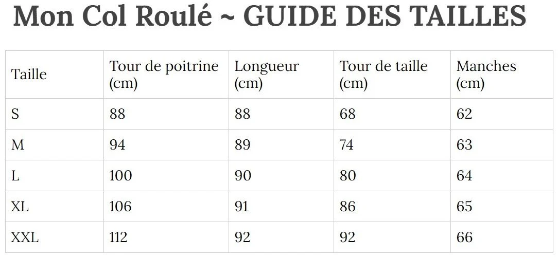 Guide des Tailles Robe col Roulé