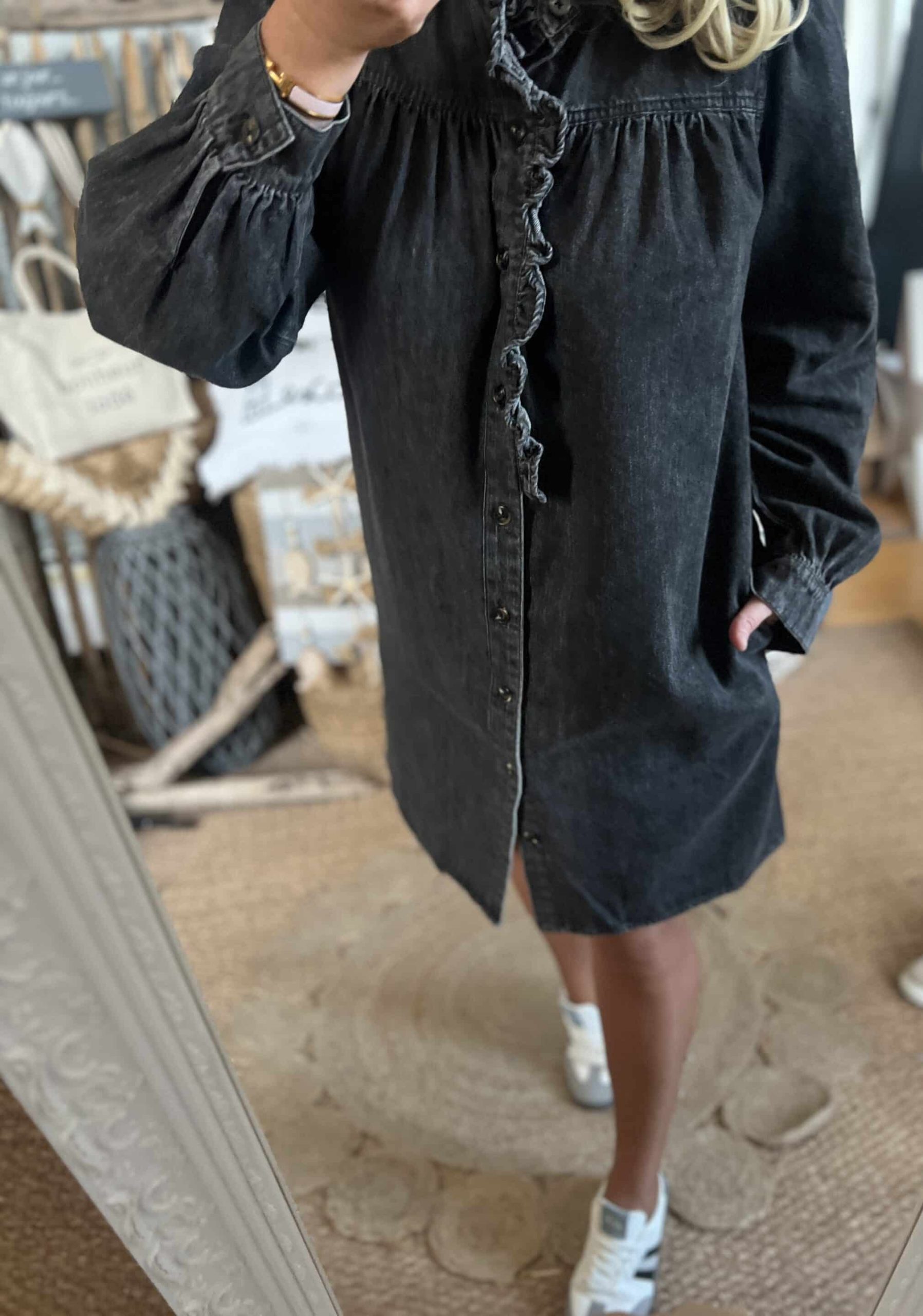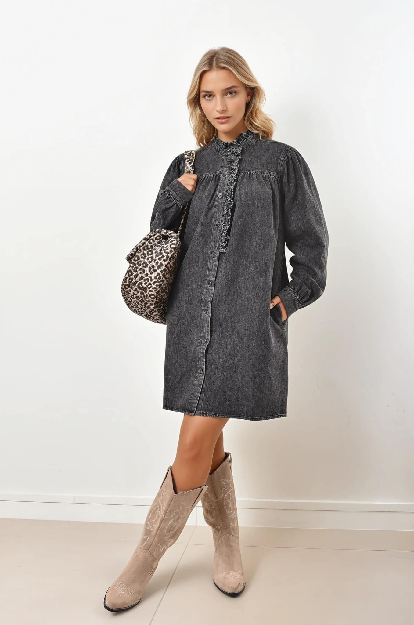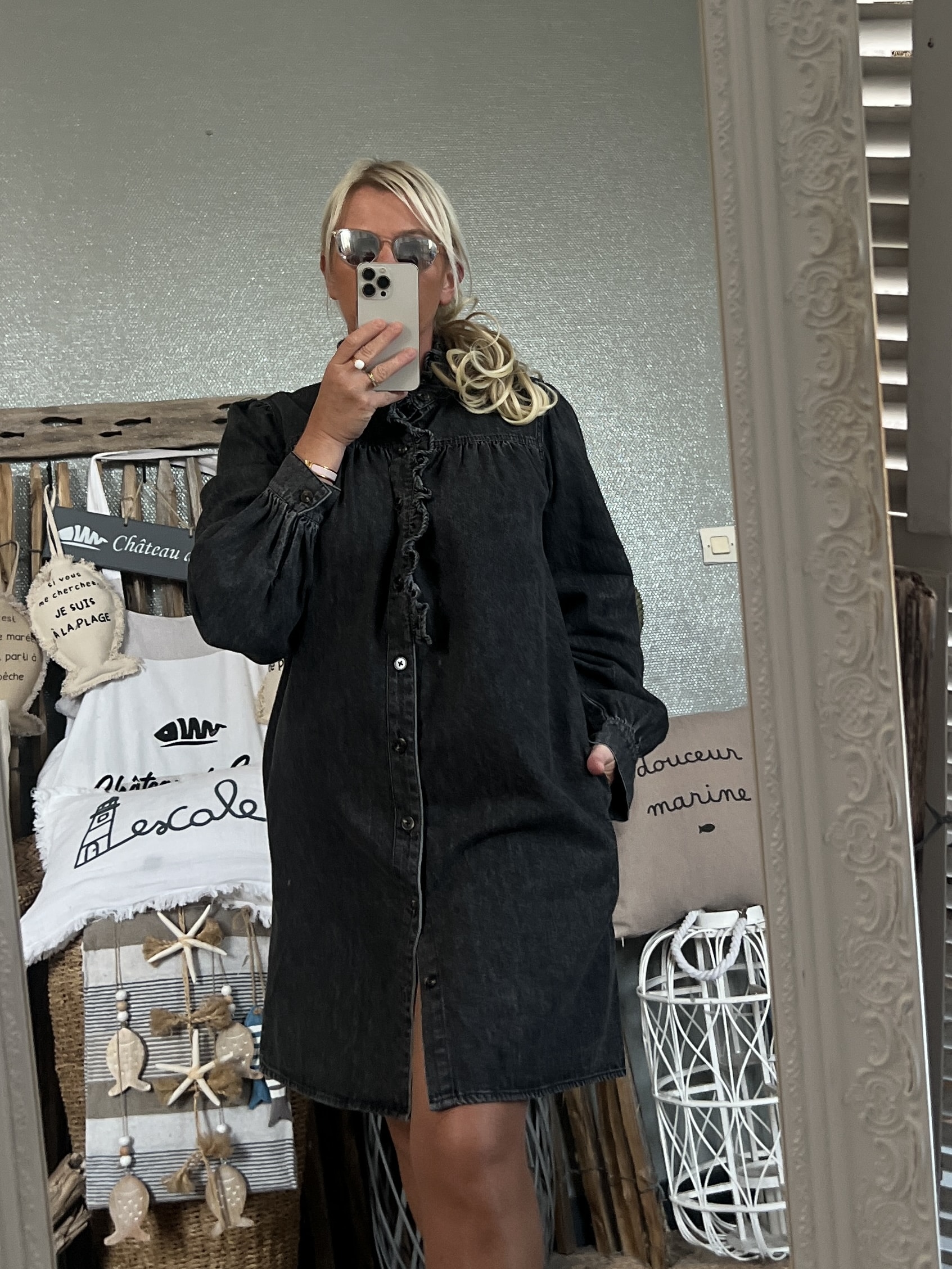 Robe col chemise. Boutonnée sur la partie haute. Possède 2 poches. Matières: 100% Coton TS 36 TM38/40 TL40/42