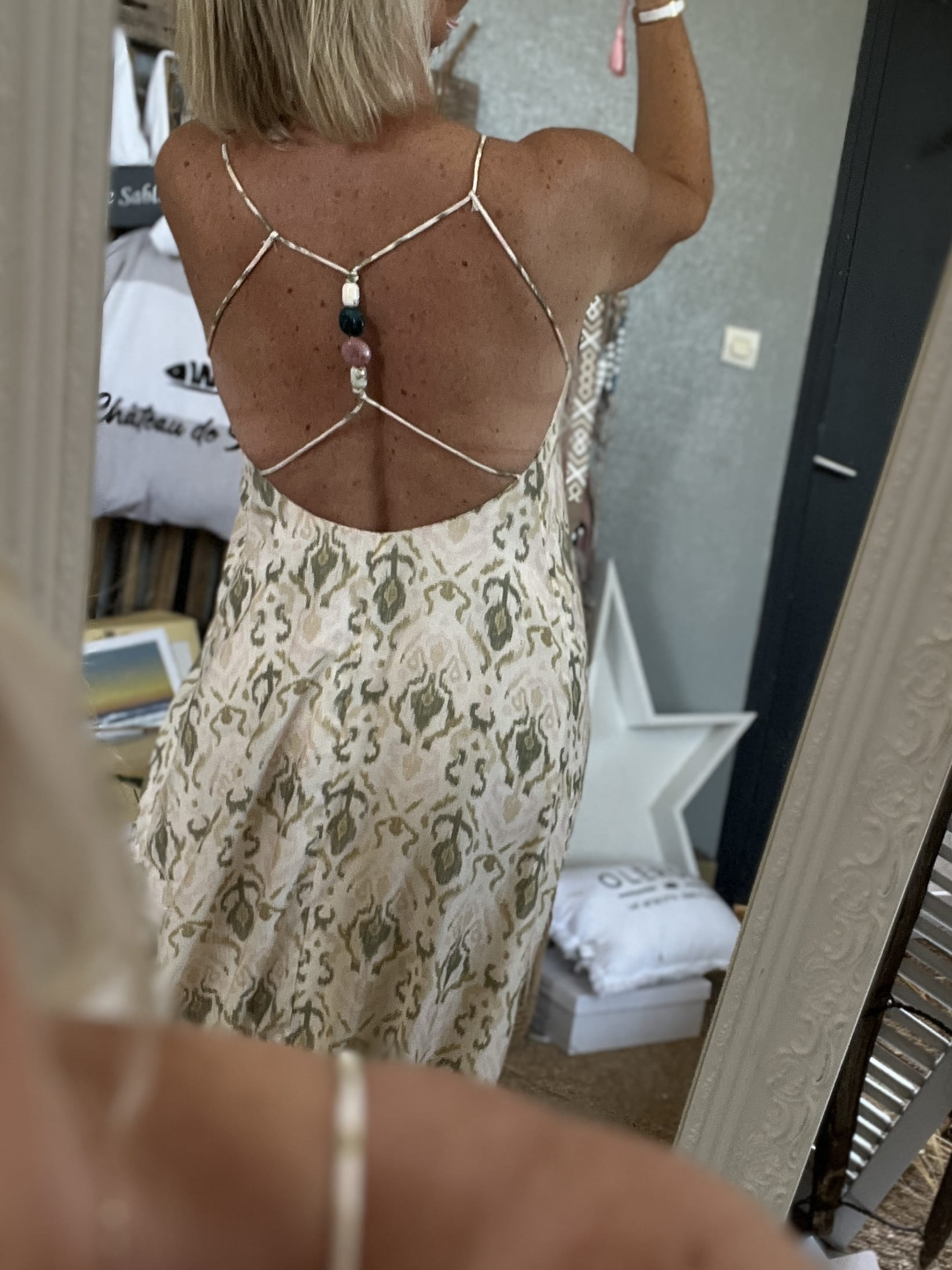 Énorme coup de coeur pour la robe Kani qui a tout pour plaire! Elle est plutôt sage devant mais son décolleté ds le dos est juste magnifique.on adore ses fines bretelles qui se croisent autour de 4 jolies pierres. Sa coupe est parfaite. Vous pourrez la porter la journée ou pour les soirées