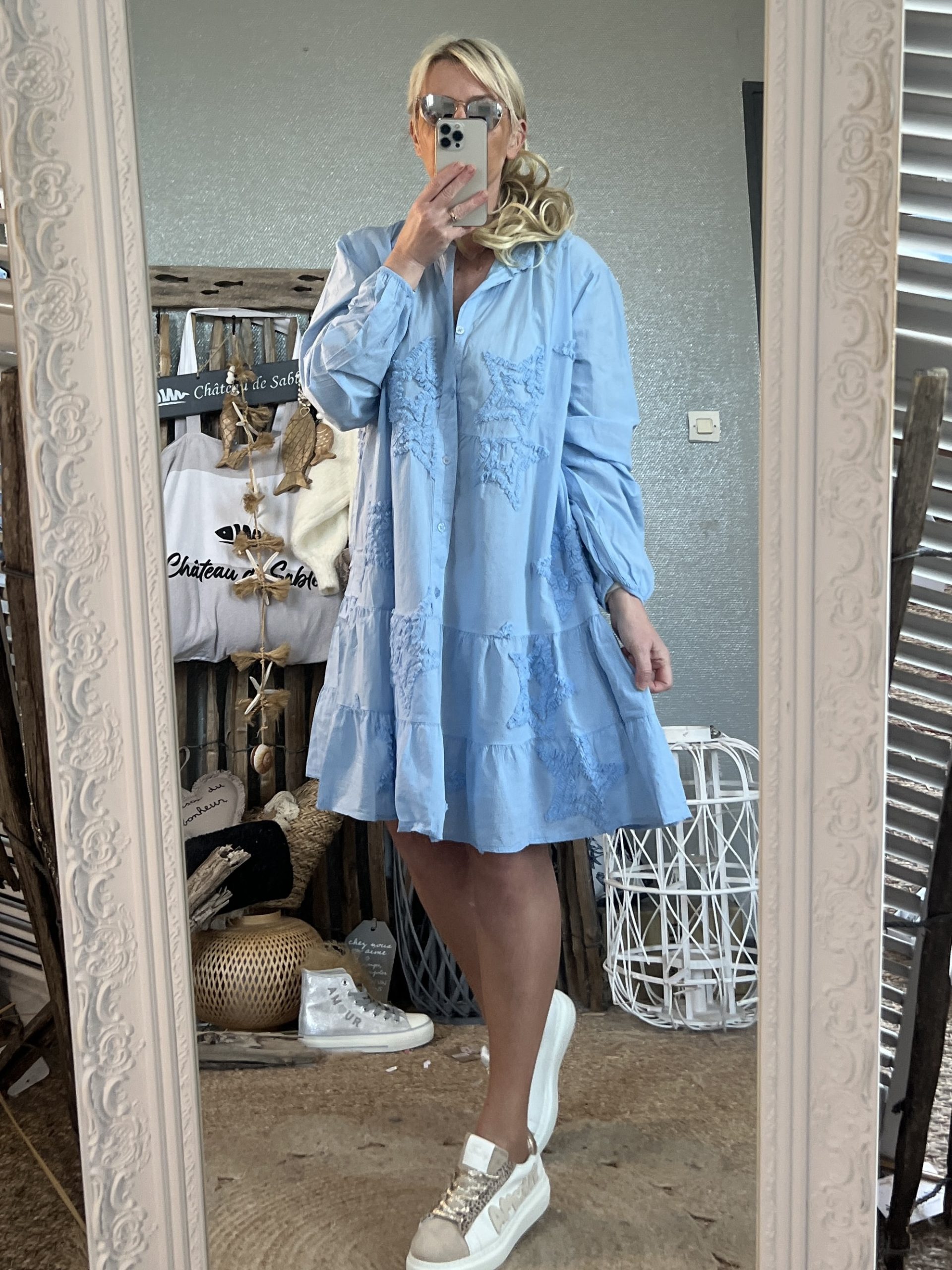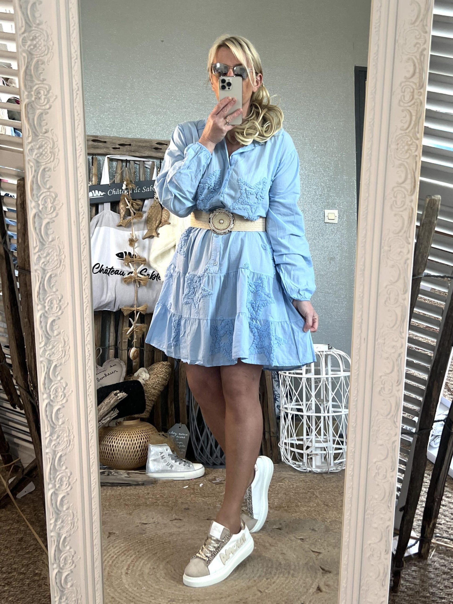 Très belle robe coton fin et fluide boutonnée taille unique 38/44 Longueur 90cms la ceinture est vendue séparément
