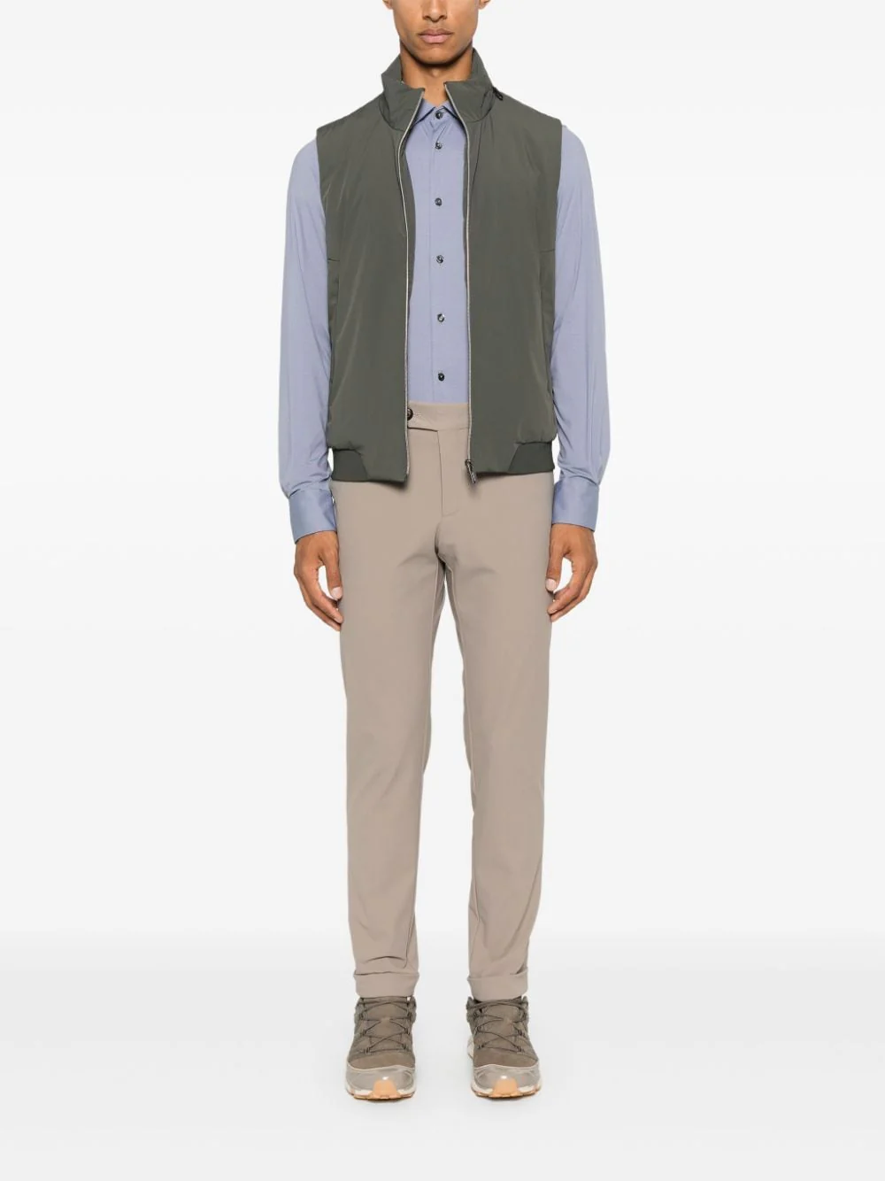 pantalon chino Winter Détails beige construction stretch fermeture à braguette dissimulée et bouton passants de ceinture poches latérales fendues poches arrière passepoilées ourlet retroussé Composition Doublure : polyester 82%, élasthanne 18% Extérieur : polyamide 79%, élasthanne 21% Conseils d’entretien Lavage en machine La tenue Le mannequin mesure 1,86 m et porte une taille 48 Identifiants […]