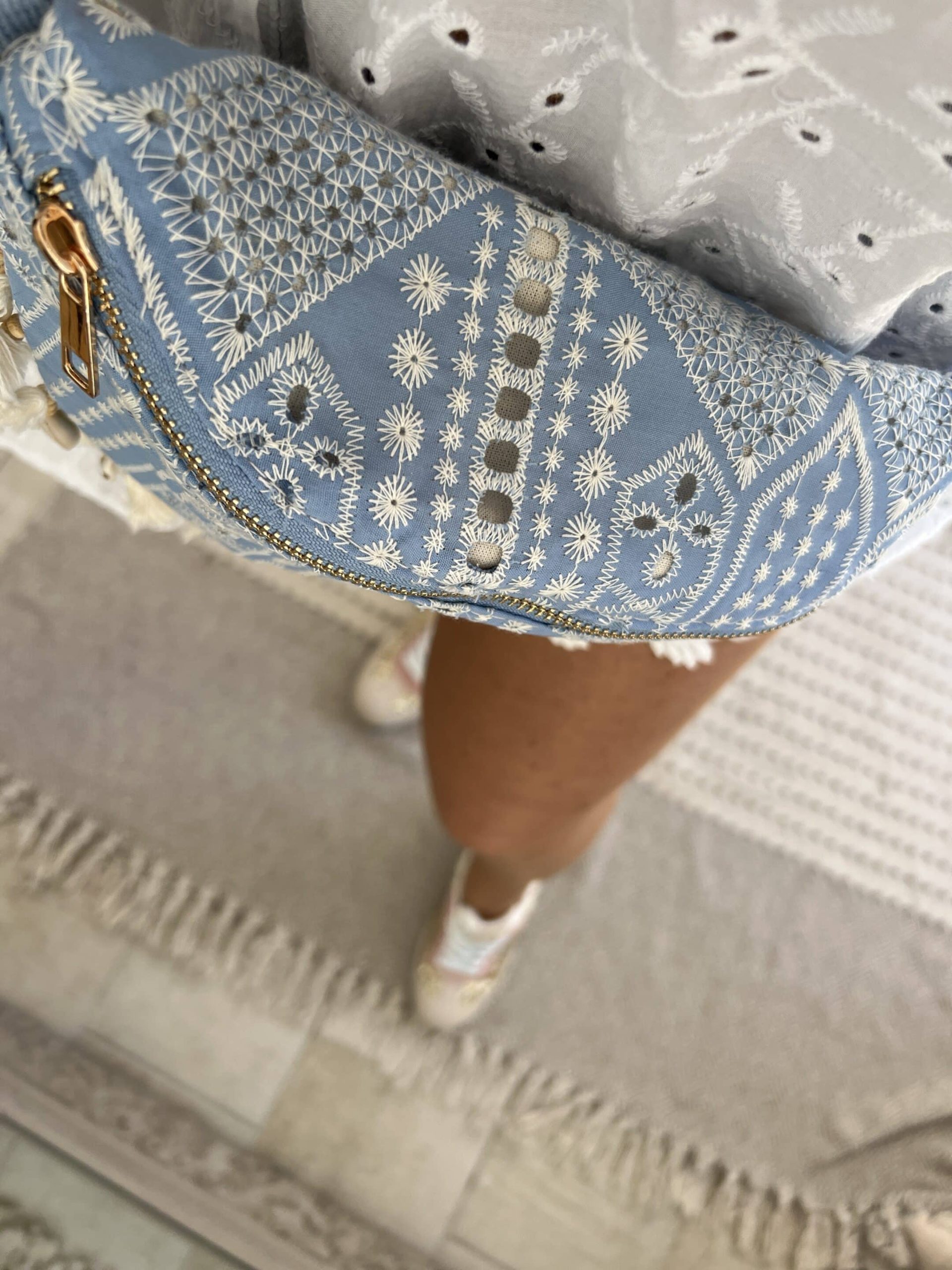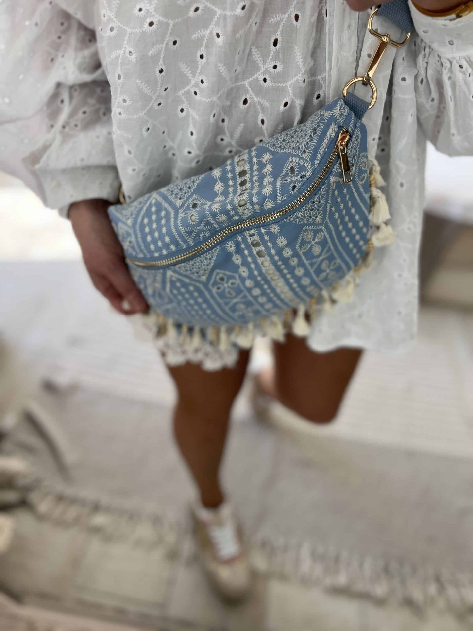 Sac banane broderie bleu