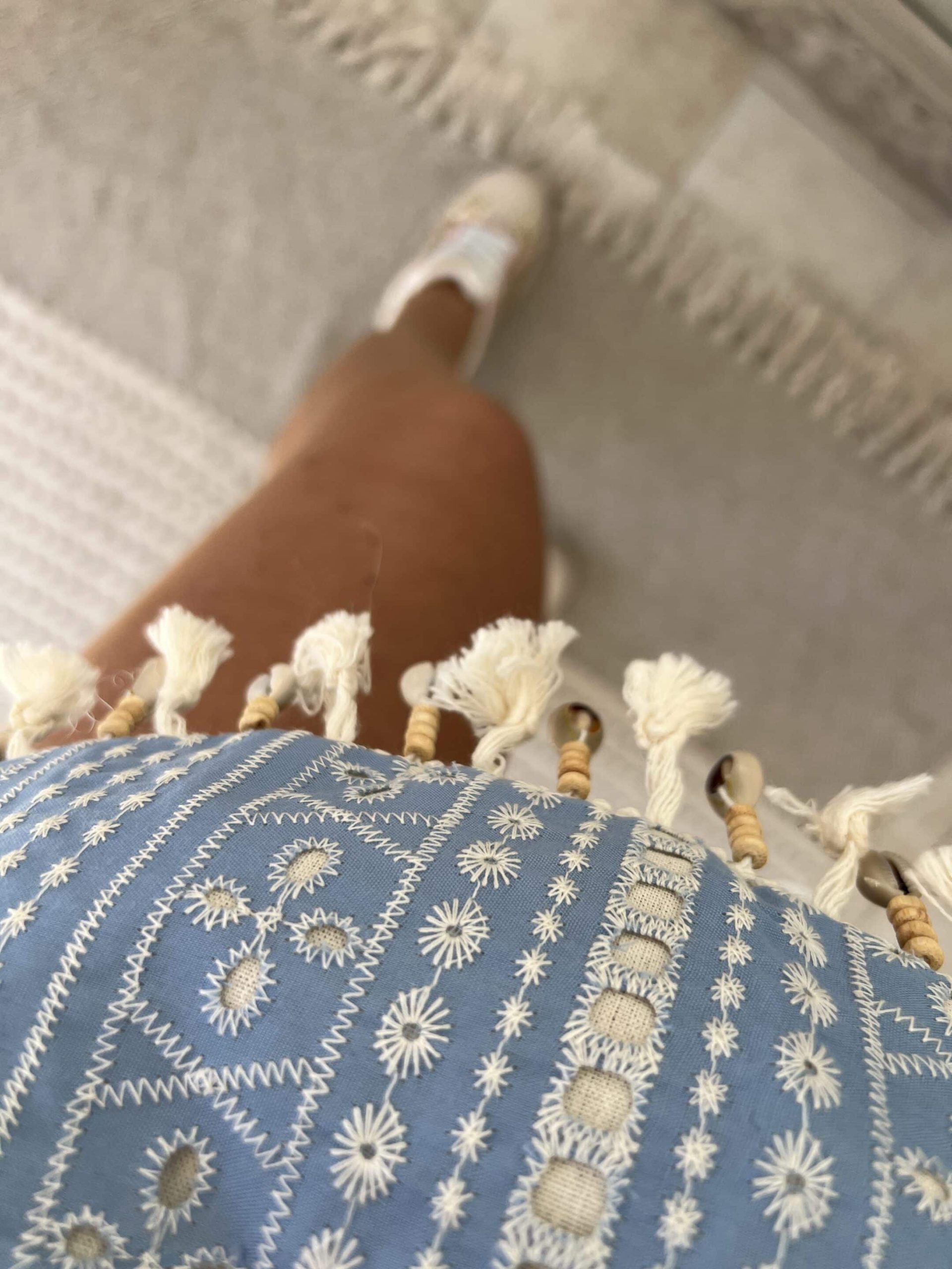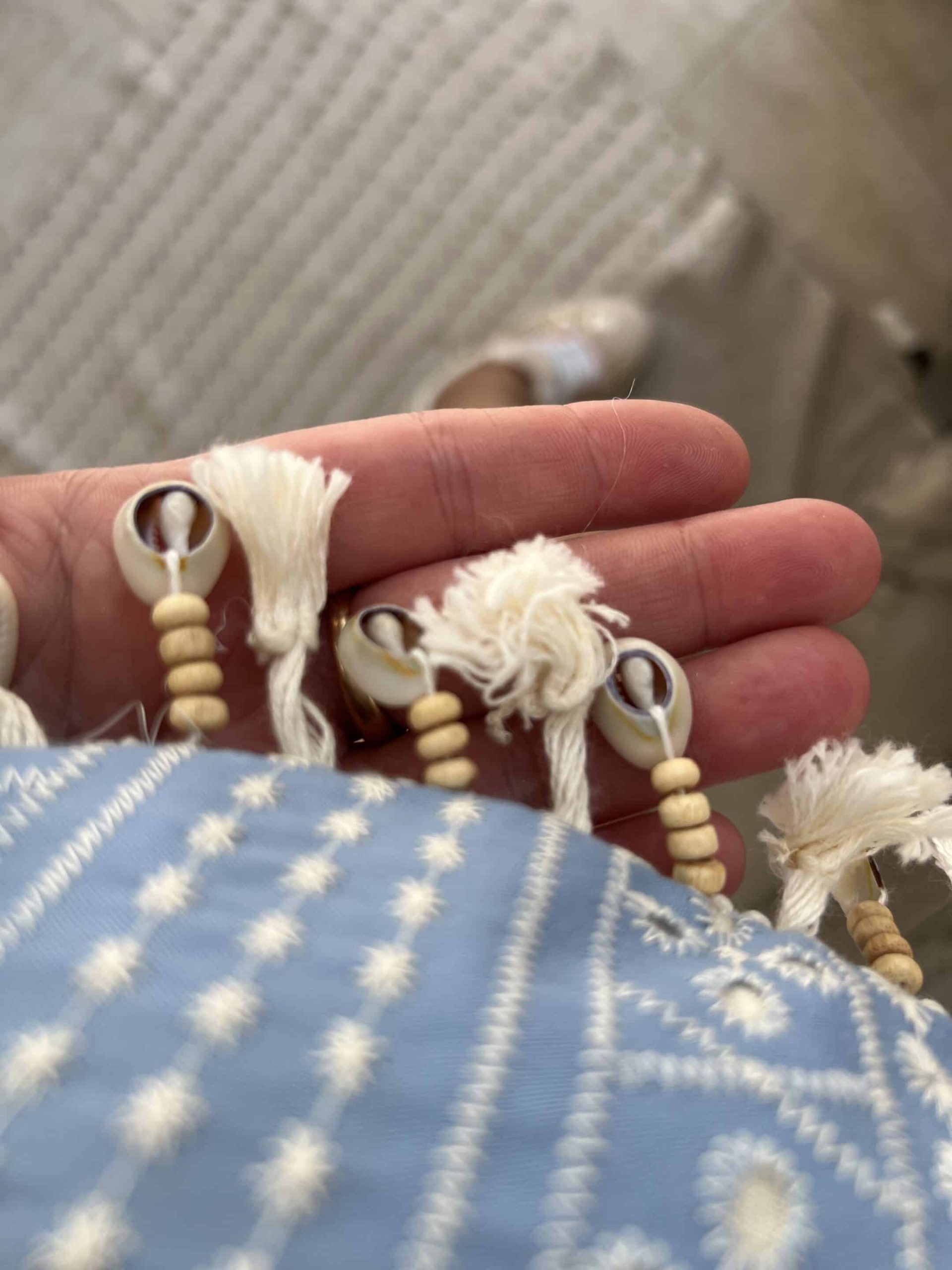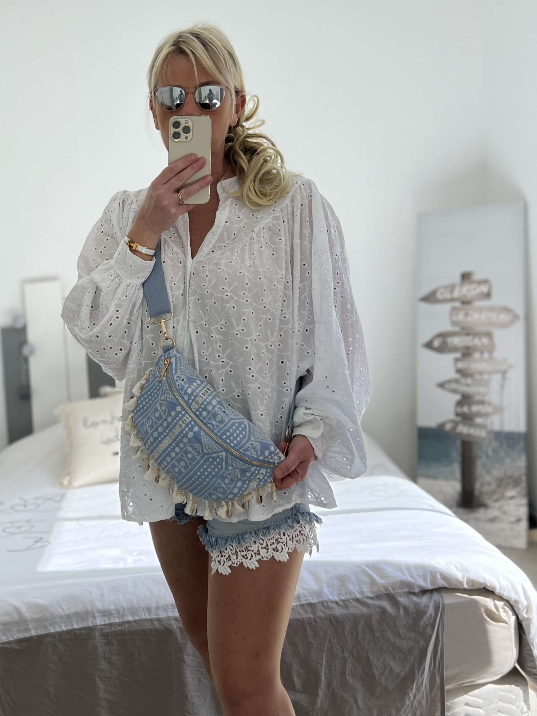 Léger et tendance, ce sac banane en coton est décoré de coquillages pour une touche estivale et bohème. Pratique et stylé, il complète parfaitement vos looks d’été ou de festival. Dimensions : 28*17 cm