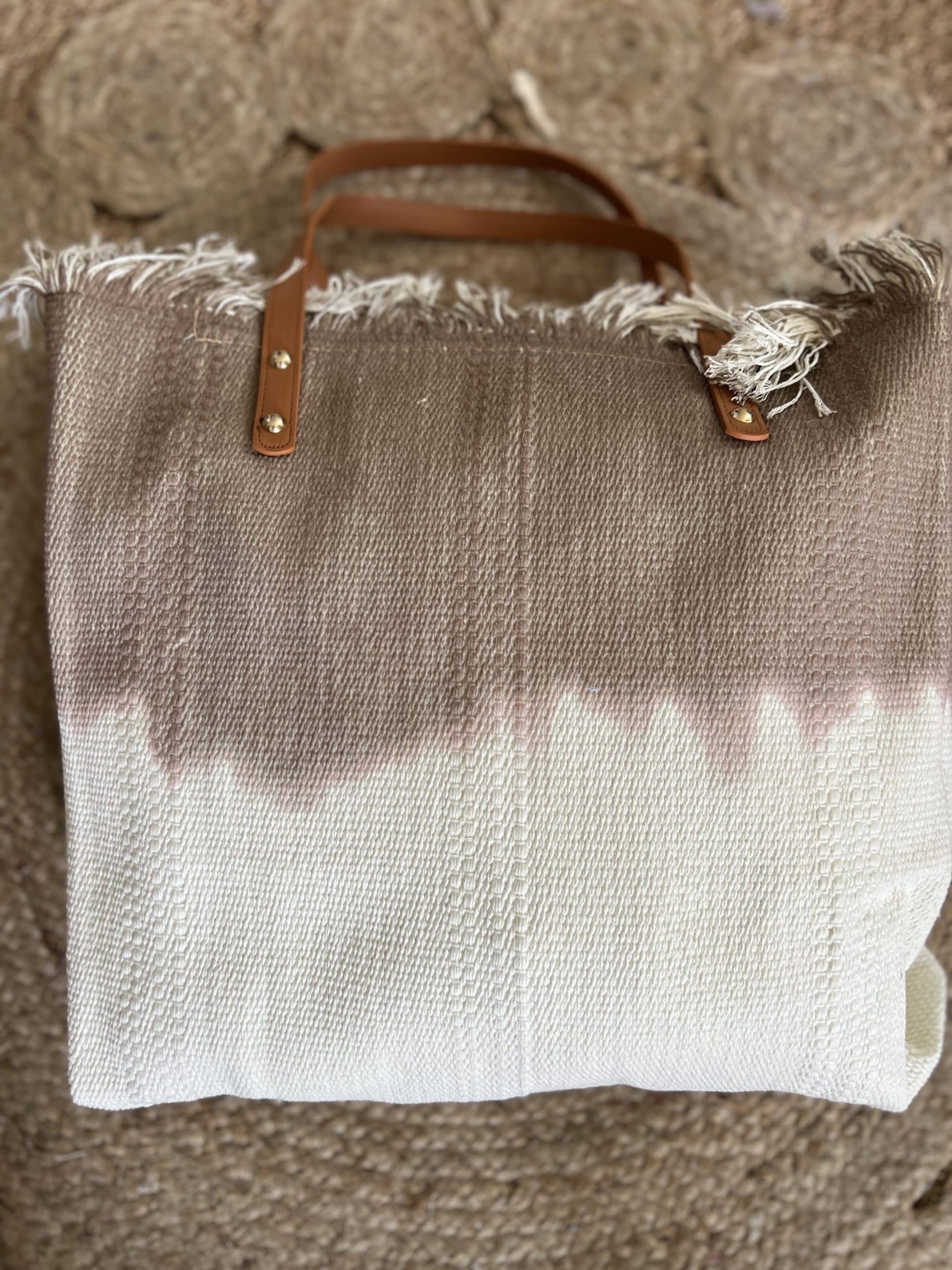Très joli sac toile épaisse frangee fermeture 50x35x10