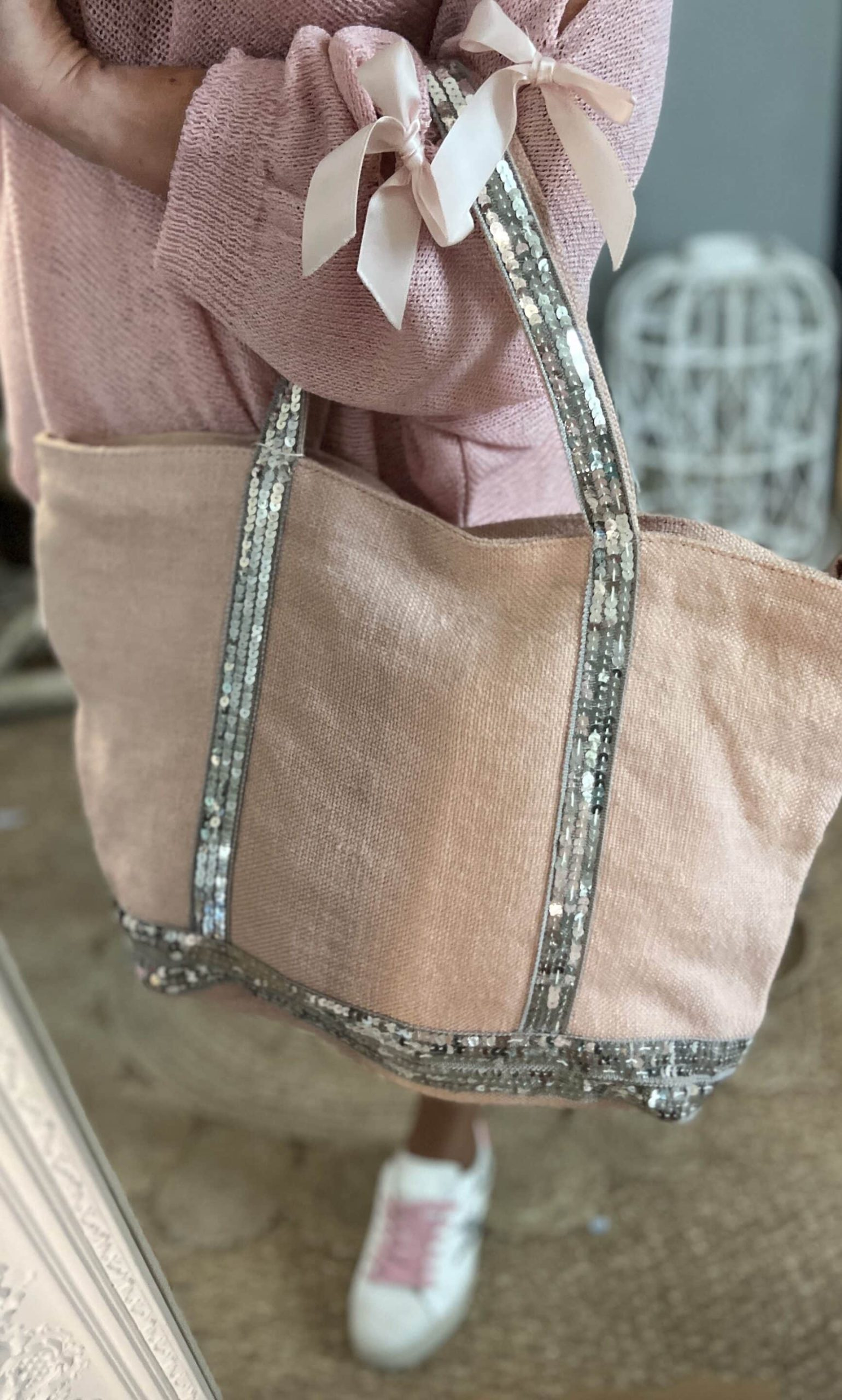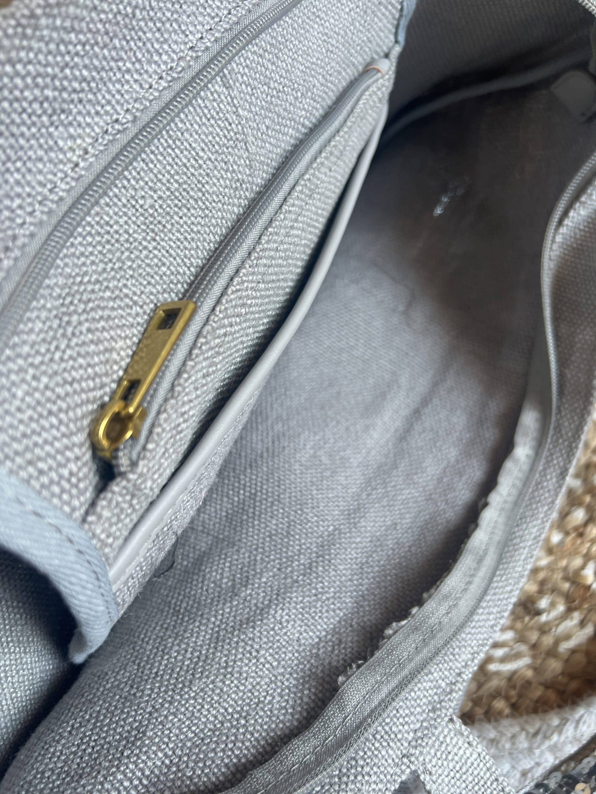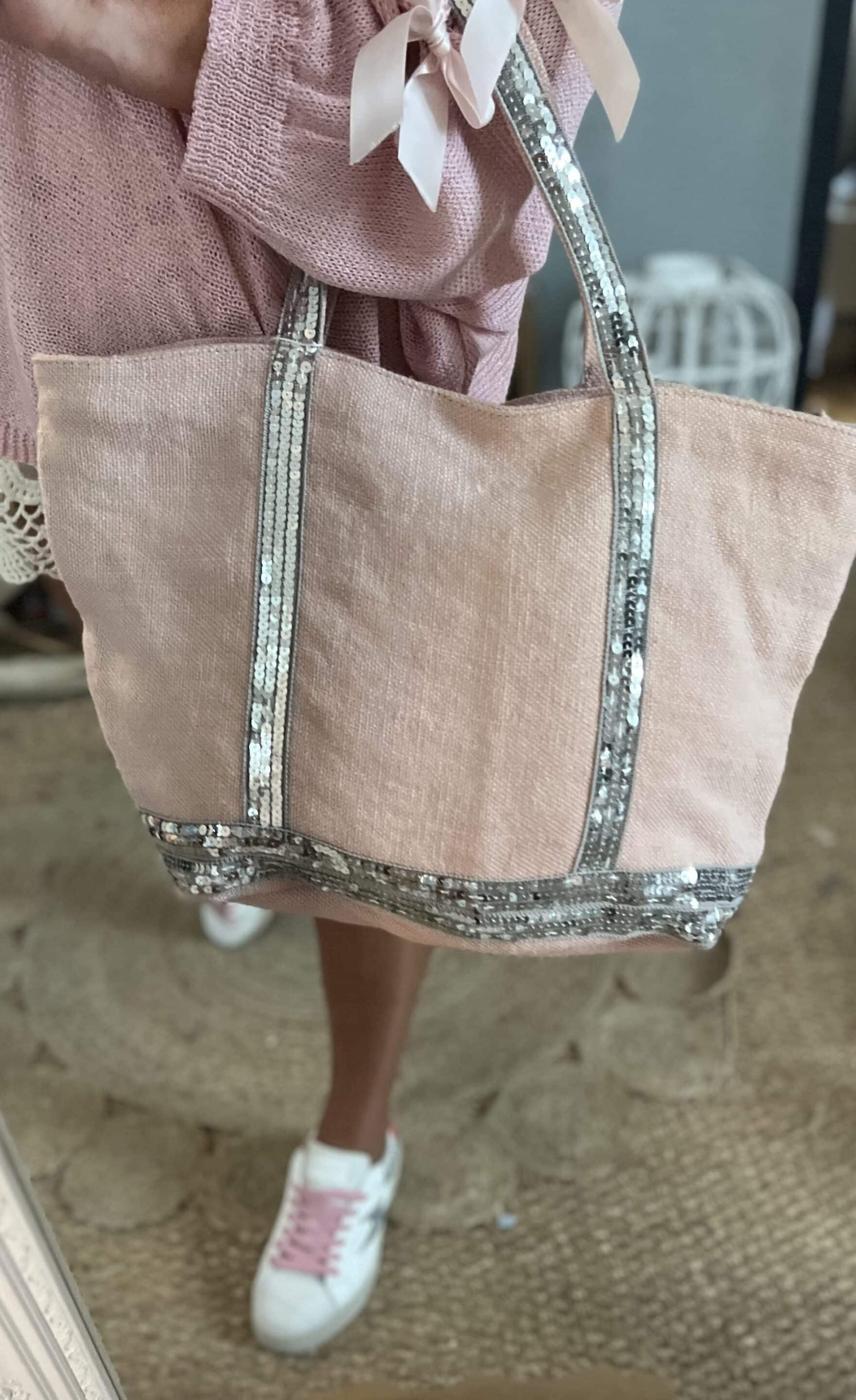Sac toile coton épaisse souple sequins 45×36 poches intérieures fermeture