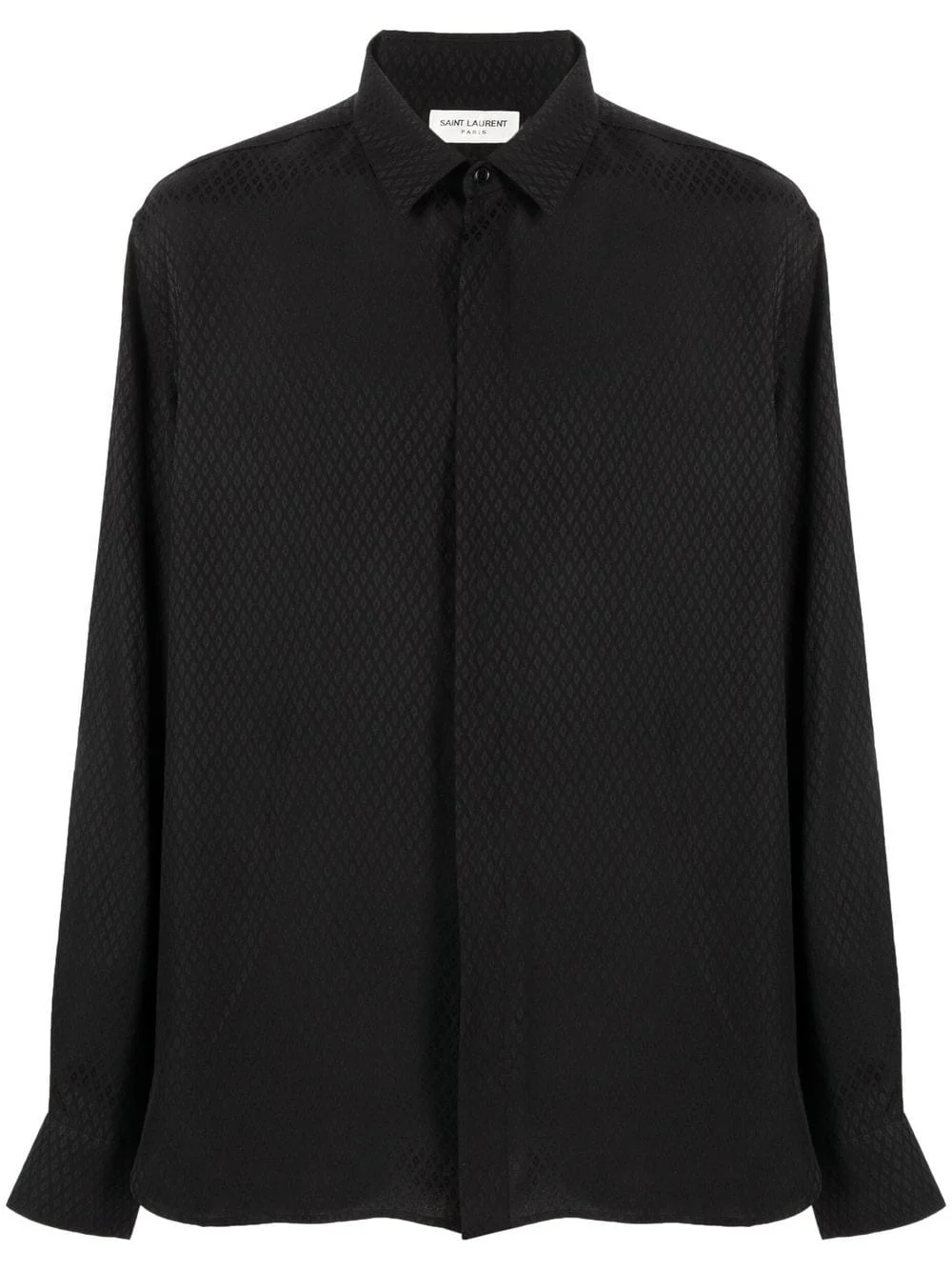 Noir, soie, jacquard, col classique, fermeture dissimulée sur le devant, poignets boutonnés. Fabrication : Italie Extérieur : Soie 100% Nettoyage à sec uniquement Le mannequin mesure 1,87 m et porte une taille 40 La maison Saint Laurent a été fondée en 1961 par Yves Saint Laurent et Pierre Bergé.La grande marque française de haute couture […]
