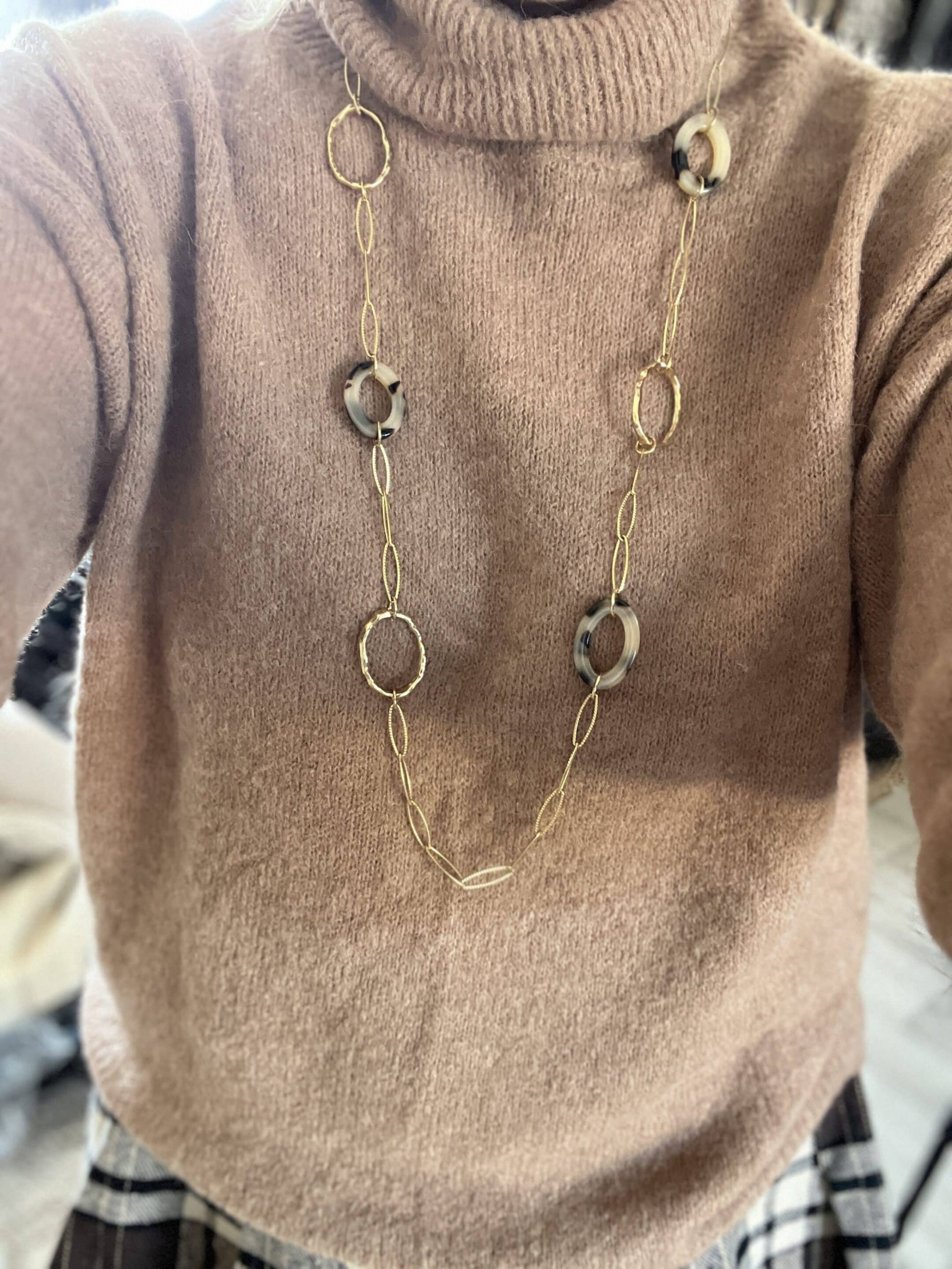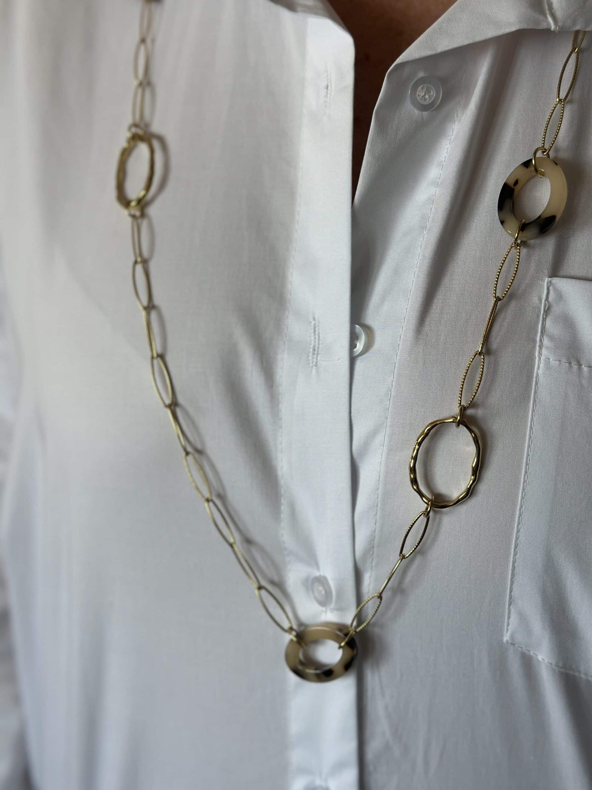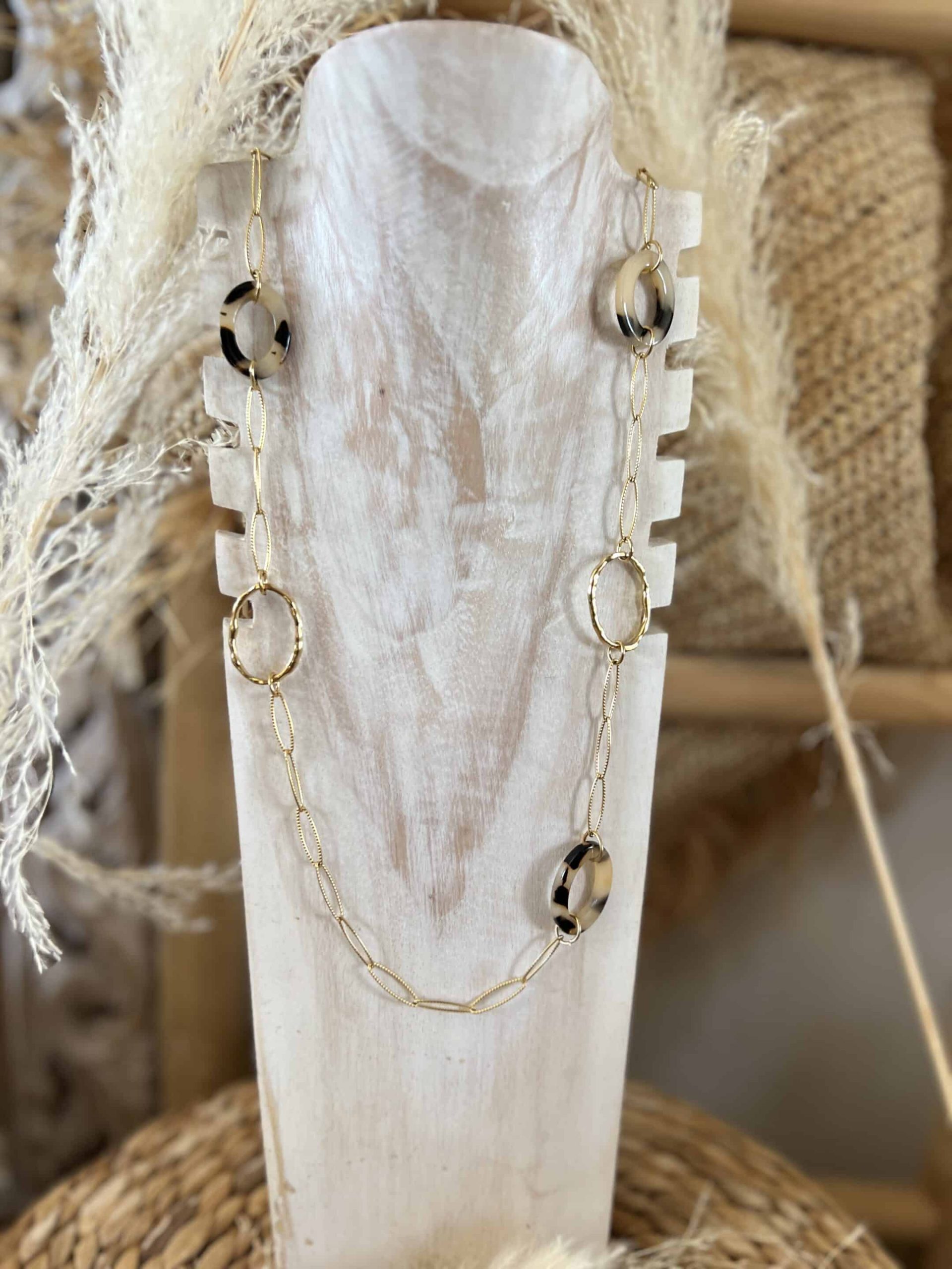 Sautoir acier doré léopard