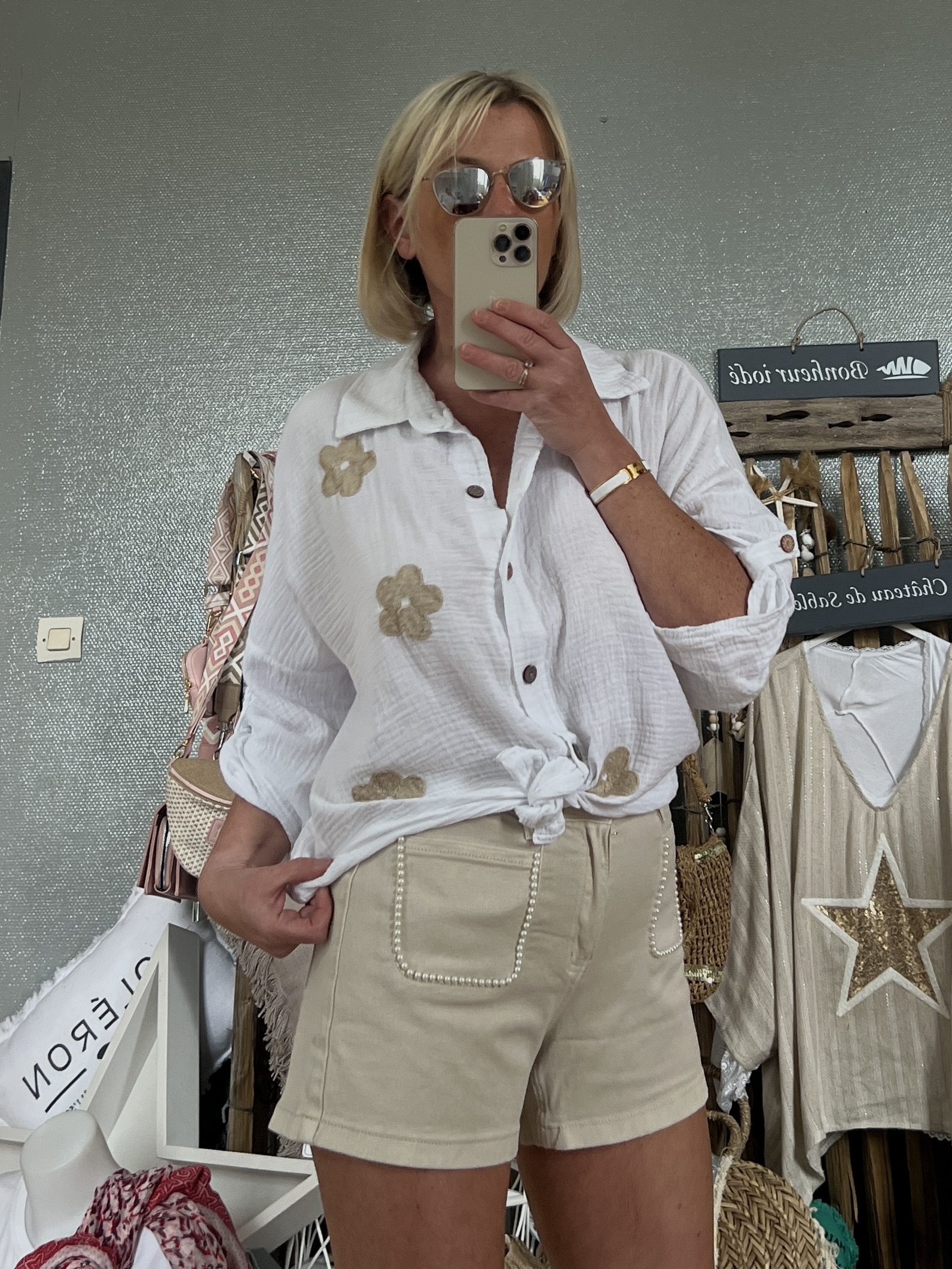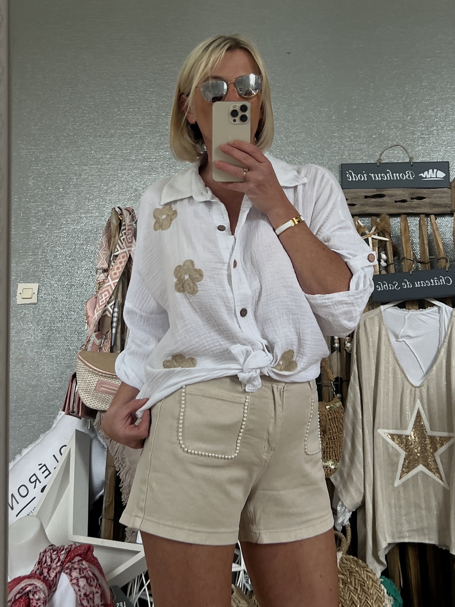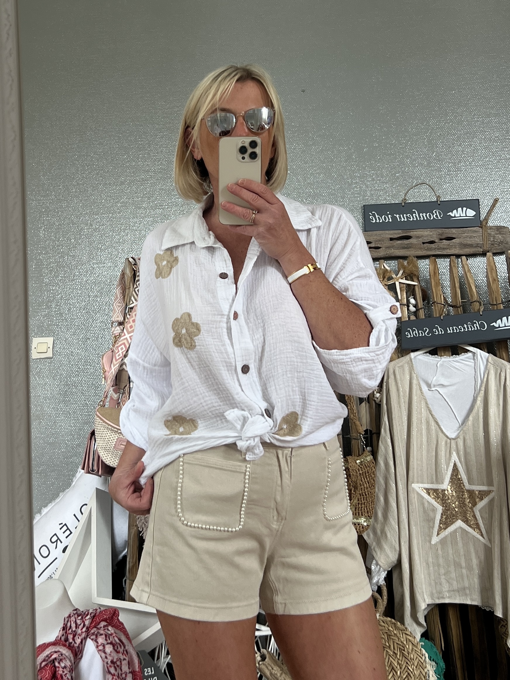 Short coton 97% coton 3% elasthane boutons deux poches fermeture côté