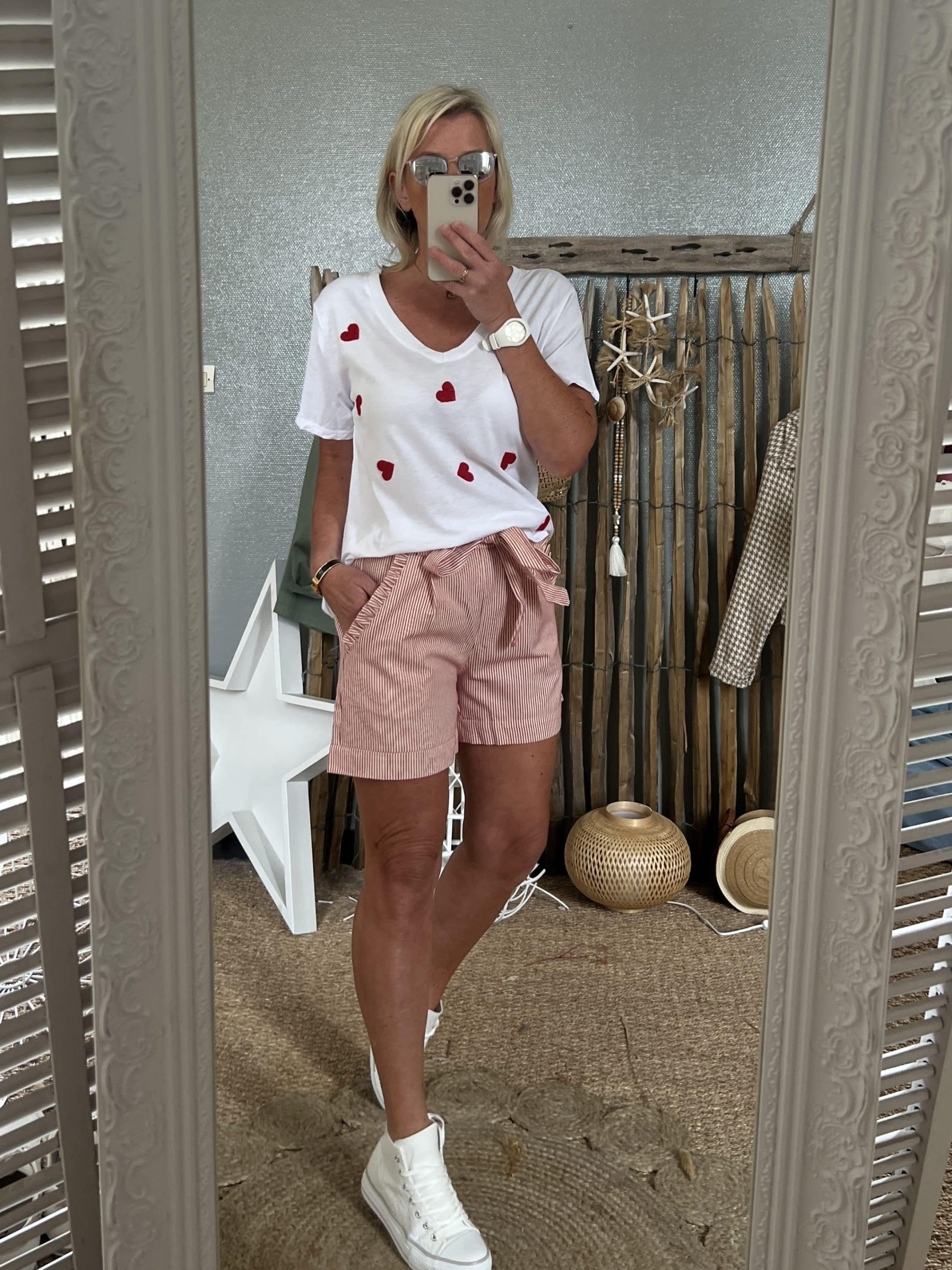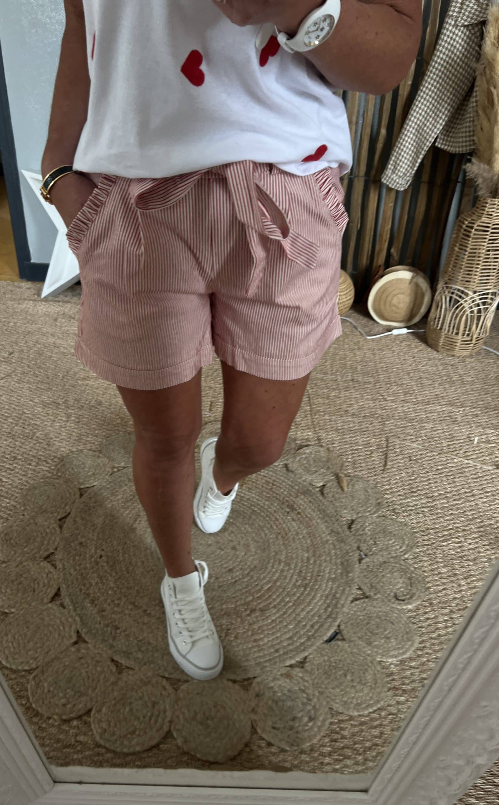 Short coton fines rayures rouges je porte TS mesure 1,60m 50kgs TS 34 TM 36 TL 40 TXL 42