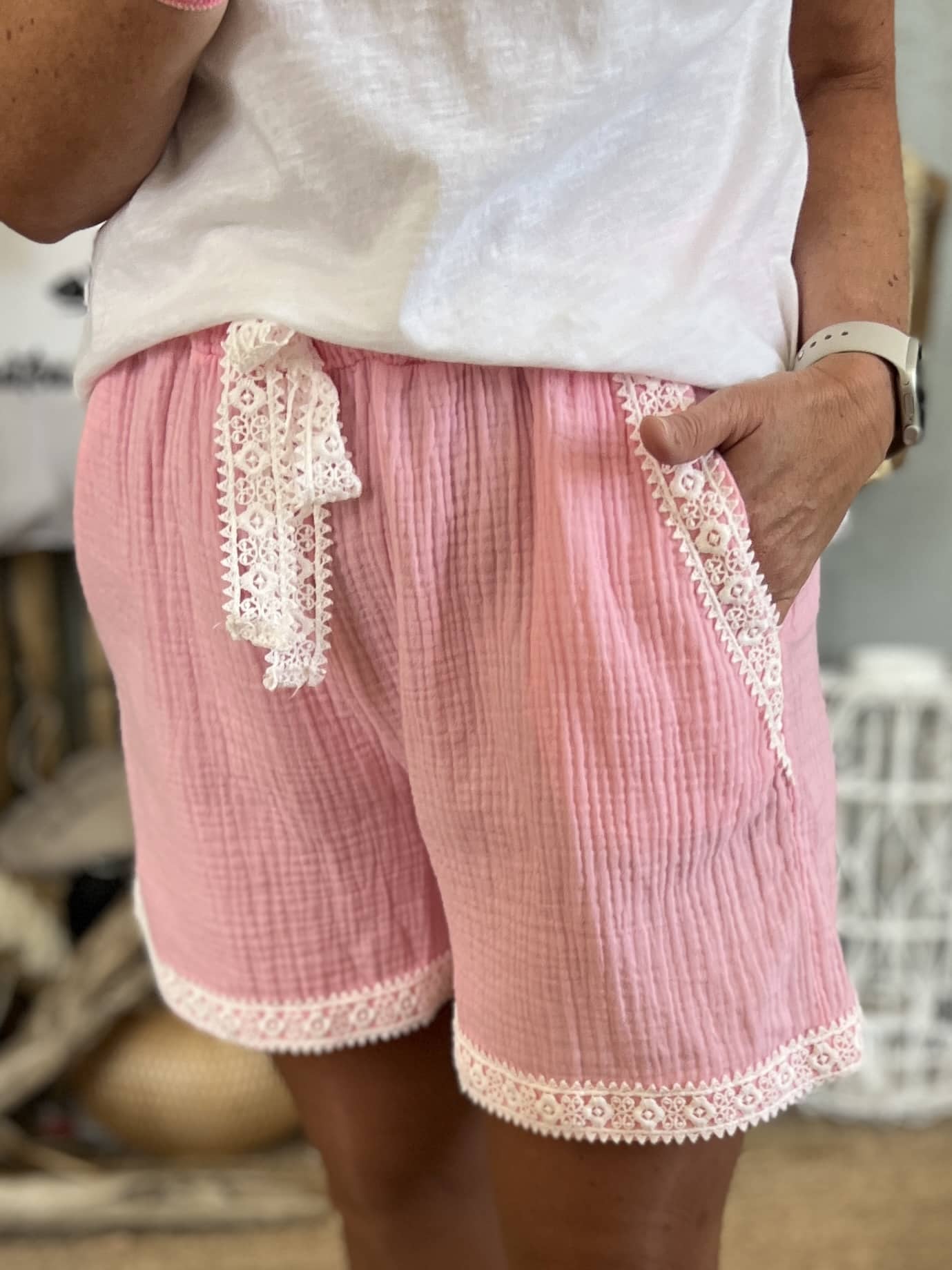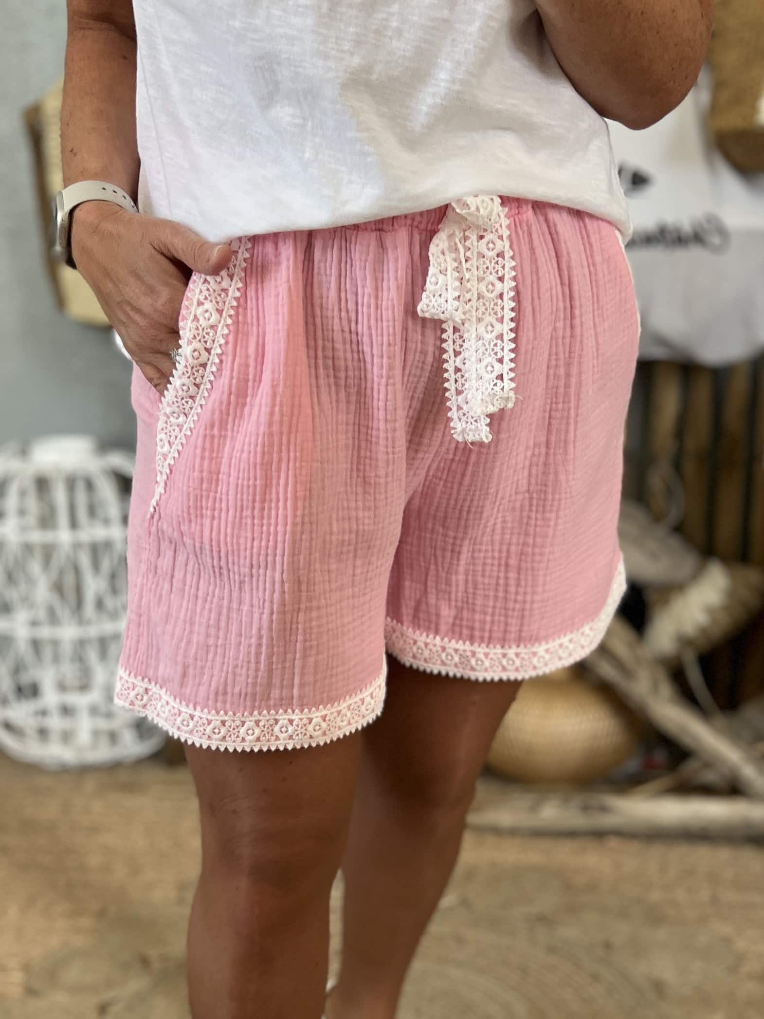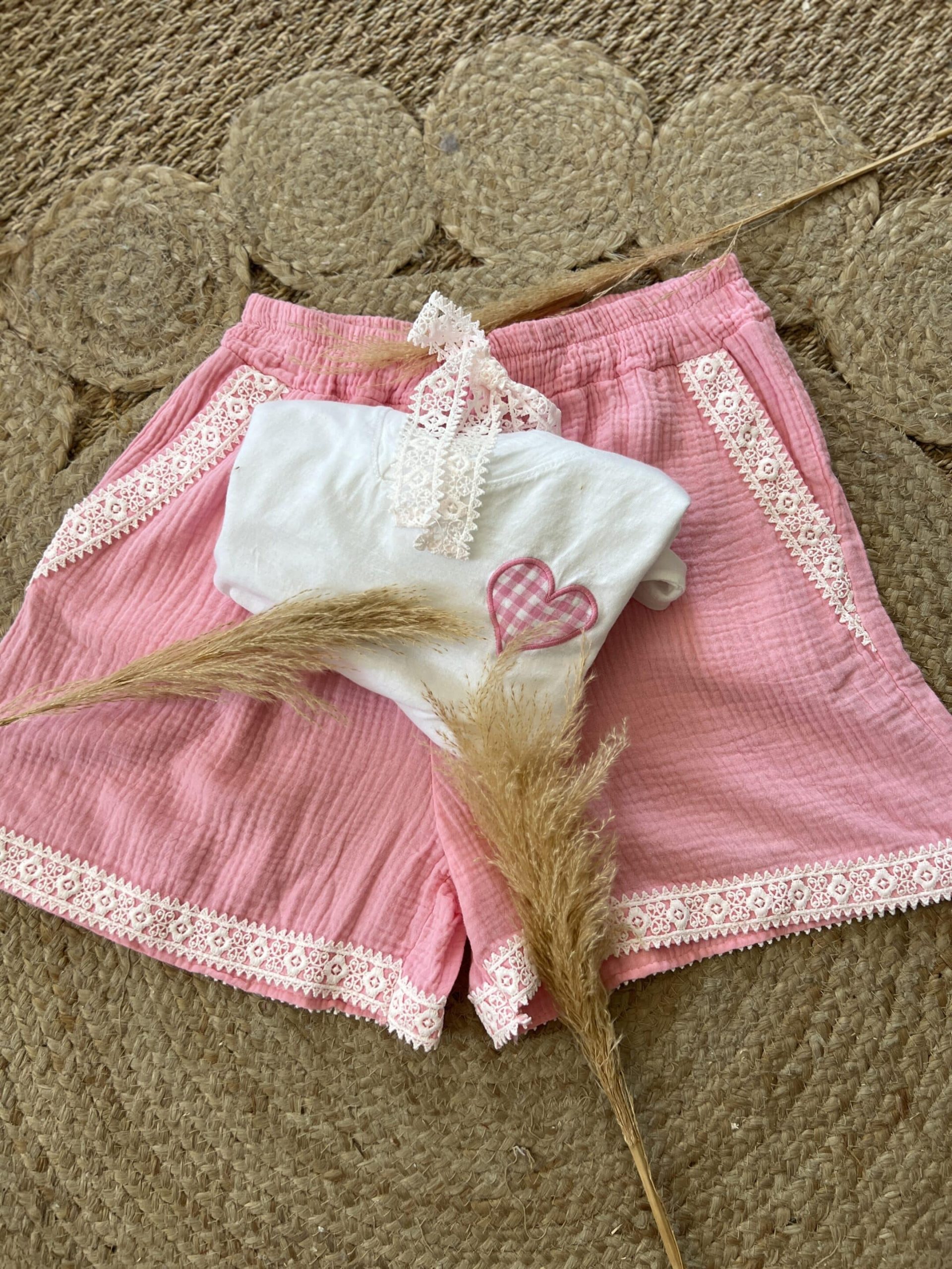Short gaze de coton rose baby