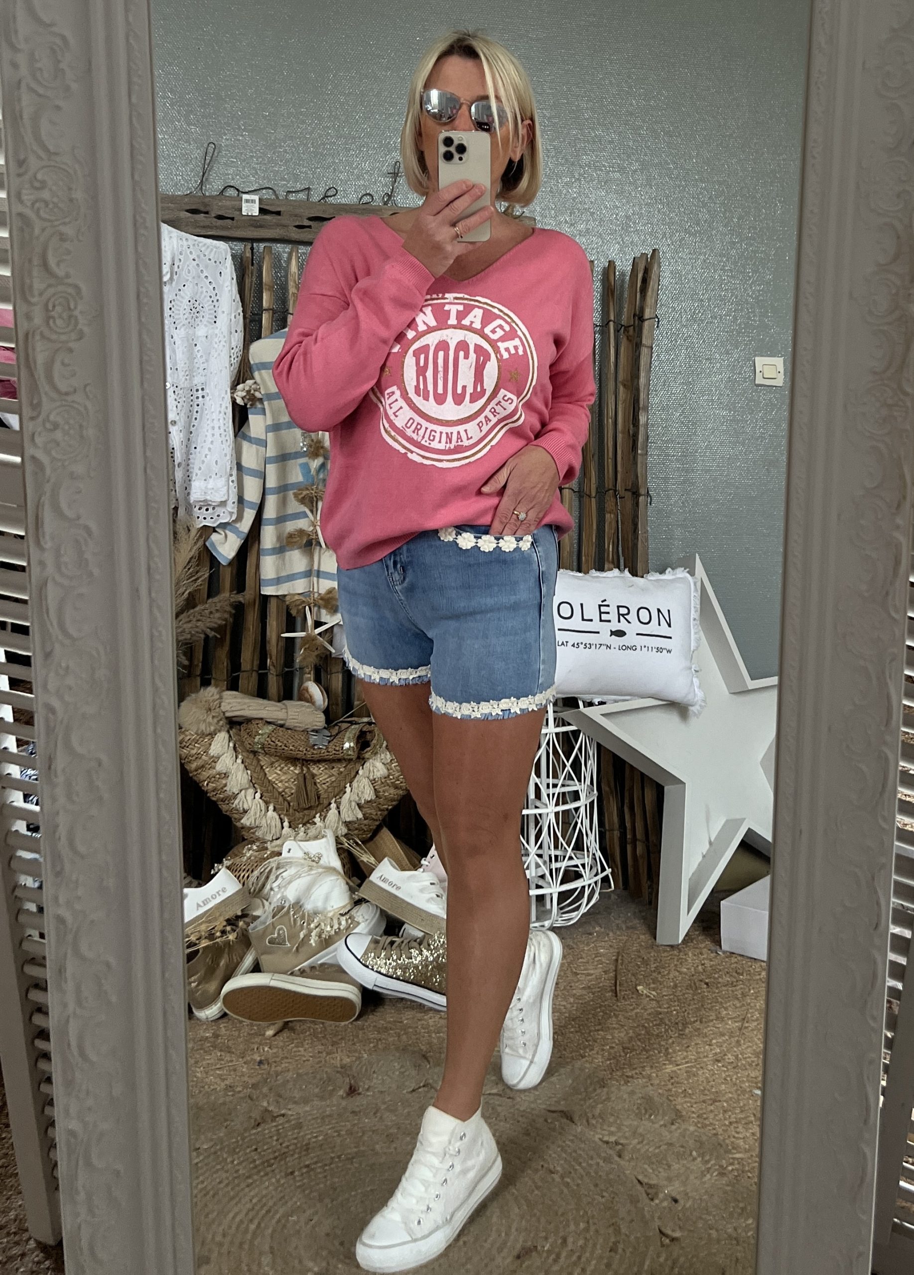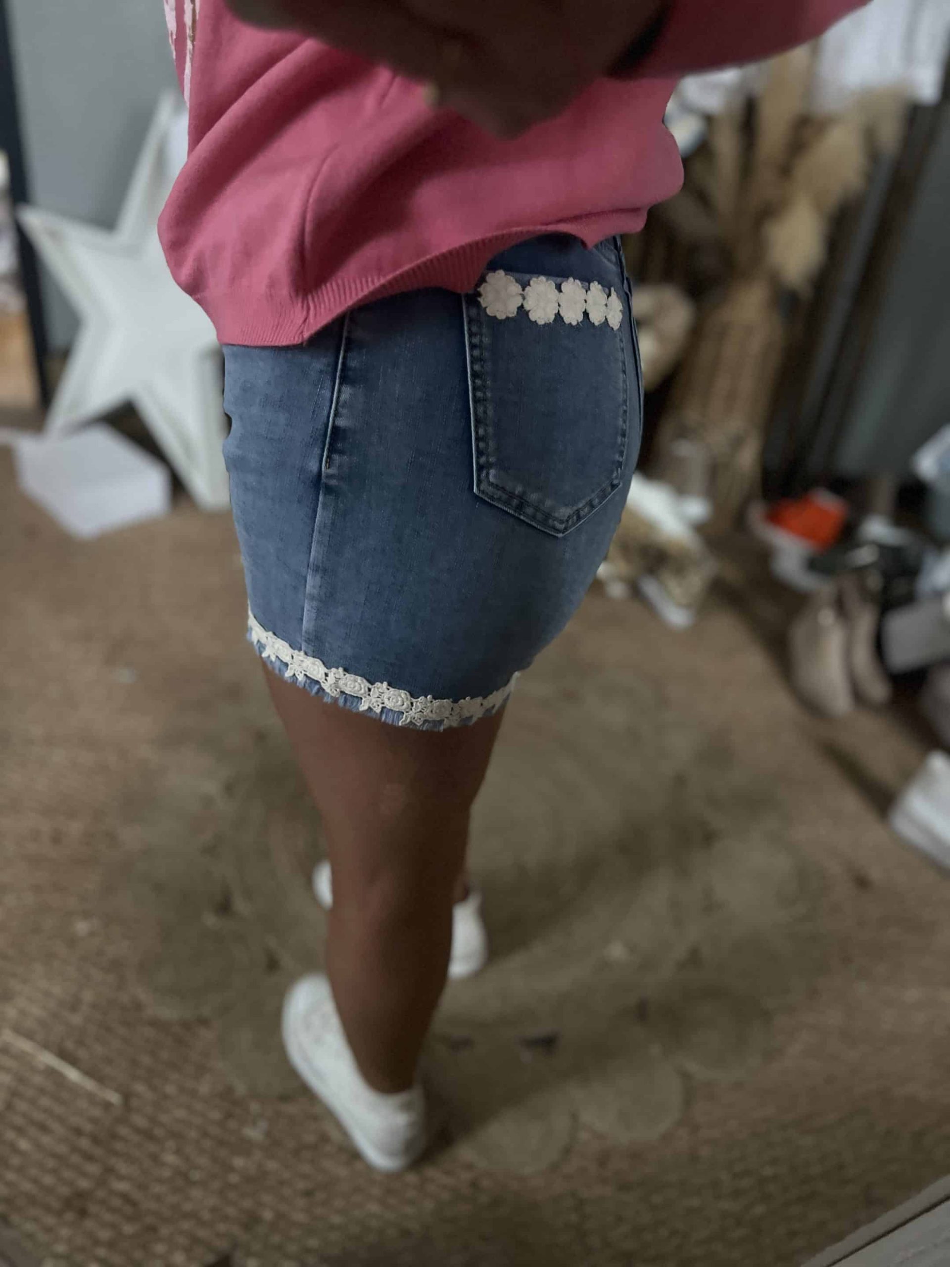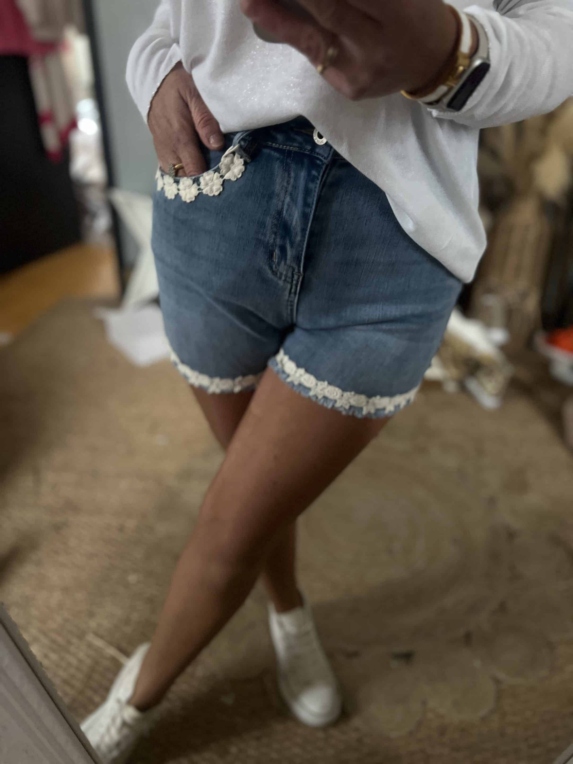 Short jean 97% coton 3% elasthane vendu avec la ceinture tissu