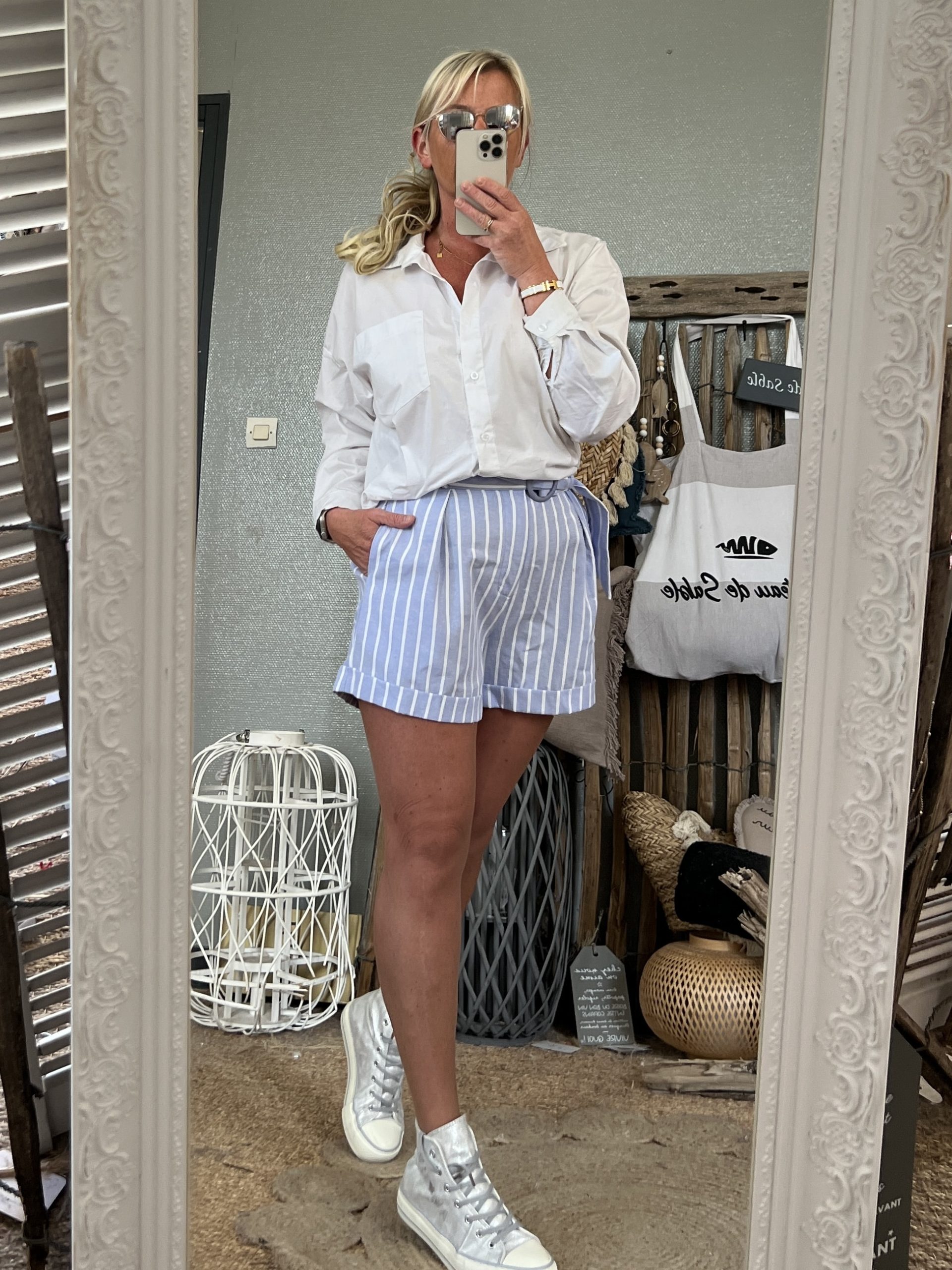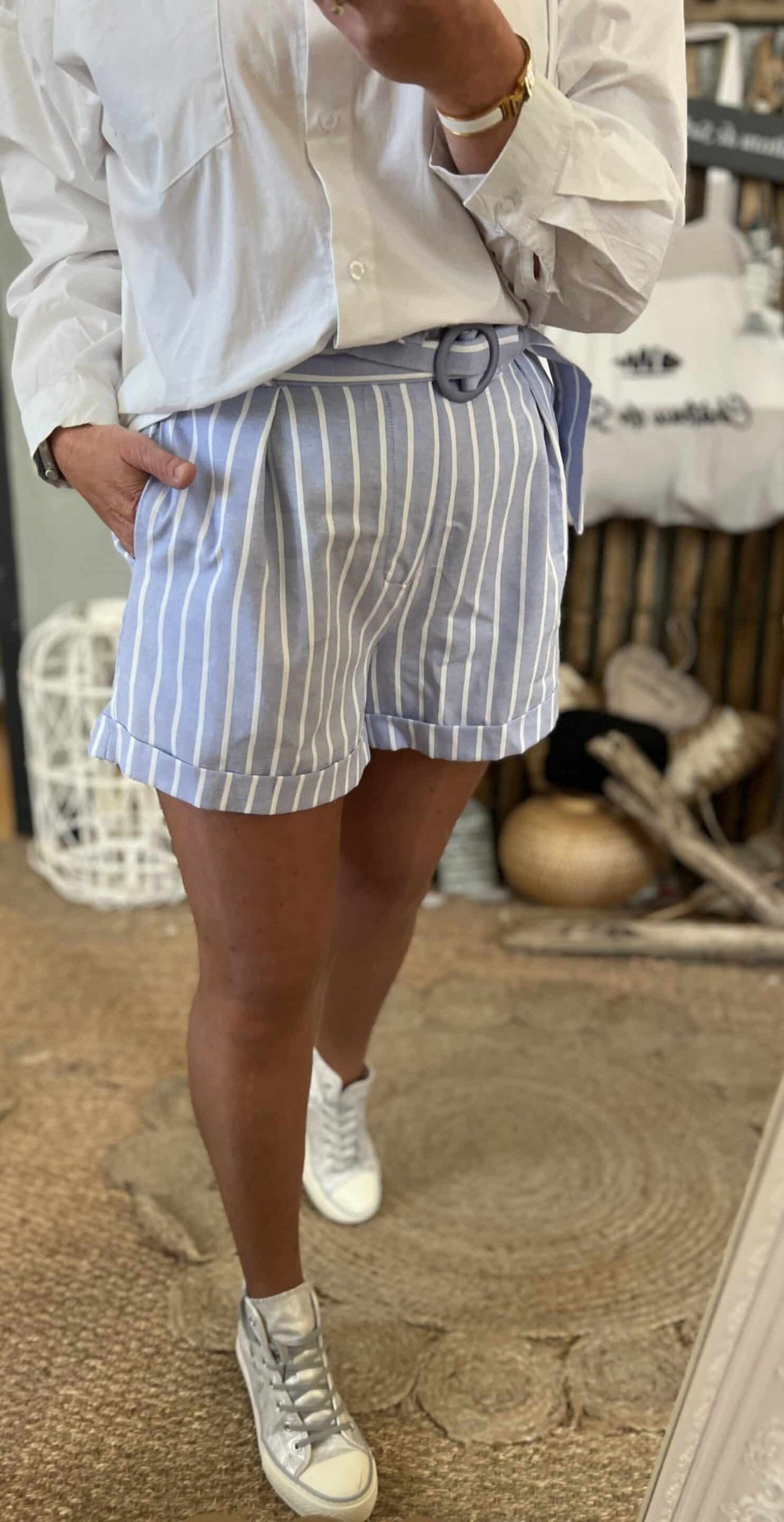 Short rayé avec ceinture coton fluide très belle qualité